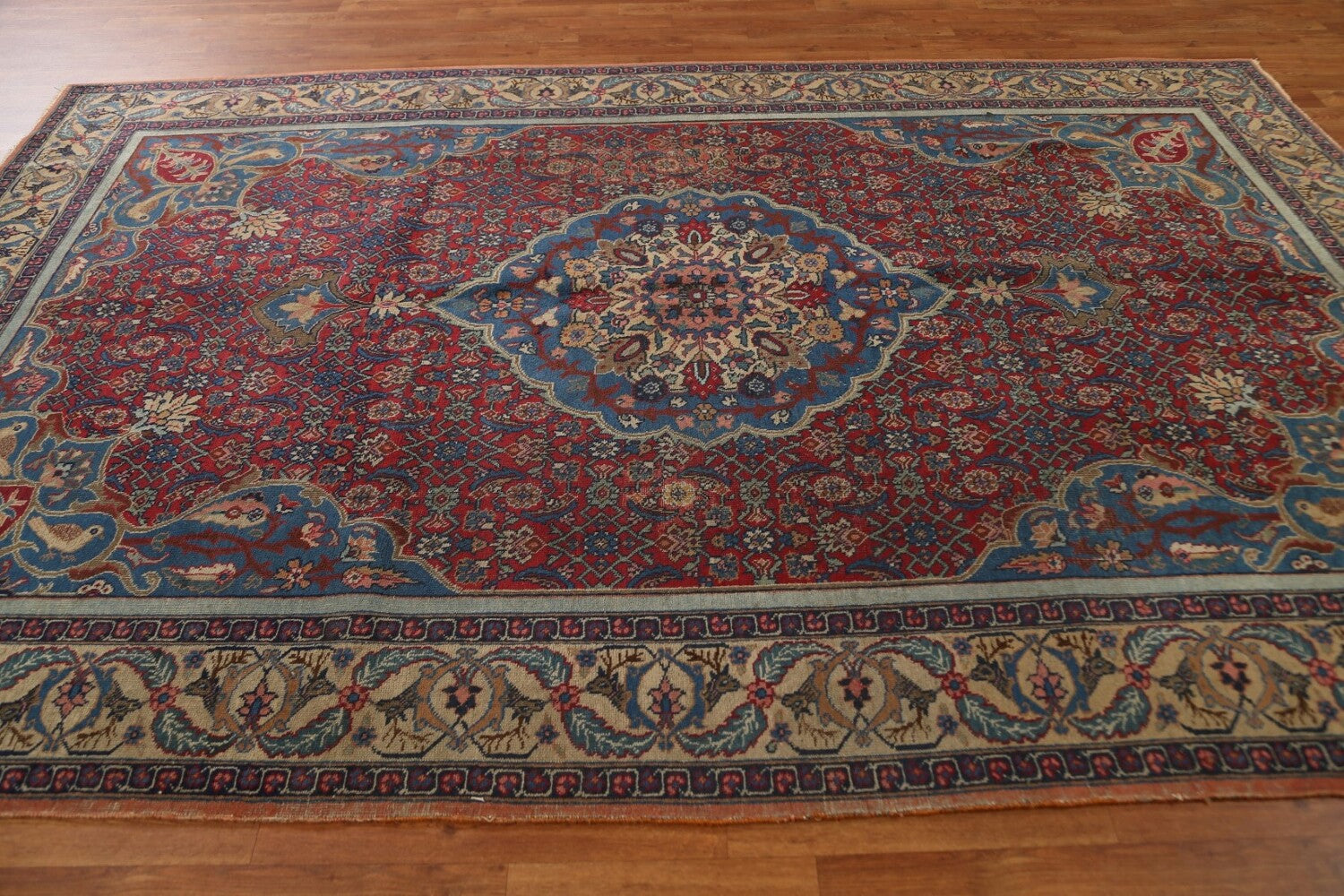 A Beautiful Genuine Persia ( Persia ) Khoy rug is Hand Knotted by skillful weavers in Persia ( Persia ) with 100% Wool Material. This rug is in Very Good ( Low Pile ) condition. dimensions are 10' 0'' X 6' 6'' in foot and 305 X 198 in centimeter. the primary color is Red.