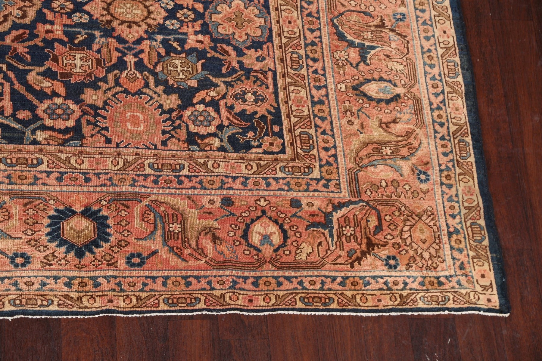 A Beautiful Genuine Persia ( Persia ) Malayer rug is Hand Knotted by skillful weavers in Persia ( Persia ) with 100% Wool Material. This rug is in Very Good (Evenly Low Pile) condition. dimensions are 16' 9'' X 10' 4'' in foot and 511 X 315 in centimeter. the primary color is Navy Blue & Blues.