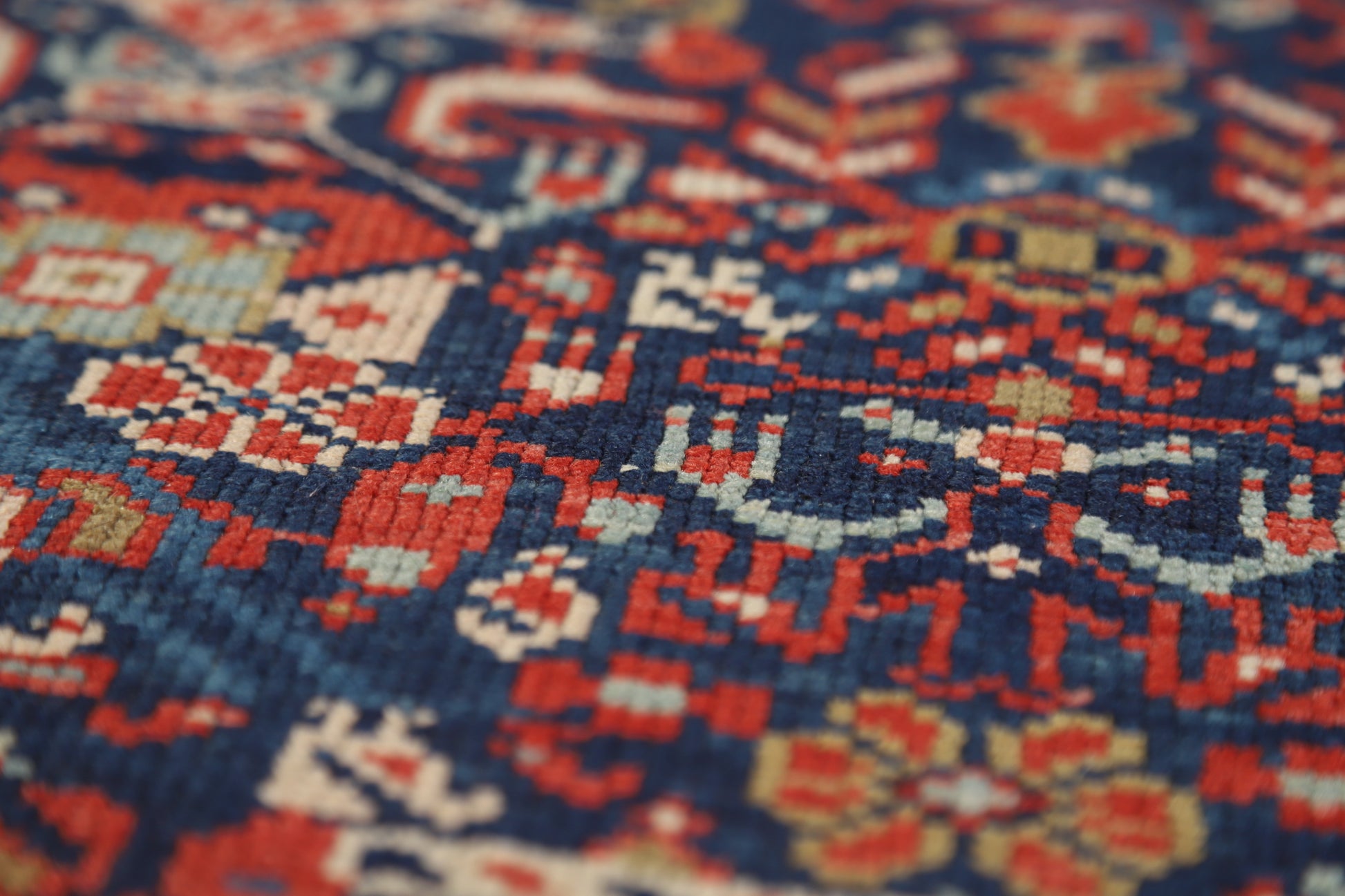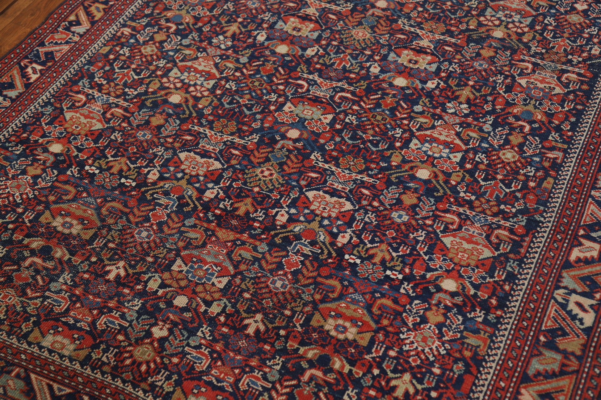 A Beautiful Genuine Persia ( Persia ) Malayer rug is Hand Knotted by skillful weavers in Persia ( Persia ) with 100% Wool Material. This rug is in Very Good (Evenly Low Pile) condition. dimensions are 6' 0'' X 4' 5'' in foot and 183 X 135 in centimeter. the primary color is Navy Blue & Blues.