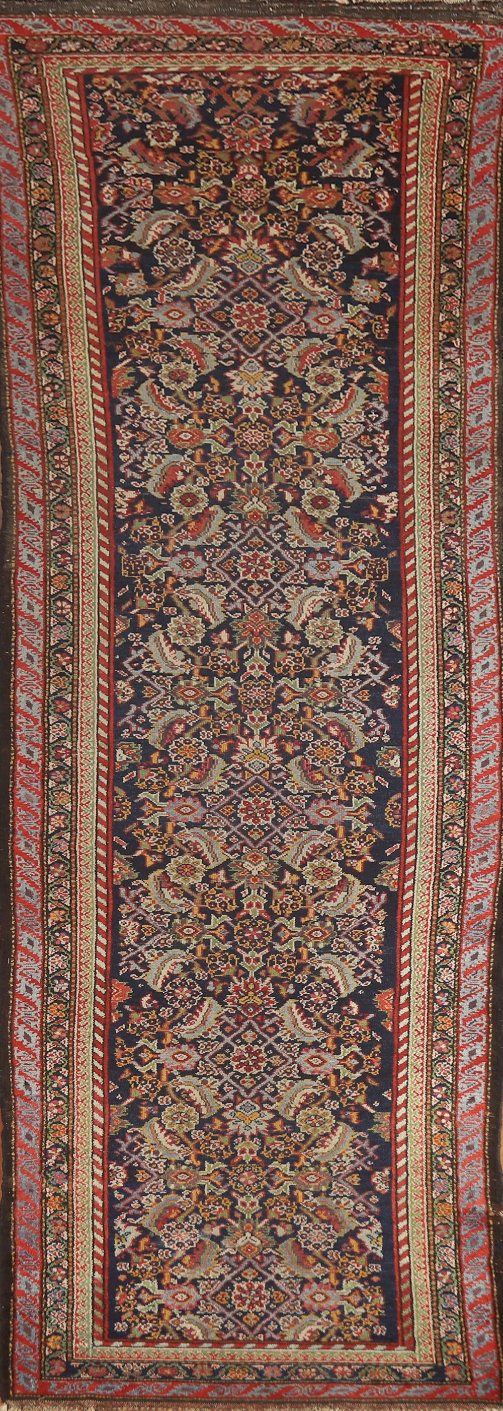 Pre-1900 Antique Vegetable Dye Malayer Persian Runner Rug 3x13