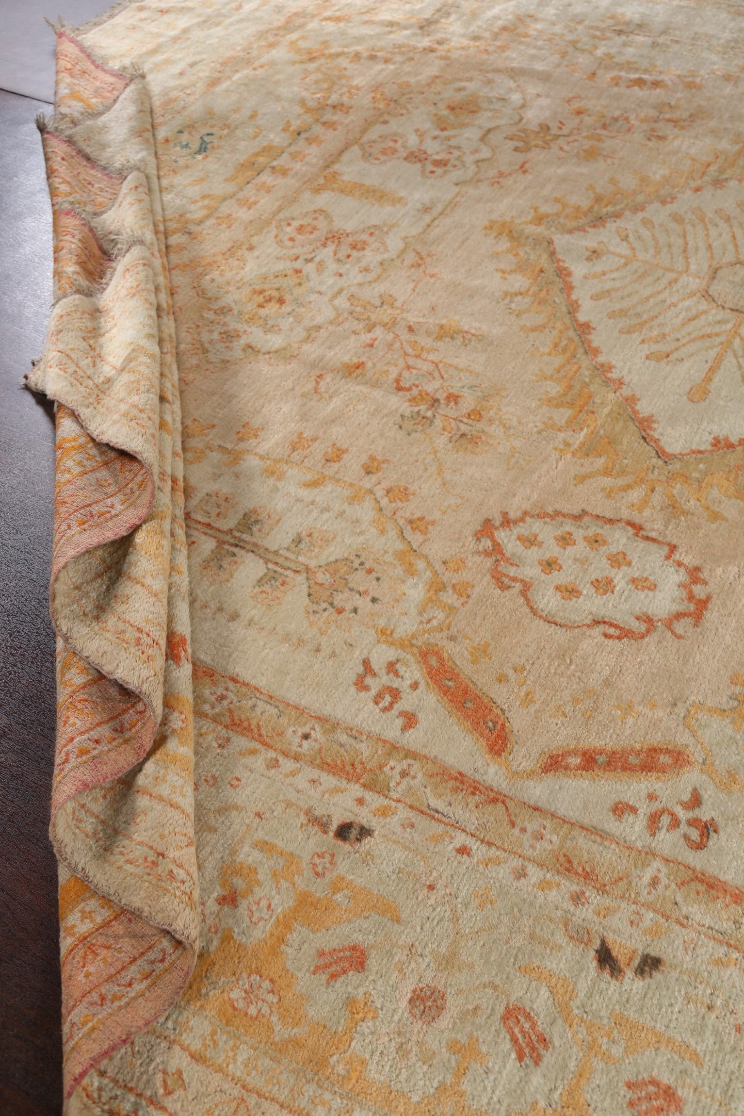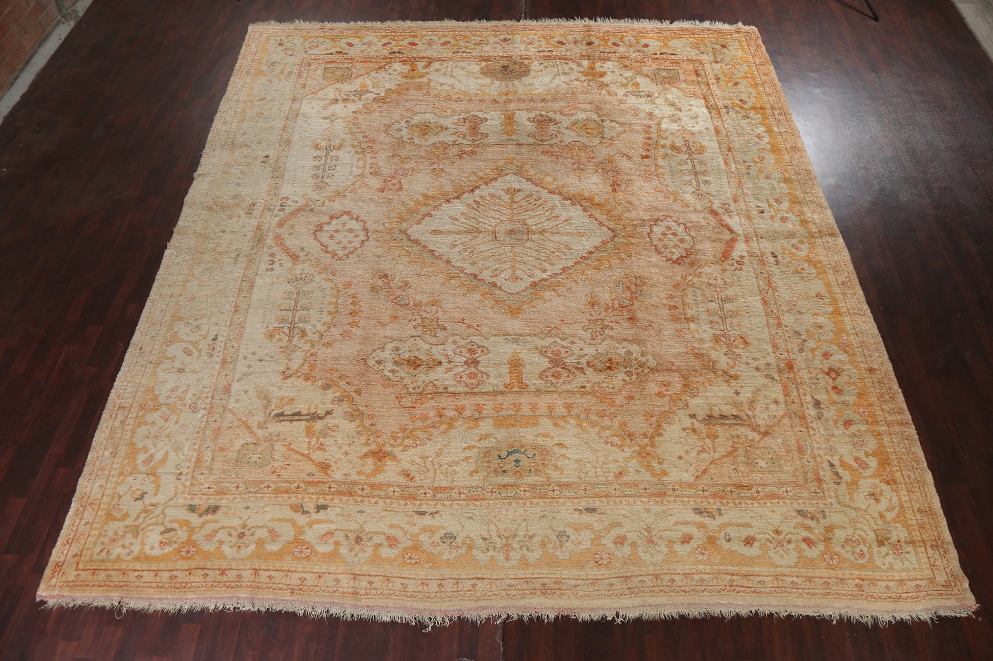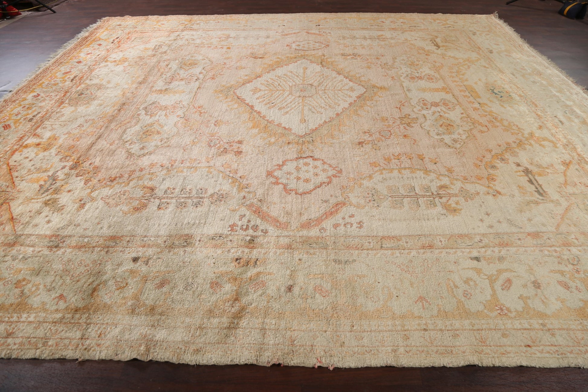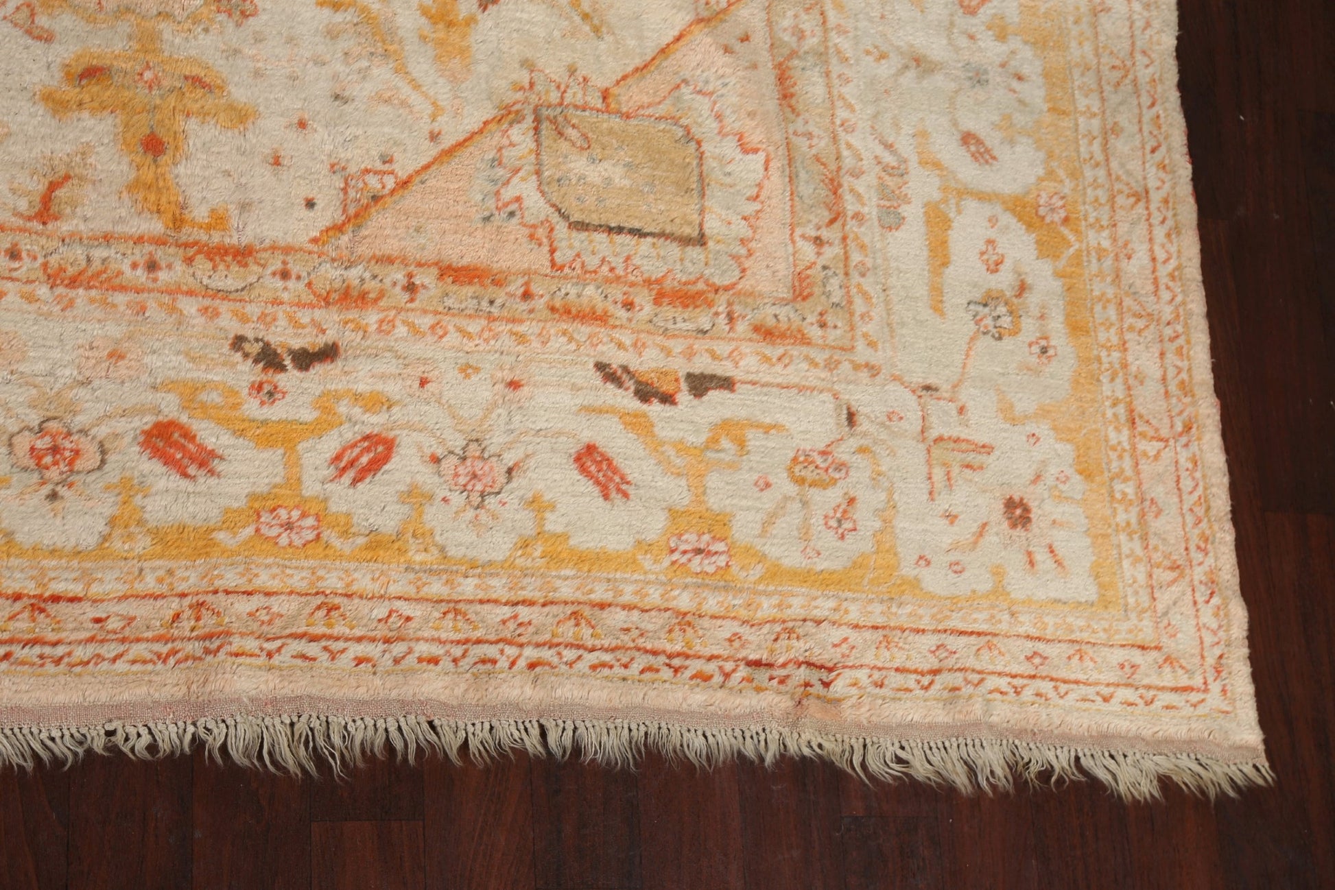 Pre-1900 Antique Vegetable Dye Oushak ANGORA Turkish Rug 13x14