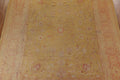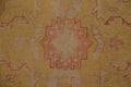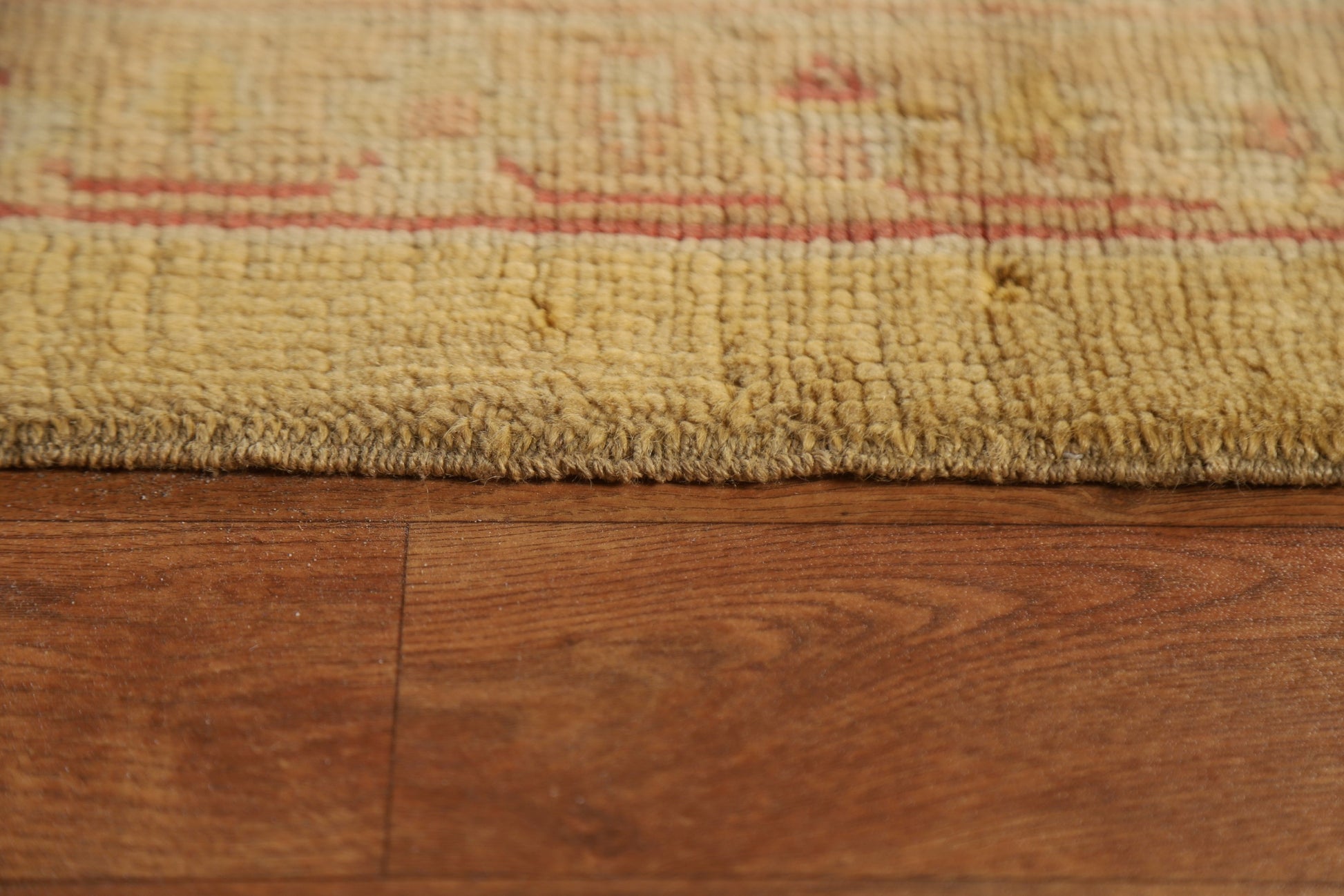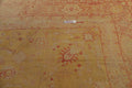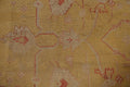 A Beautiful Genuine Turkey Oushak rug is Hand Knotted by skillful weavers in Turkey with 100% Wool Material. This rug is in Very Good (Evenly Low Pile-Repair) condition. dimensions are 14' 1'' X 11' 7'' in foot and 429 X 353 in centimeter. the primary color is Yellow & Gold.