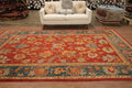 A Beautiful Genuine Persia ( Persia ) Oushak rug is Hand Knotted by skillful weavers in Persia ( Persia ) with 100% Wool Material. This rug is in Very Good (Evenly Low Pile) condition. dimensions are 11' 4'' X 8' 8'' in foot and 345 X 264 in centimeter. the primary color is Oranges & Rust.