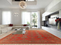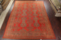 A Beautiful Genuine Turkey Oushak rug is Hand Knotted by skillful weavers in Turkey with 100% Wool Material. This rug is in Very Good (Evenly Low Pile) condition. dimensions are 18' 9'' X 14' 3'' in foot and 572 X 434 in centimeter. the primary color is Red.