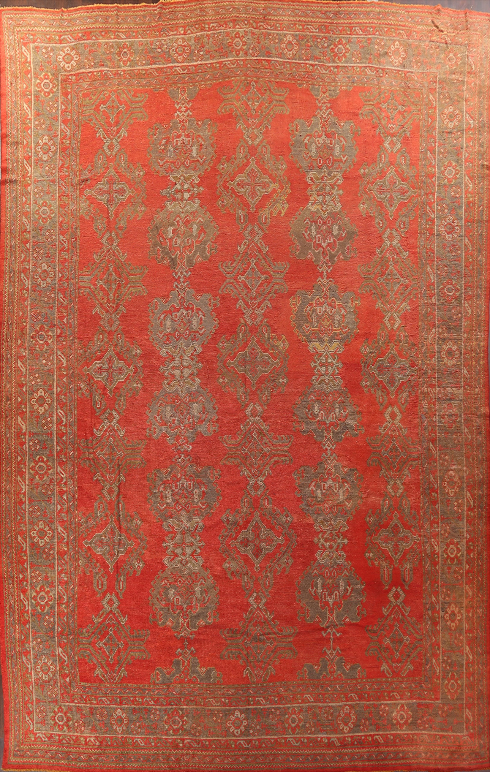 Pre-1900 Antique Vegetable Dye Oushak Turkish Area Rug 14x19
