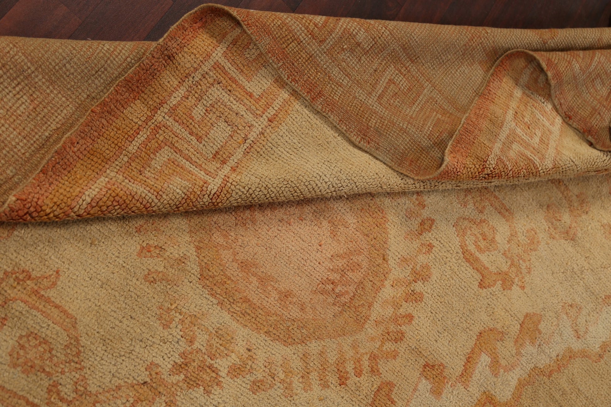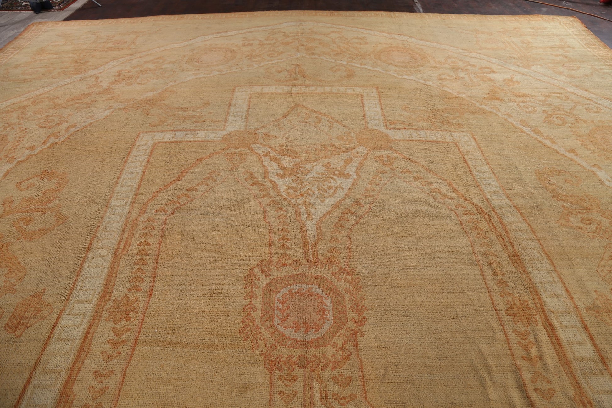 Pre-1900 Antique Vegetable Dye Oushak Turkish Area Rug 18x23