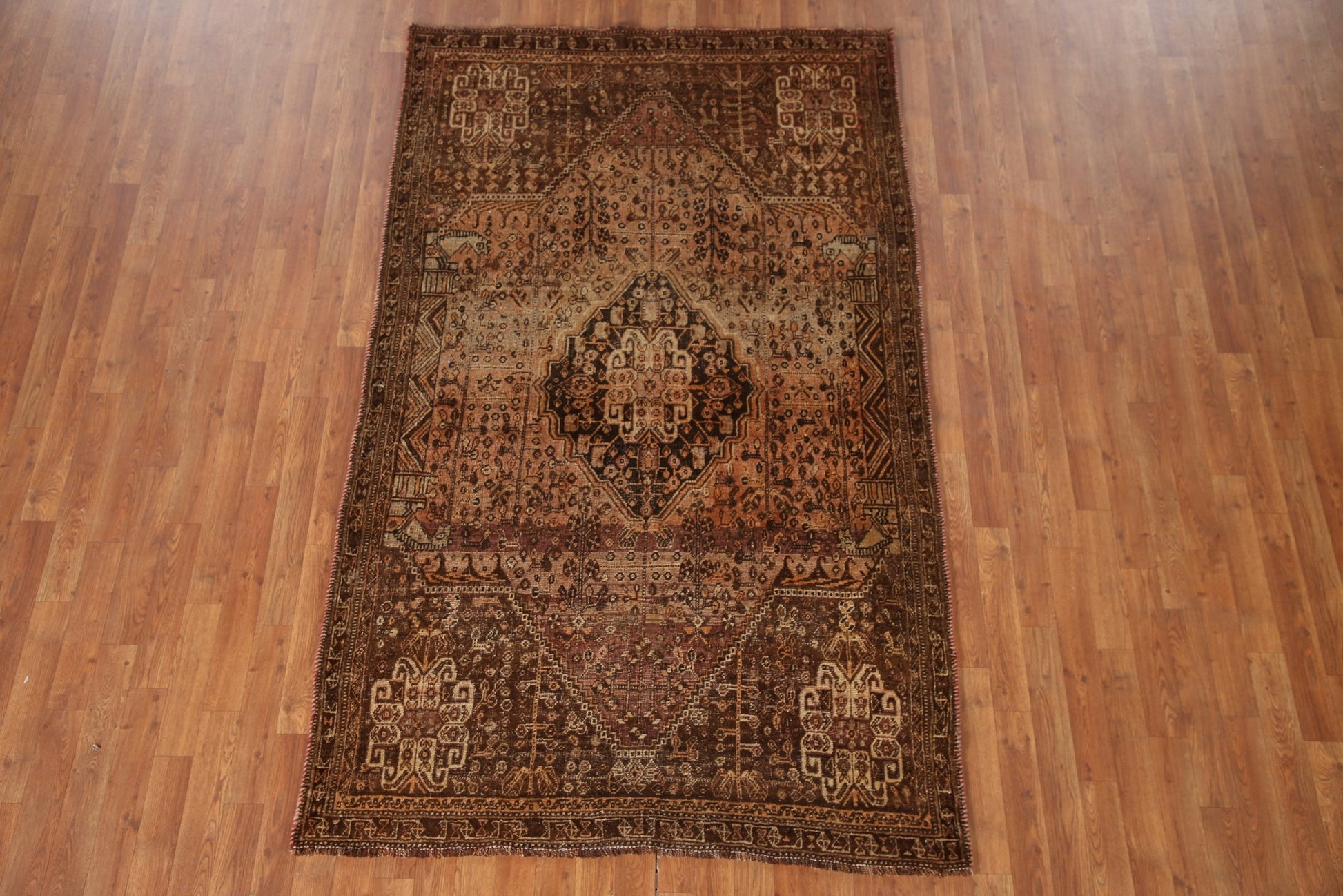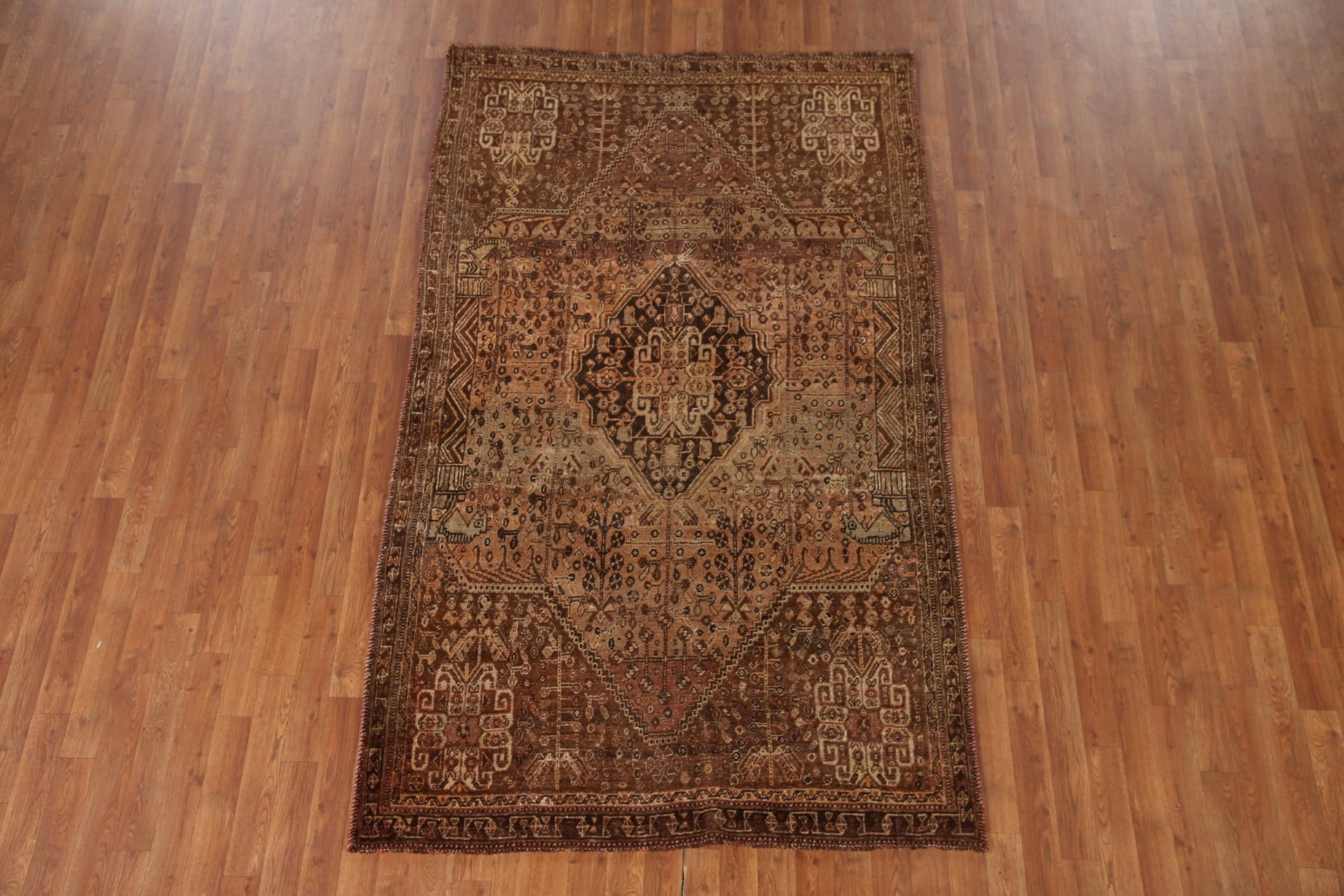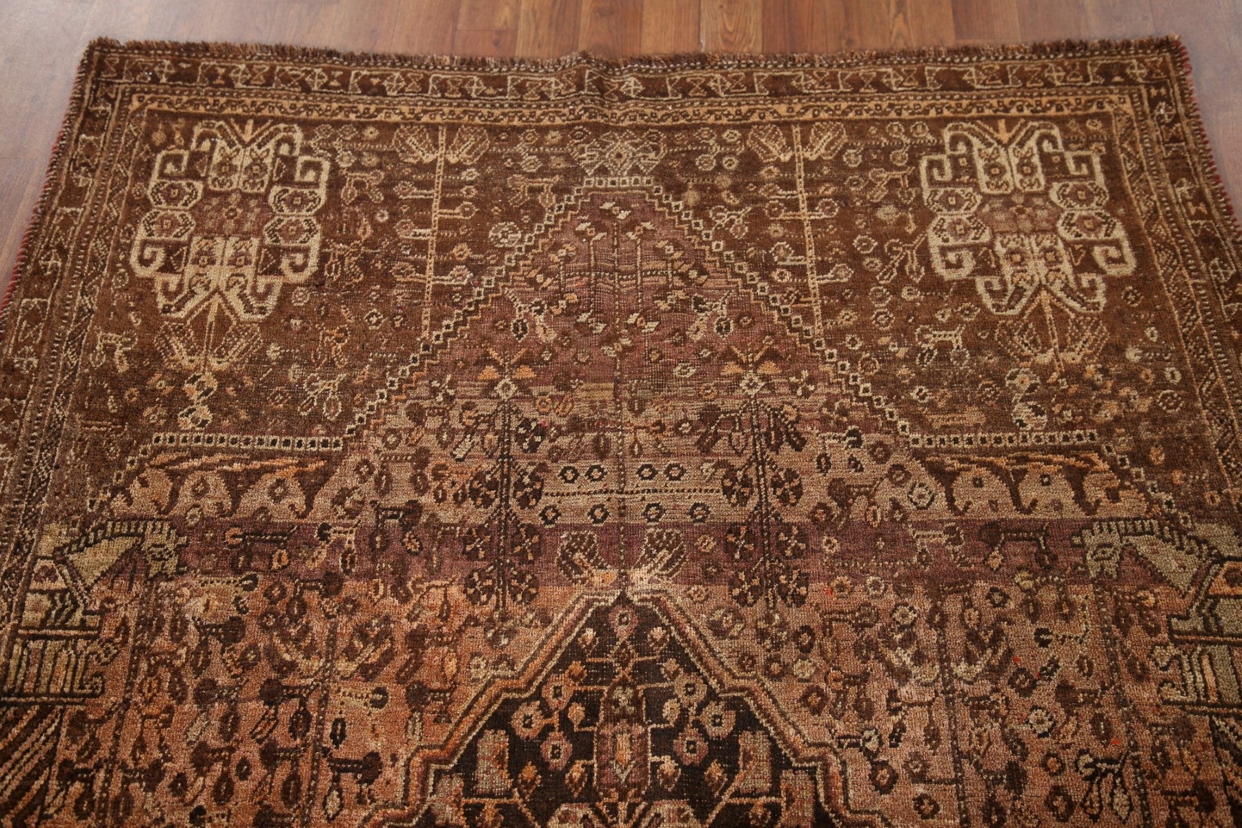 Pre-1900 Antique Vegetable Dye Qashqai Persian Rug 5x8