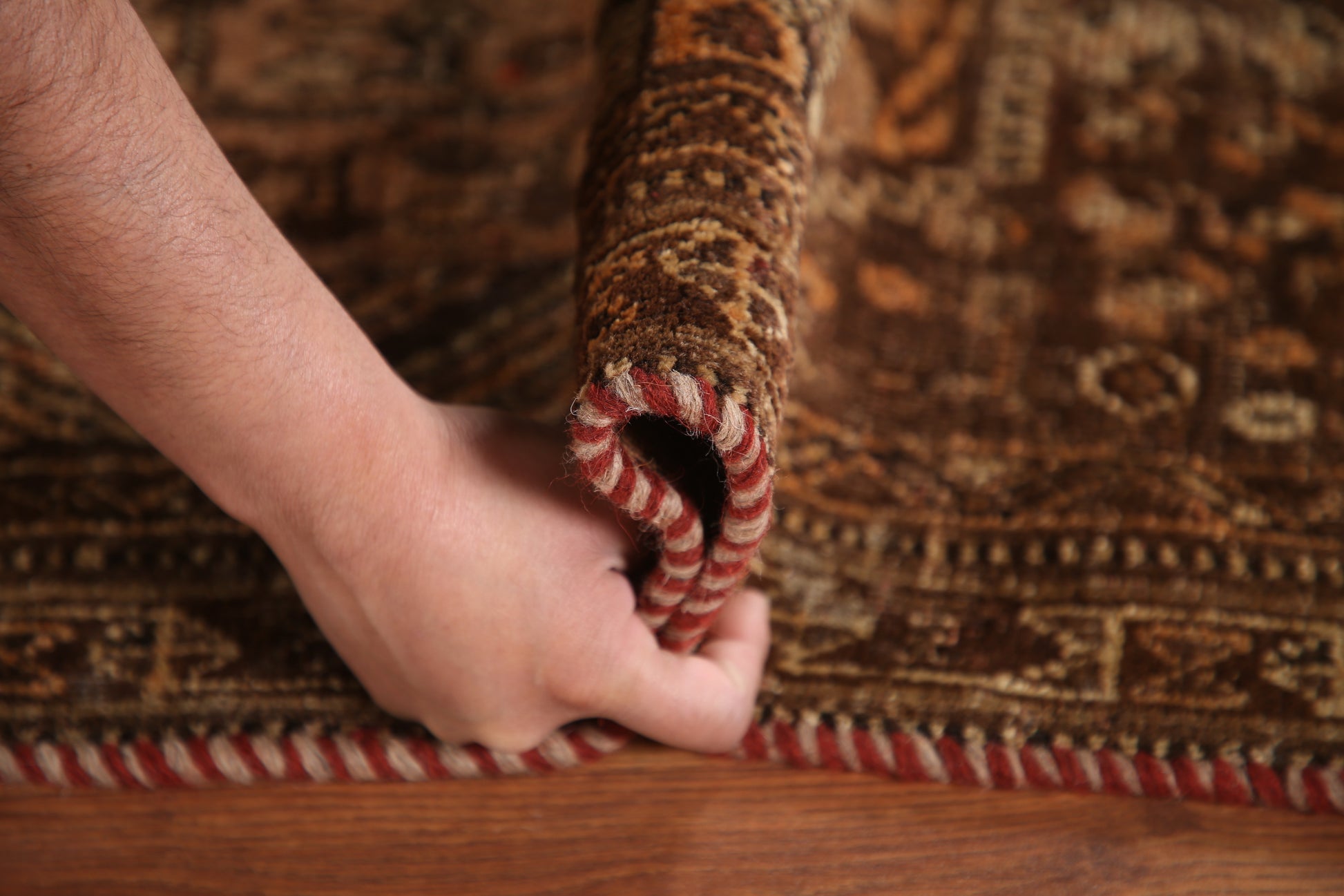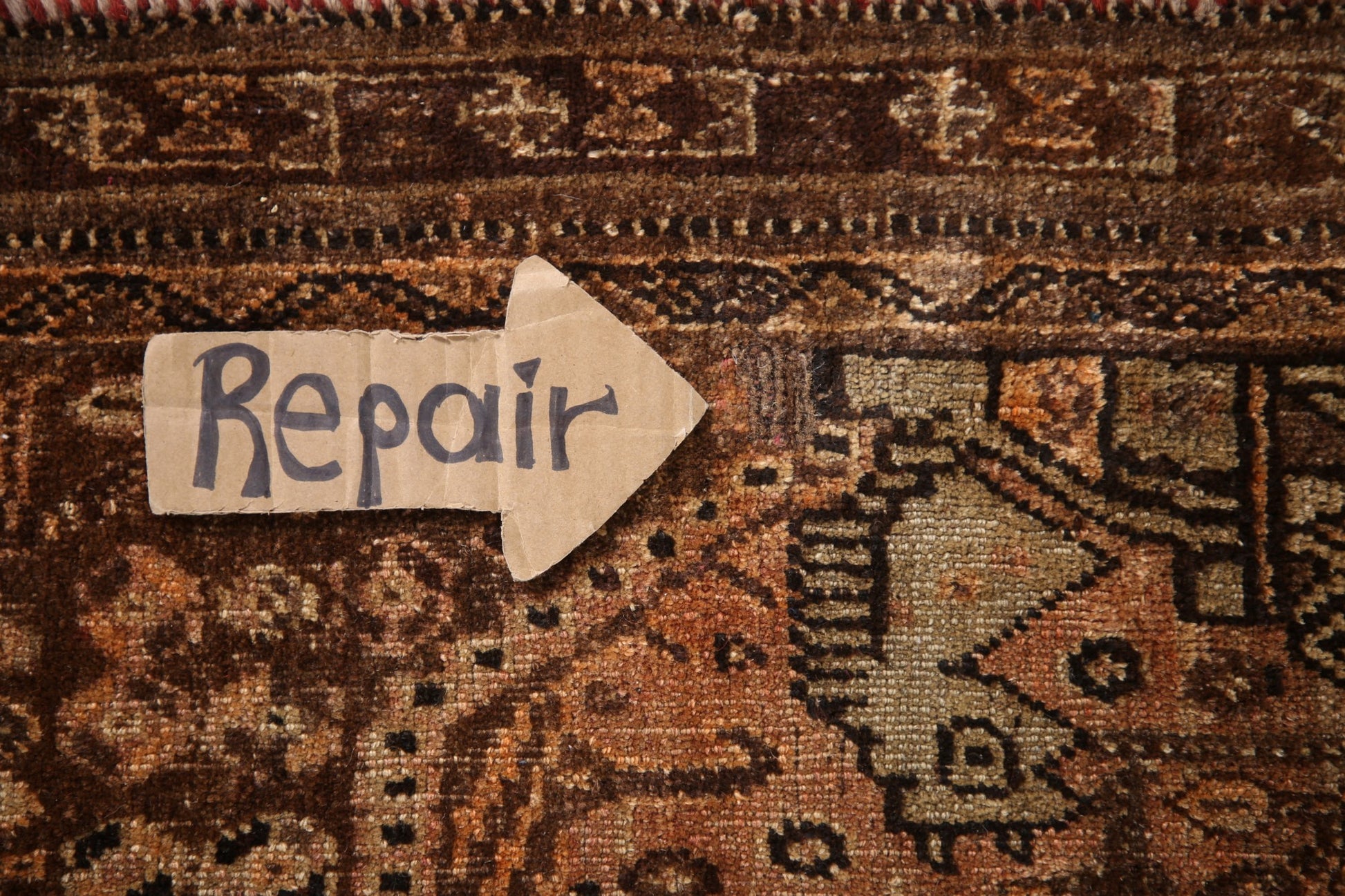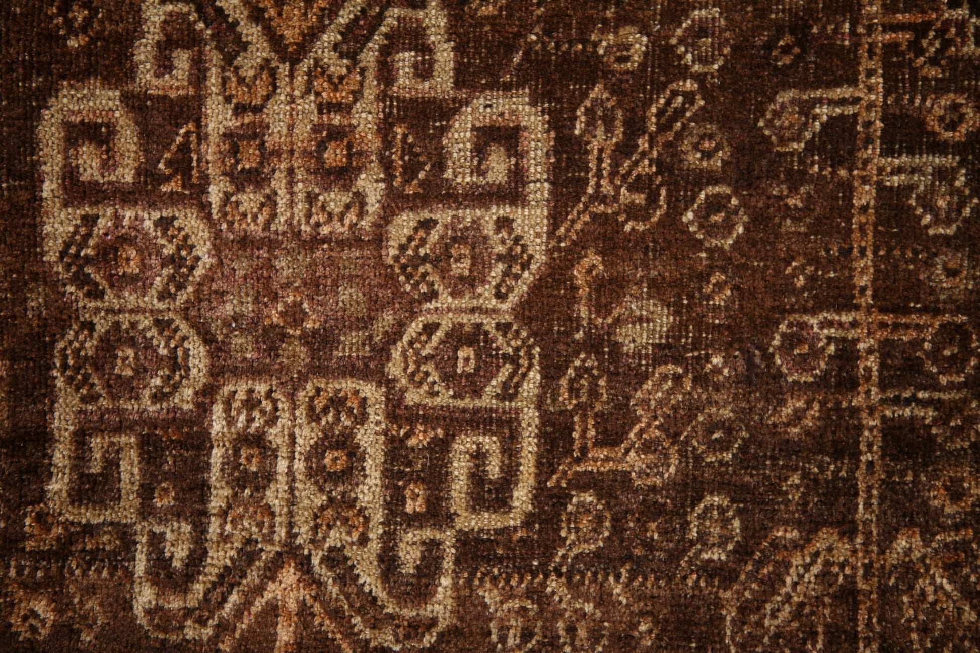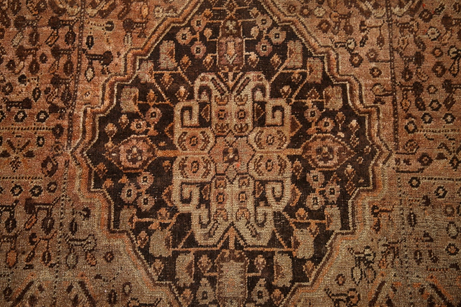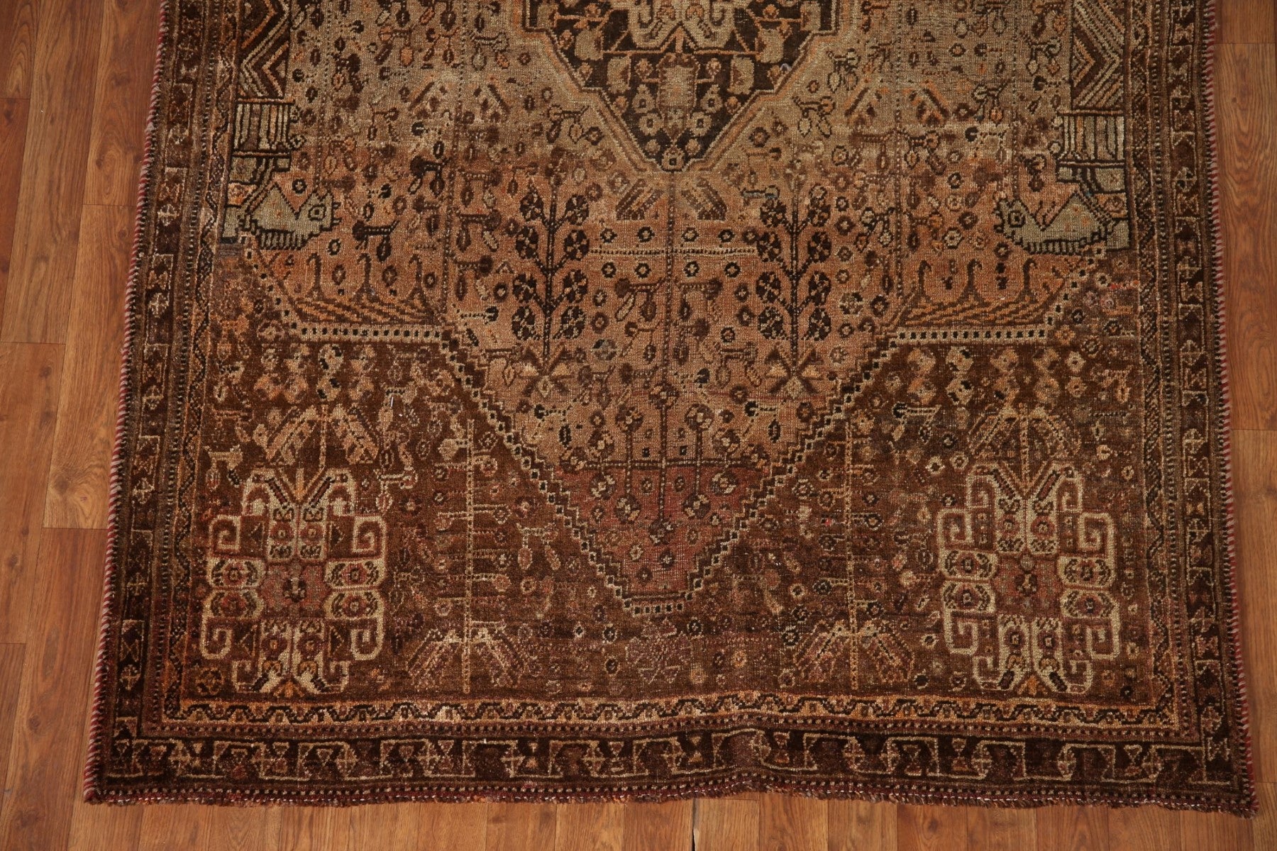 A Beautiful Genuine Persia ( Persia ) Qashqai rug is Hand Knotted by skillful weavers in Persia ( Persia ) with 100% Wool Material. This rug is in Very Good (Evenly Low Pile-Repairs) condition. dimensions are 7' 9'' X 4' 8'' in foot and 236 X 142 in centimeter. the primary color is Brown.