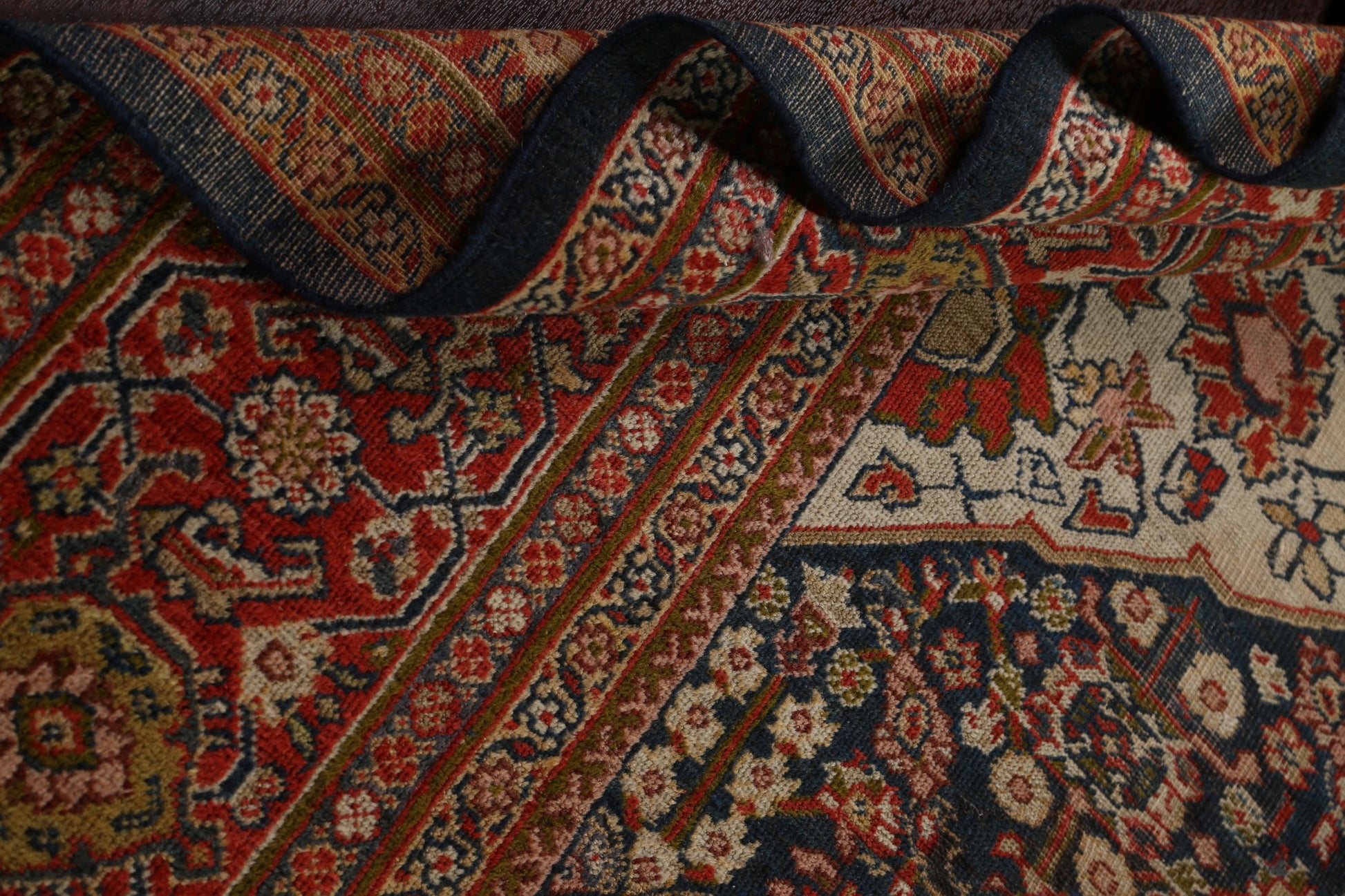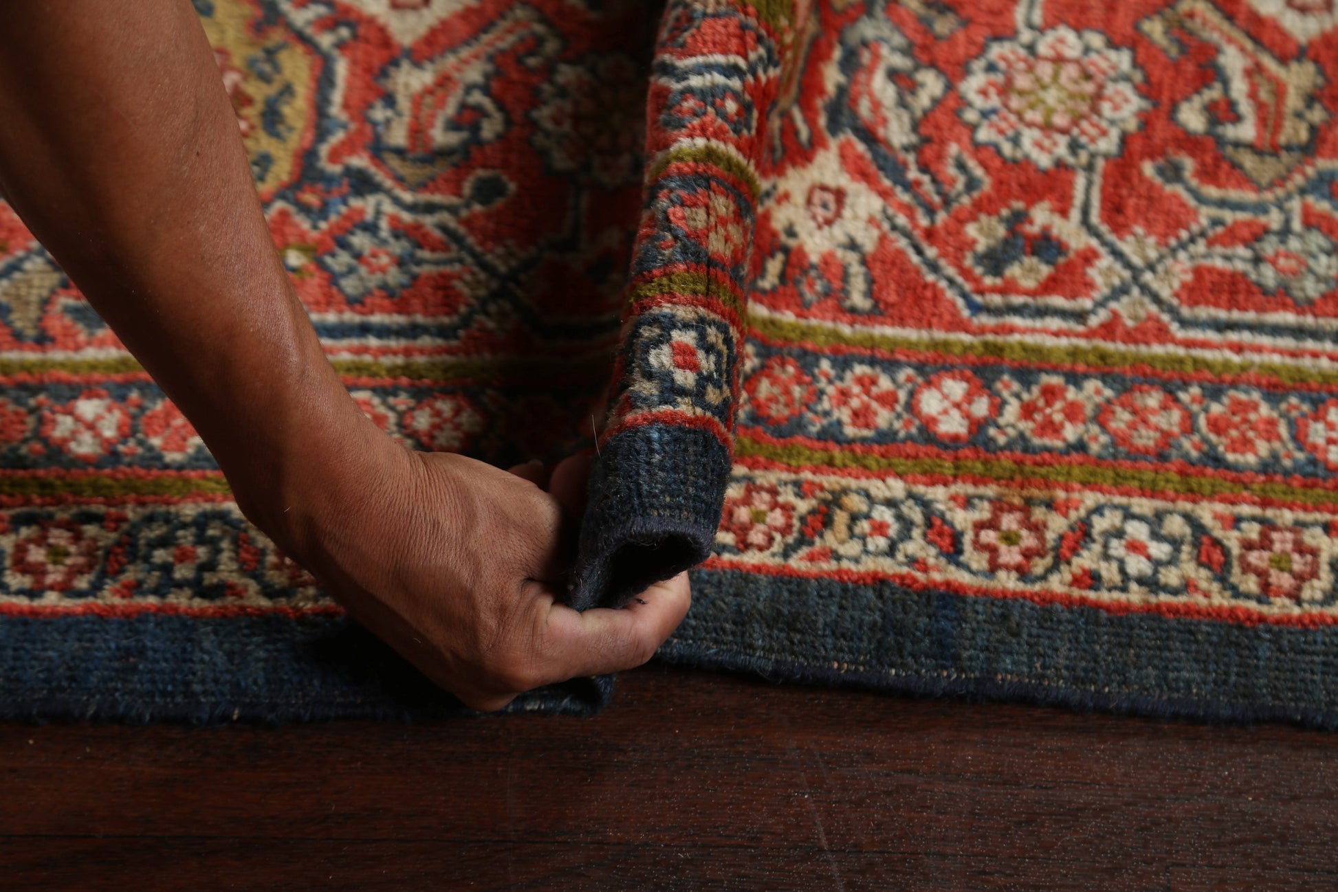 A Beautiful Genuine Persia ( Persia ) Sarouk (Farahan) rug is Hand Knotted by skillful weavers in Persia ( Persia ) with 100% Wool Material. This rug is in Very Good (Evenly Low Pile) condition. dimensions are 20' 10'' X 10' 0'' in foot and 635 X 305 in centimeter. the primary color is Navy Blue & Blues.
