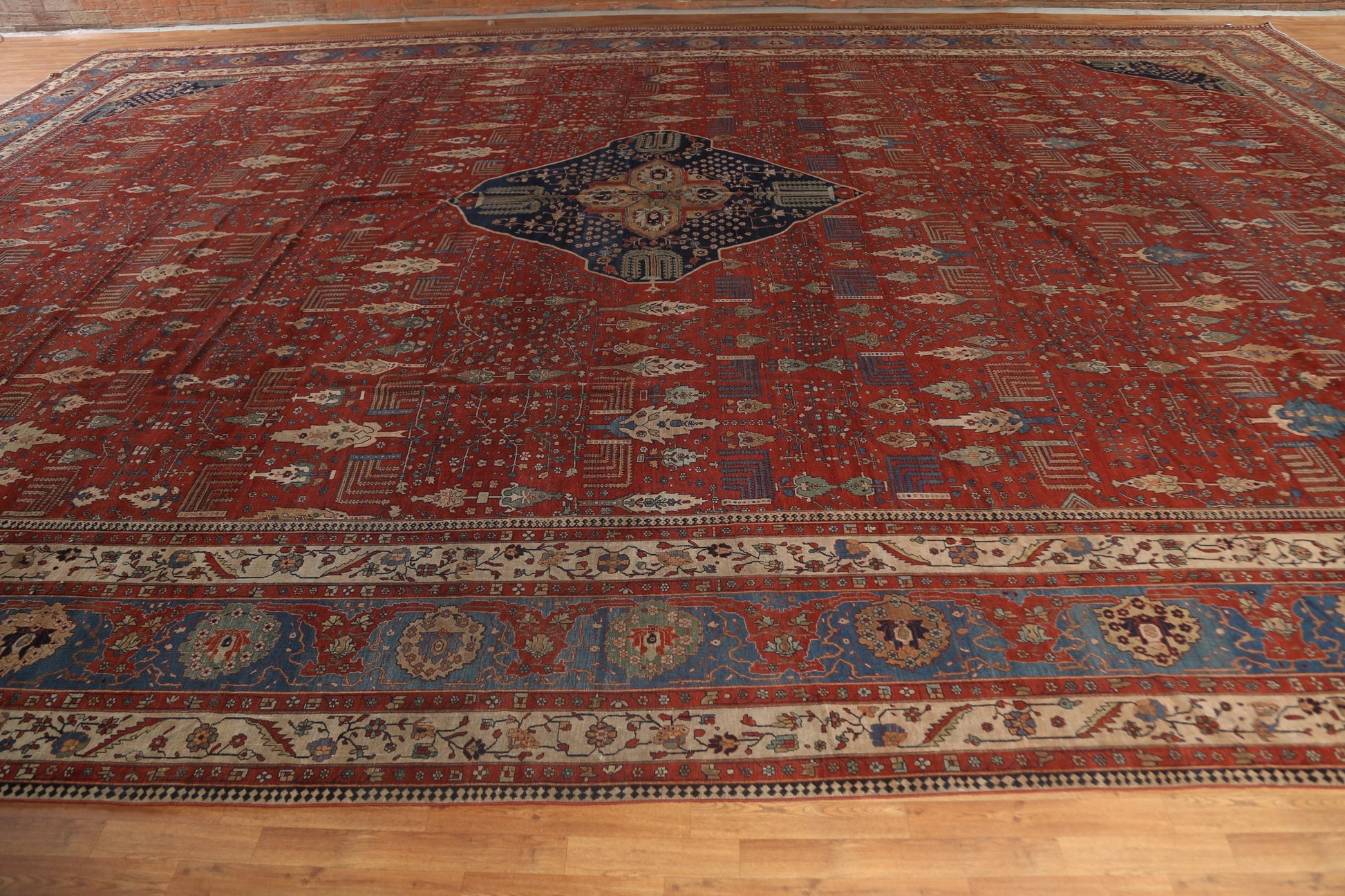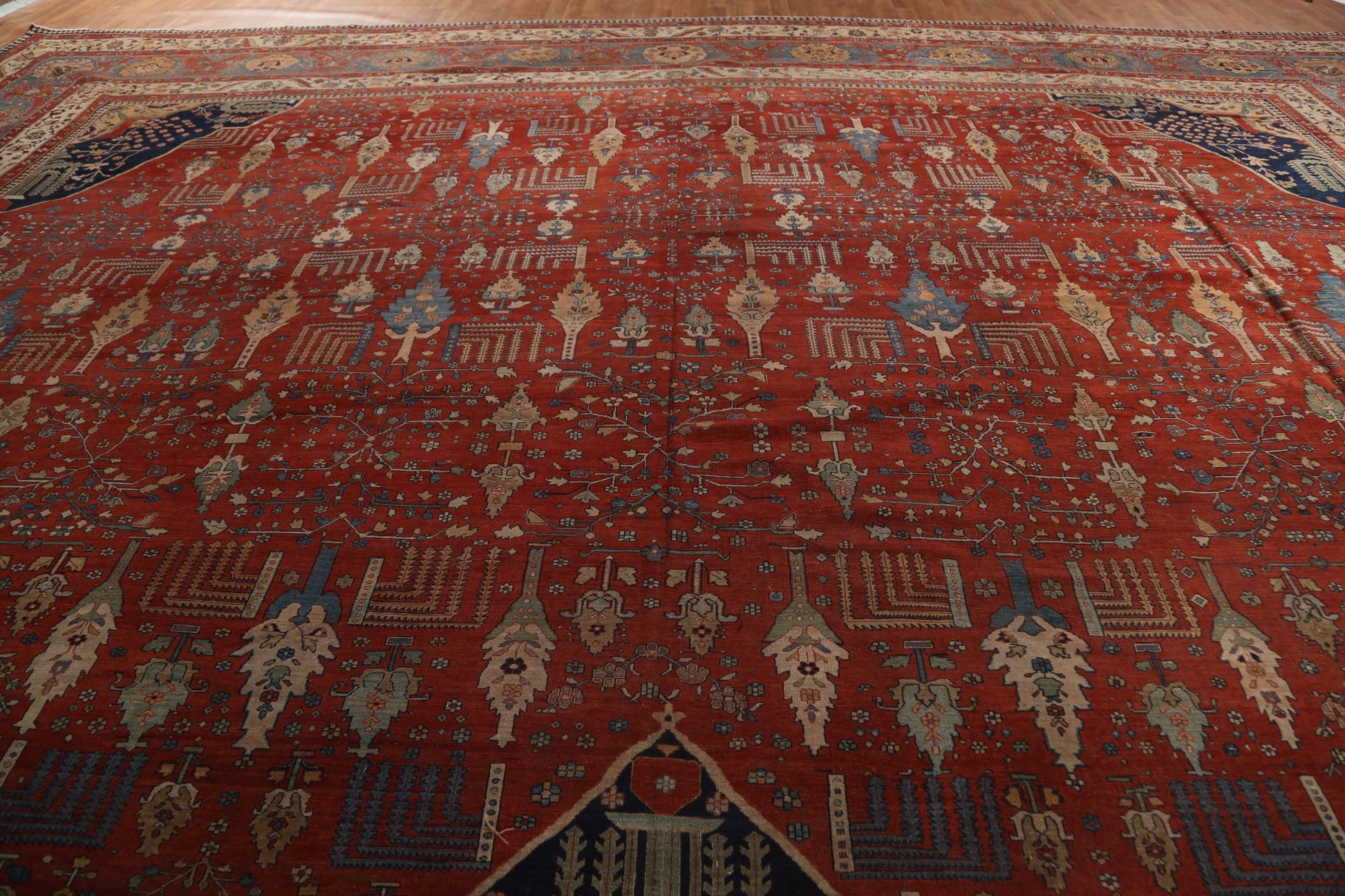 A Beautiful Genuine Persia ( Persia ) Sarouk (Farahan) rug is Hand Knotted by skillful weavers in Persia ( Persia ) with 100% Wool Material. This rug is in Very Good (Evenly Low Pile-Repair) condition. dimensions are 29' 7'' X 20' 4'' in foot and 902 X 620 in centimeter. the primary color is Red.