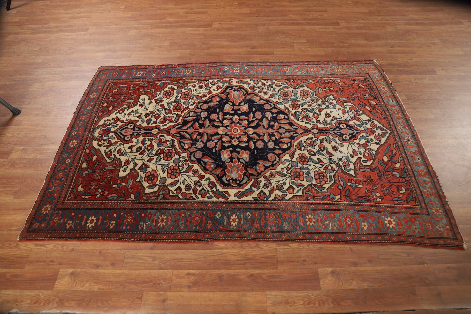 Pre-1900 Antique Vegetable Dye Sarouk Farahan Persian Rug 4x6