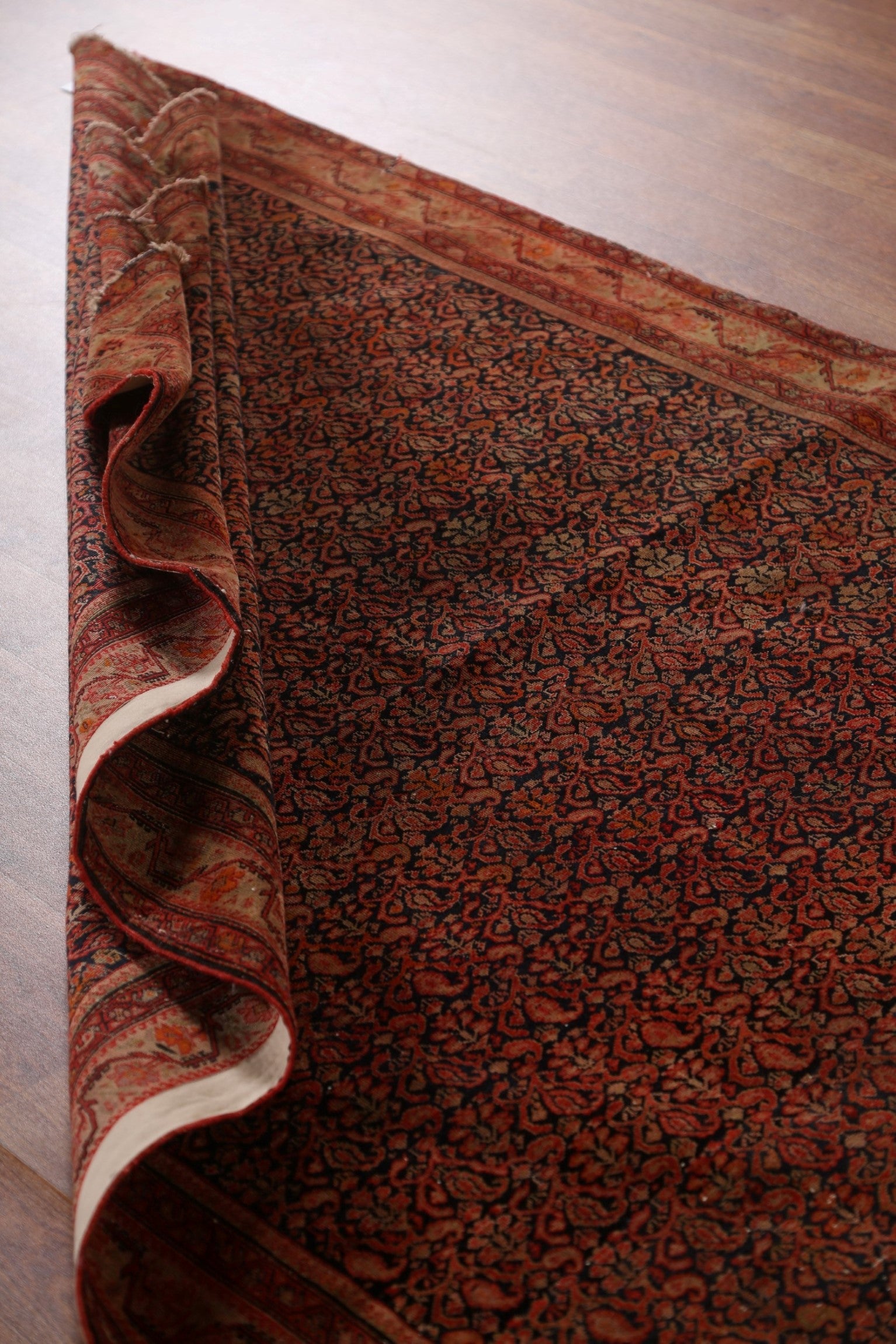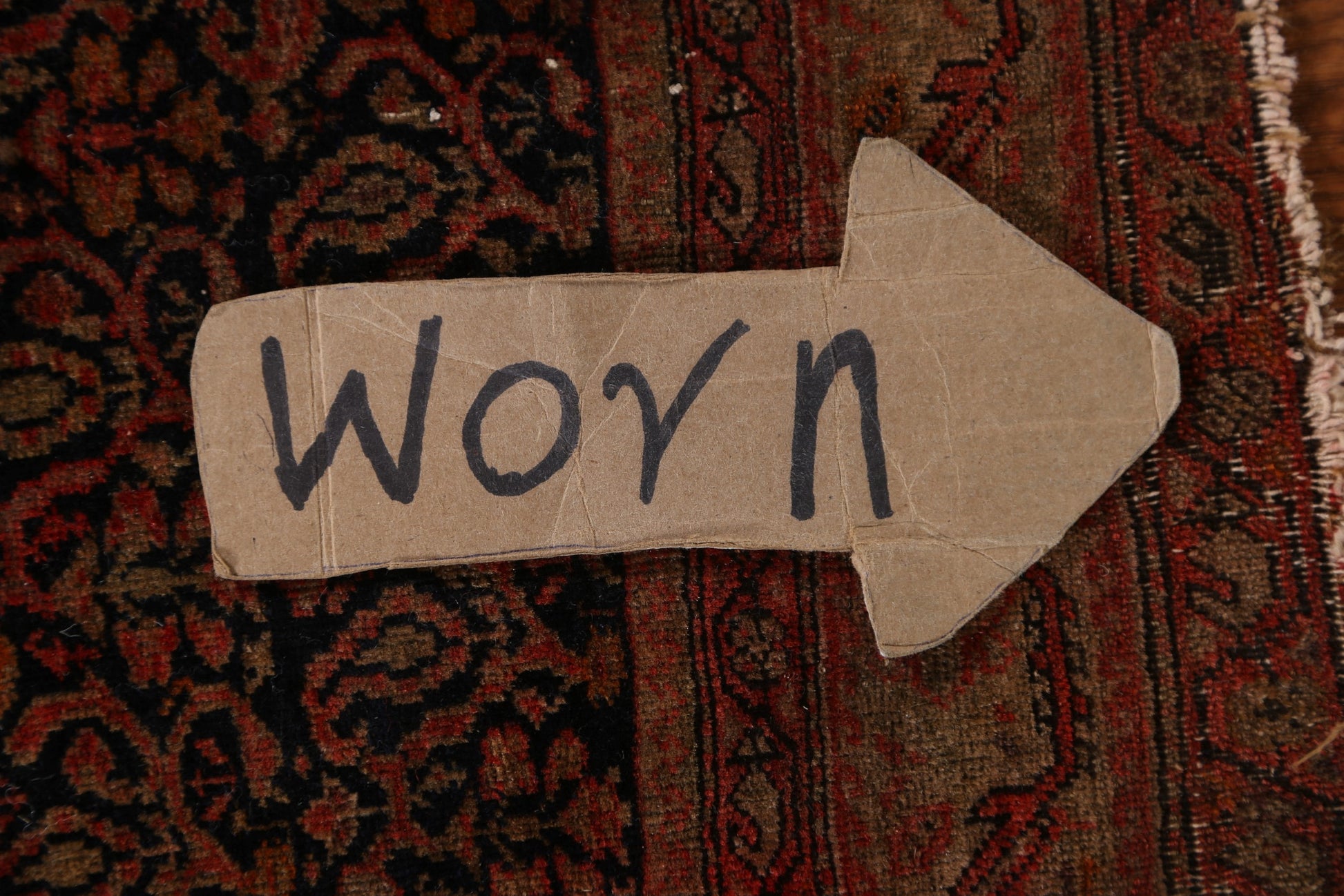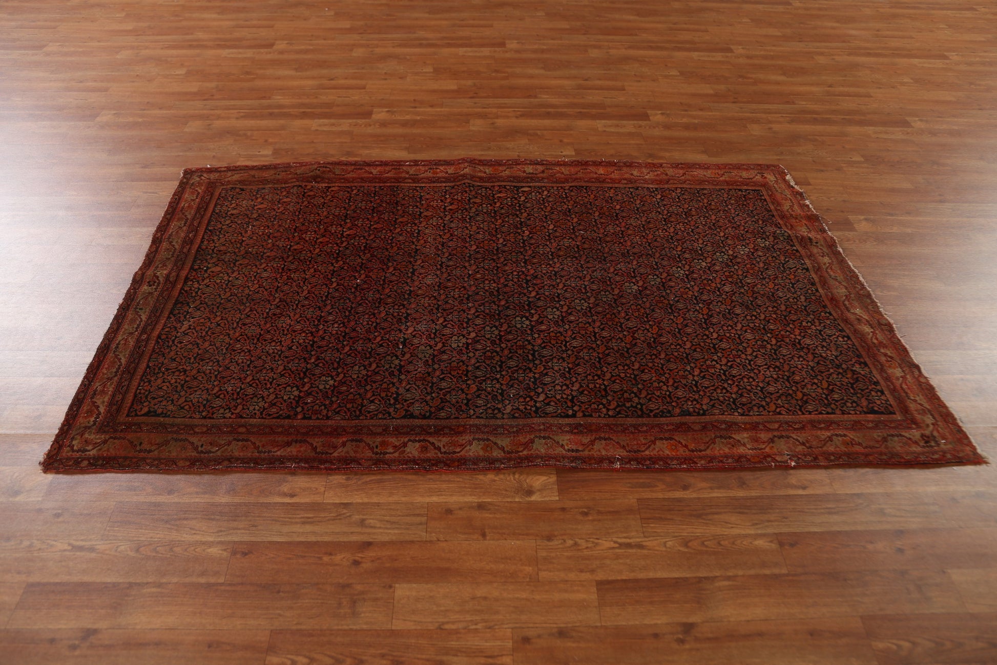 A Beautiful Genuine Persia ( Persia ) Sarouk (Farahan) rug is Hand Knotted by skillful weavers in Persia ( Persia ) with 100% Wool Material. This rug is in Good (Low Pile-Repairs) condition. dimensions are 6' 4'' X 4' 0'' in foot and 193 X 122 in centimeter. the primary color is Black.