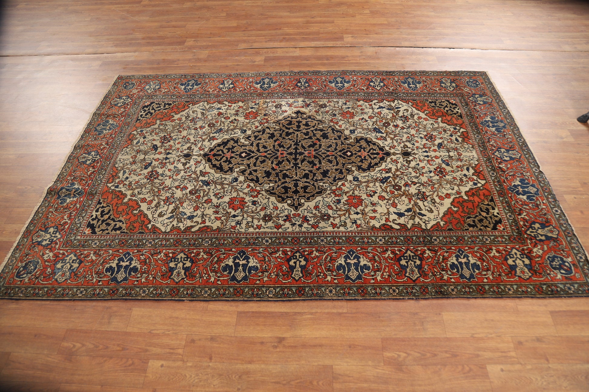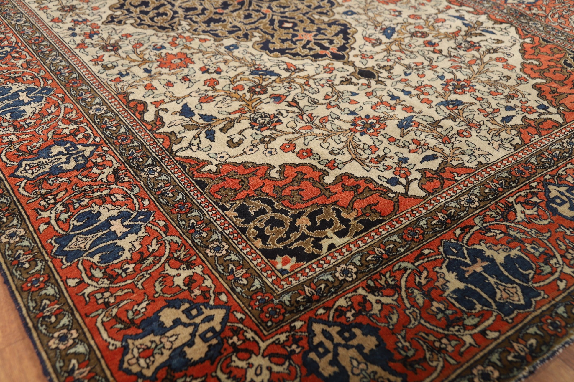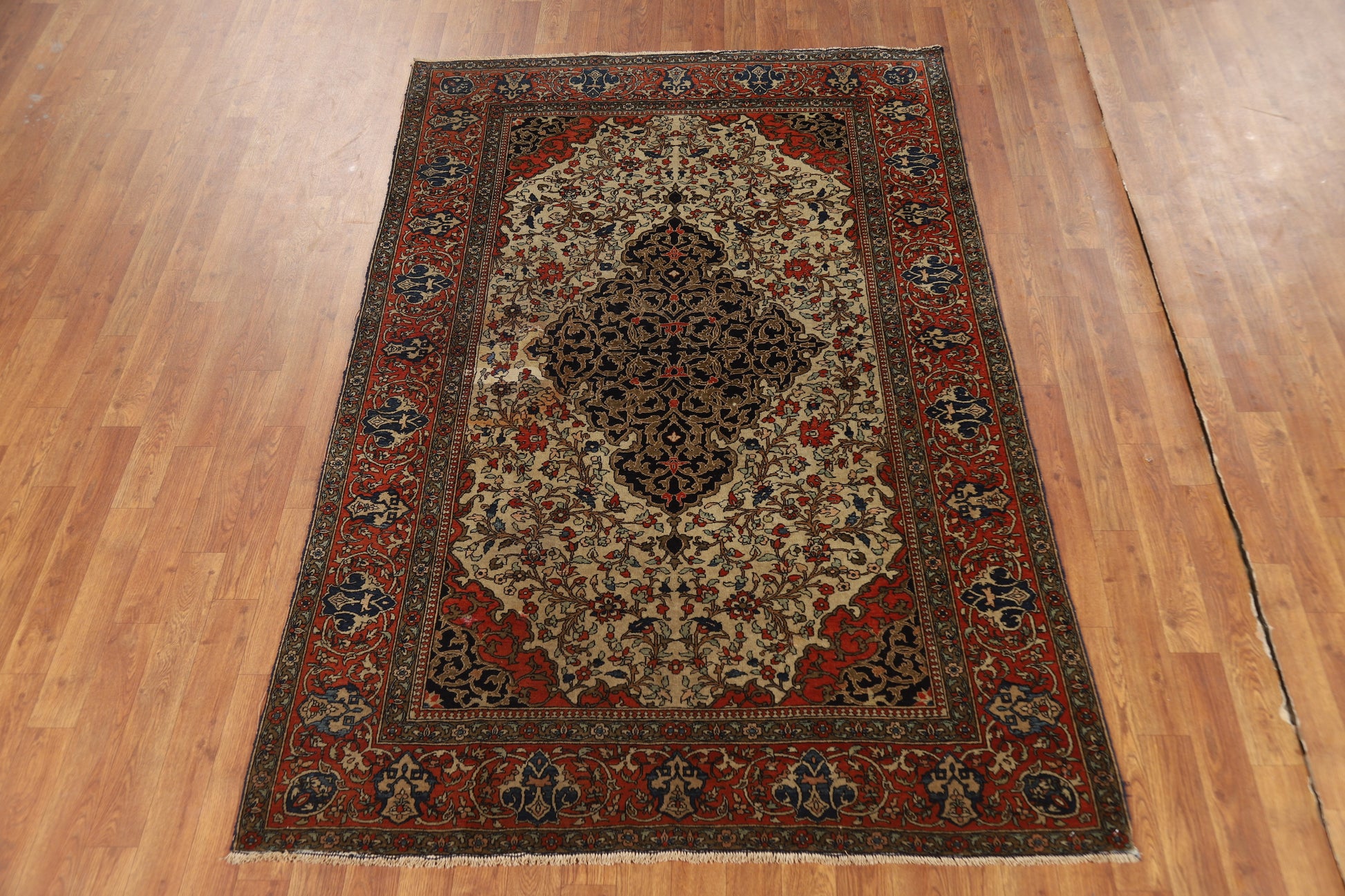 Pre-1900 Antique Vegetable Dye Sarouk Farahan Persian Rug 4x7