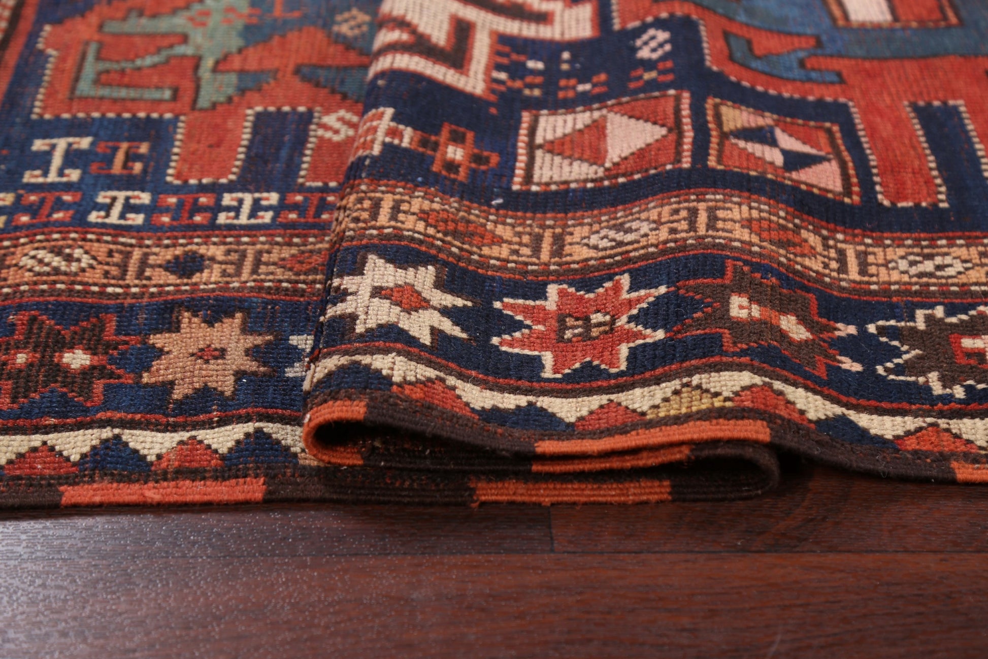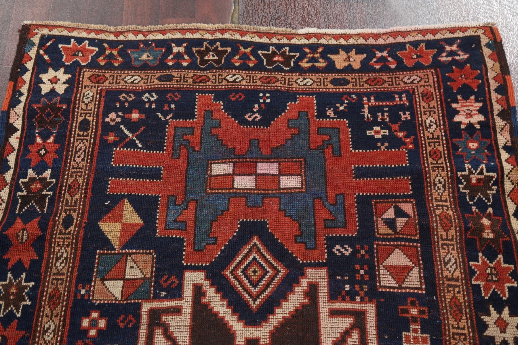 A Beautiful Genuine Russia Shirvan rug is Hand Knotted by skillful weavers in Russia with 100% Wool Material. This rug is in Very Good (Evenly Low Pile) condition. dimensions are 5' 5'' X 3' 6'' in foot and 165 X 107 in centimeter. the primary color is Navy Blue & Blues.