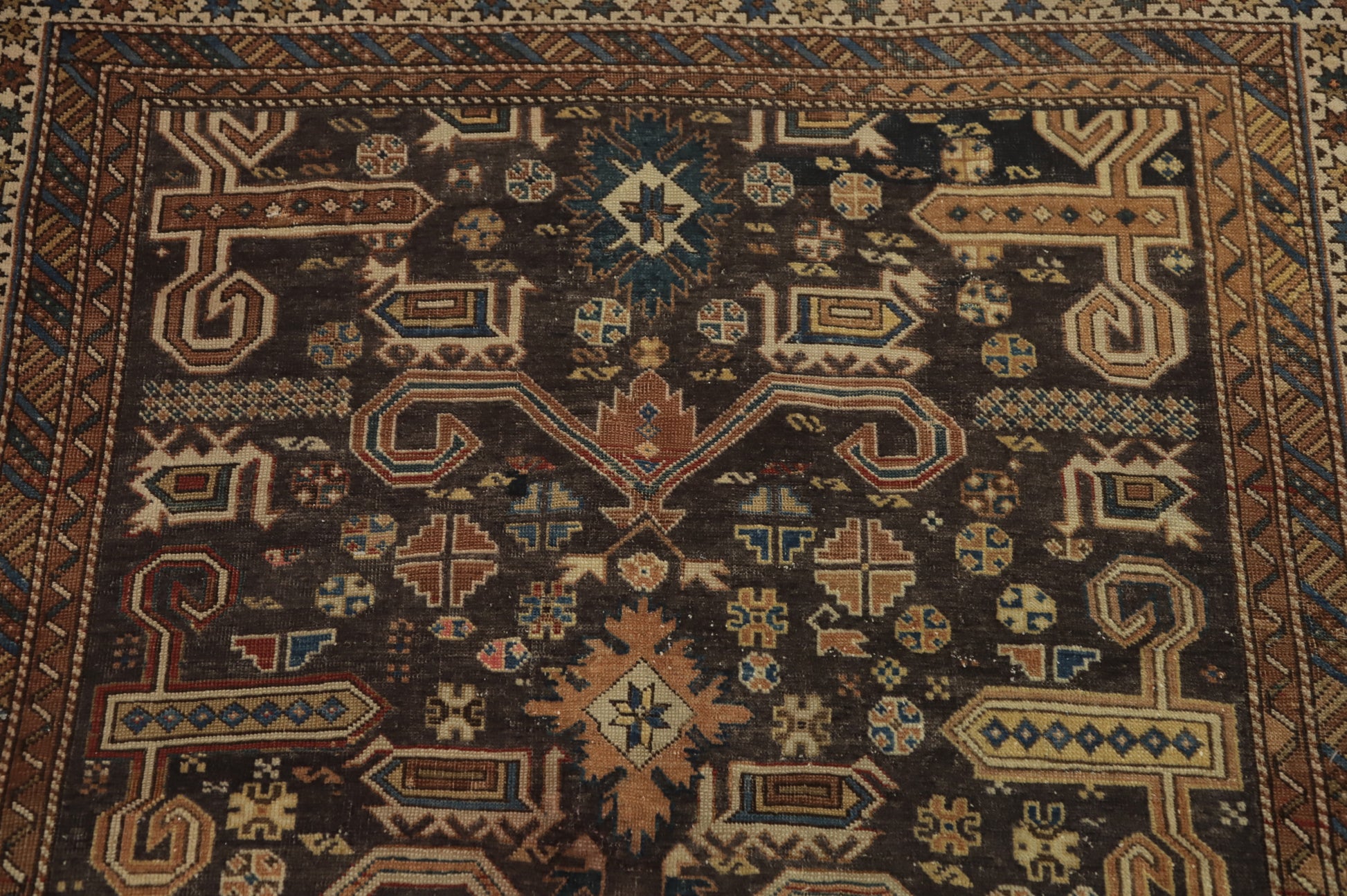 Pre-1900 Antique Vegetable Dye Shirvan Oriental Rug 4x5
