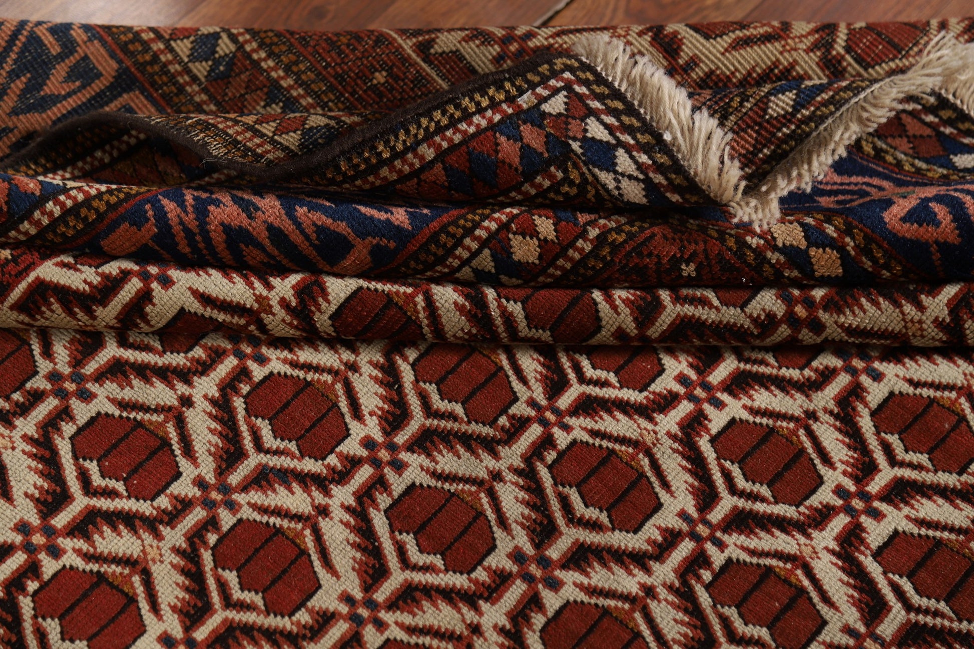 A Beautiful Genuine Persia ( Persia ) Shirvan rug is Hand Knotted by skillful weavers in Persia ( Persia ) with 100% Wool Material. This rug is in Very Good Low Pile condition. dimensions are 8' 7'' X 4' 10'' in foot and 262 X 147 in centimeter. the primary color is Beige & Ivories.