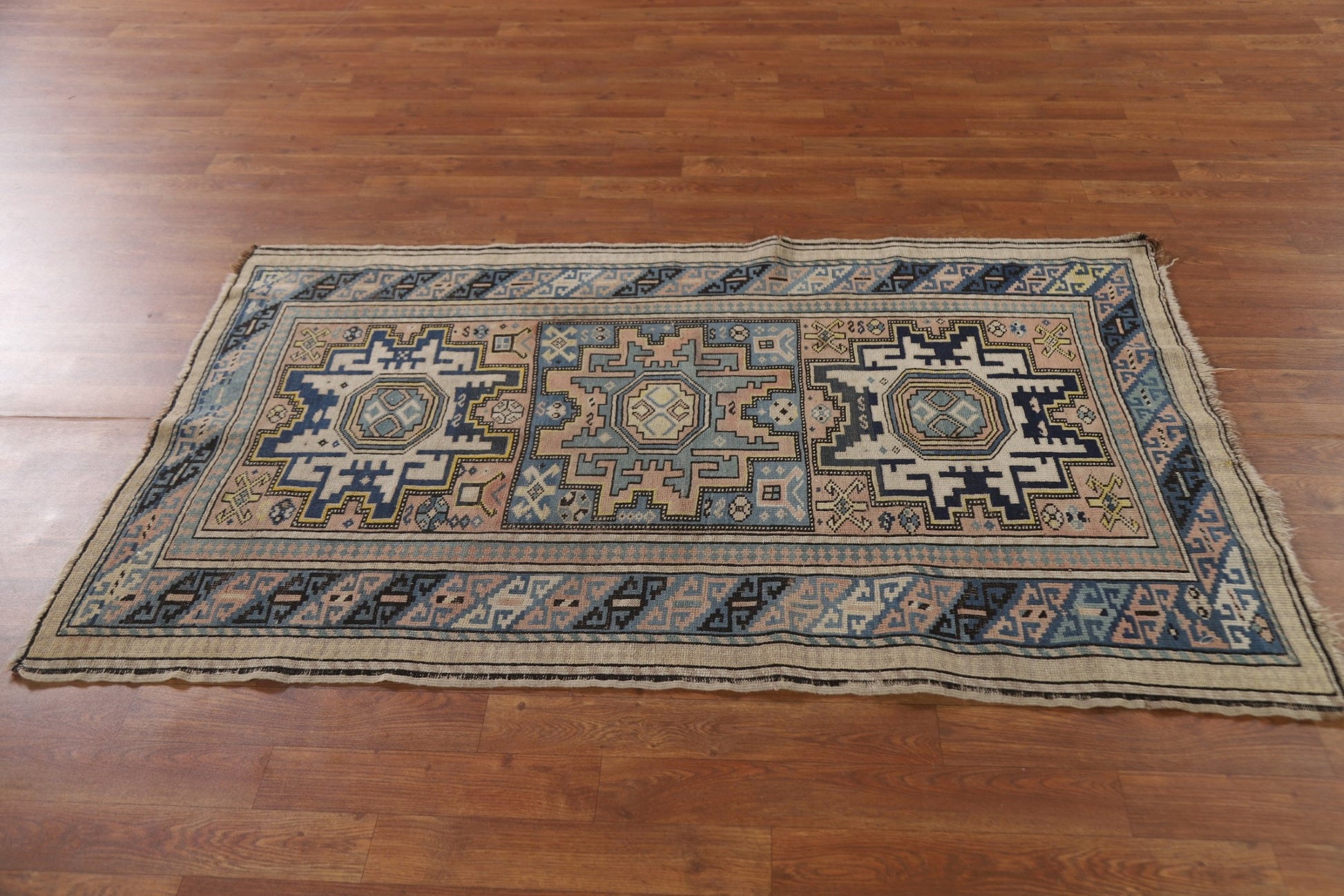 A Beautiful Genuine Russia Shirvan rug is Hand Knotted by skillful weavers in Russia with 100% Wool Material. This rug is in Very Good (Evenly Low Pile) condition. dimensions are 5' 5'' X 3' 3'' in foot and 165 X 99 in centimeter. the primary color is Multi-Colored.