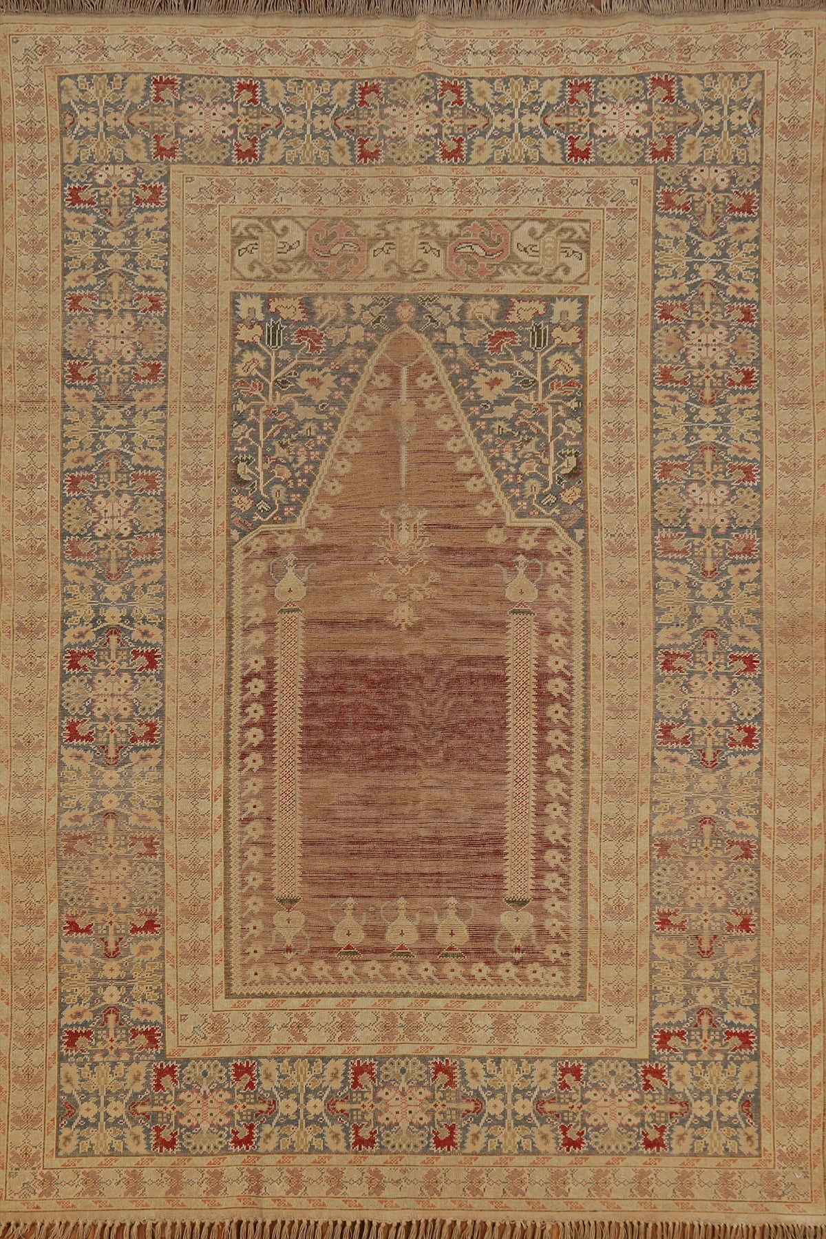 Pre-1900 Antique Vegetable Dye Silk Anatolian Turkish Rug 4x6