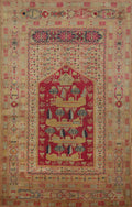 Pre-1900 Antique Vegetable Dye Silk Anatolian Turkish Rug 4x6