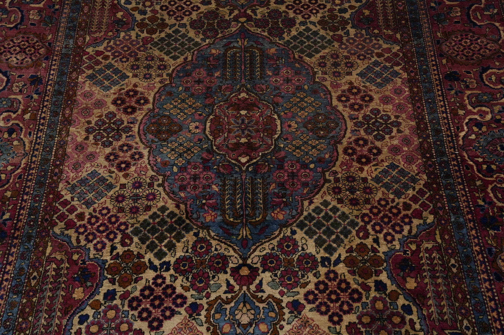 Pre-1900 Antique Vegetable Dye Silk Kashan Persian Rug 4x7