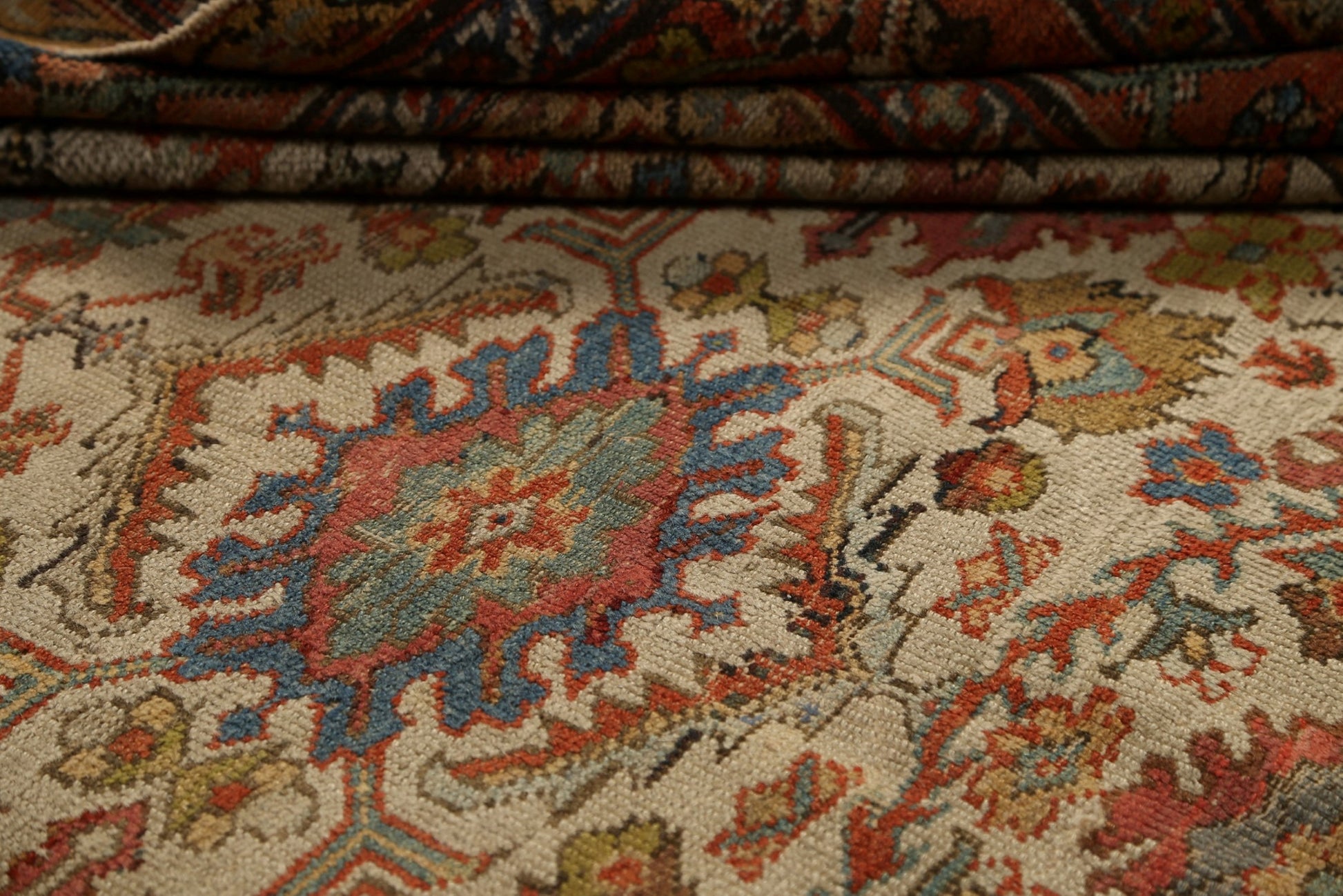 A Beautiful Genuine Persia ( Persia ) Sultanabad rug is Hand Knotted by skillful weavers in Persia ( Persia ) with 100% Wool Material. This rug is in Very Good (Evenly Low Pile) condition. dimensions are 11' 9'' X 8' 11'' in foot and 358 X 272 in centimeter. the primary color is Beige & Ivories.