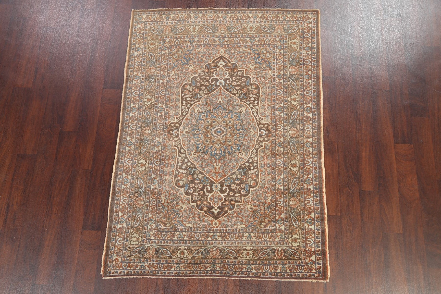 Pre-1900 Antique Vegetable Dye Tabriz Haj Jalili Persian Area Rug 5x6
