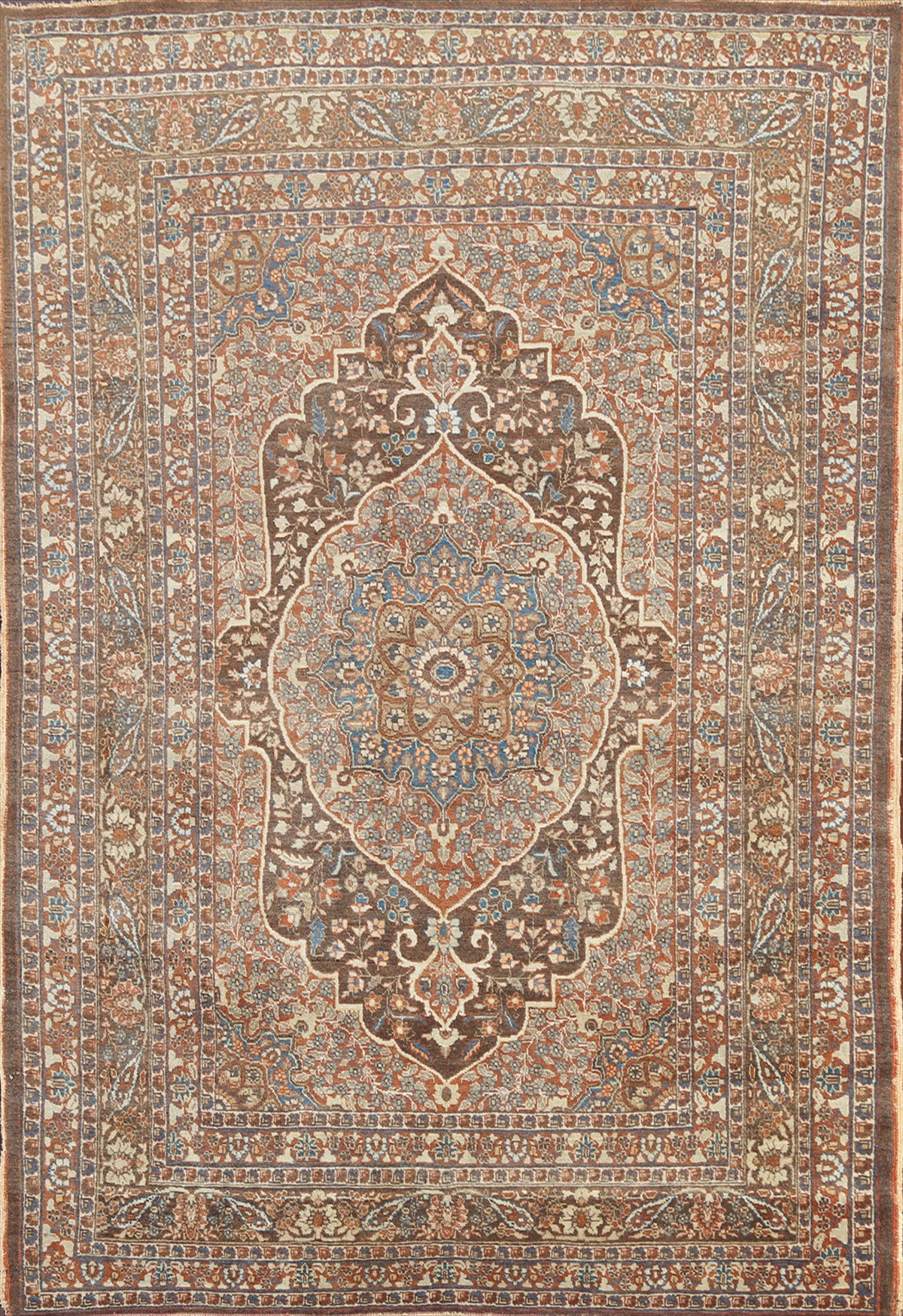 A Beautiful Genuine Persia ( Persia ) Tabriz (Haj Jalili) rug is Hand Knotted by skillful weavers in Persia ( Persia ) with 100% Wool Material. This rug is in Very Good condition. dimensions are 6' 5'' X 4' 7'' in foot and 196 X 140 in centimeter. the primary color is Brown.