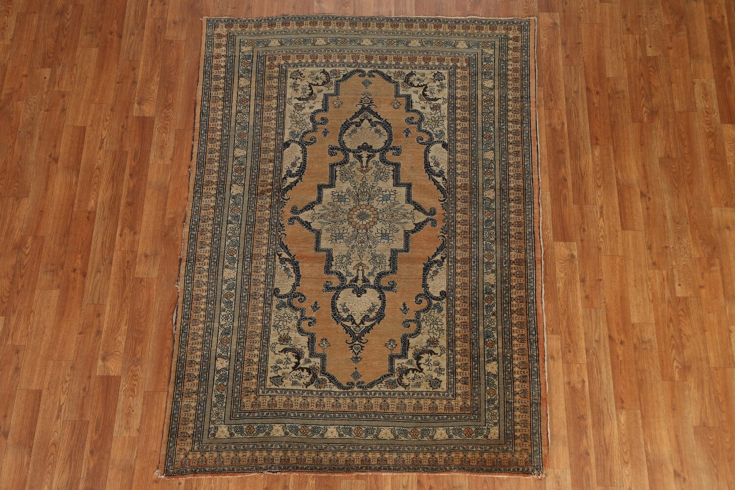 Pre-1900 Antique Vegetable Dye Tabriz Haj Jalili Persian Rug 4x6