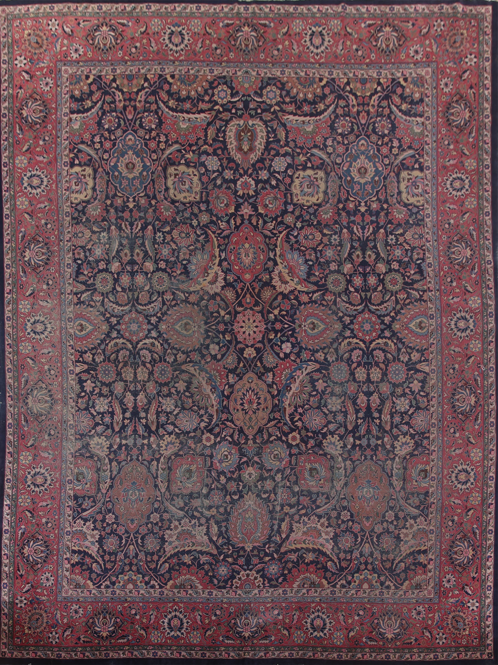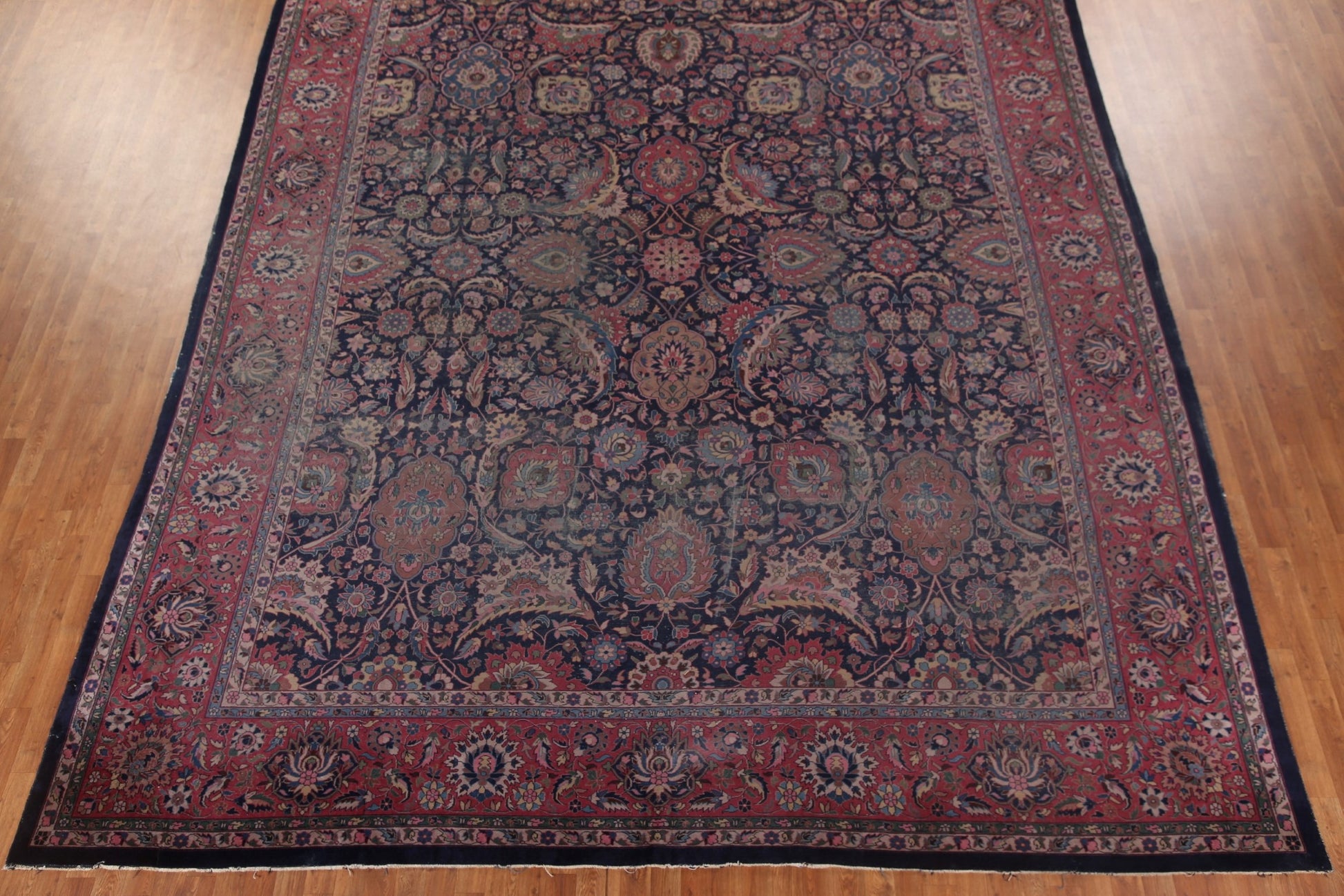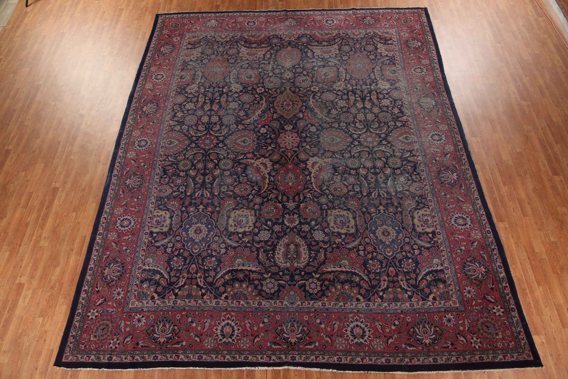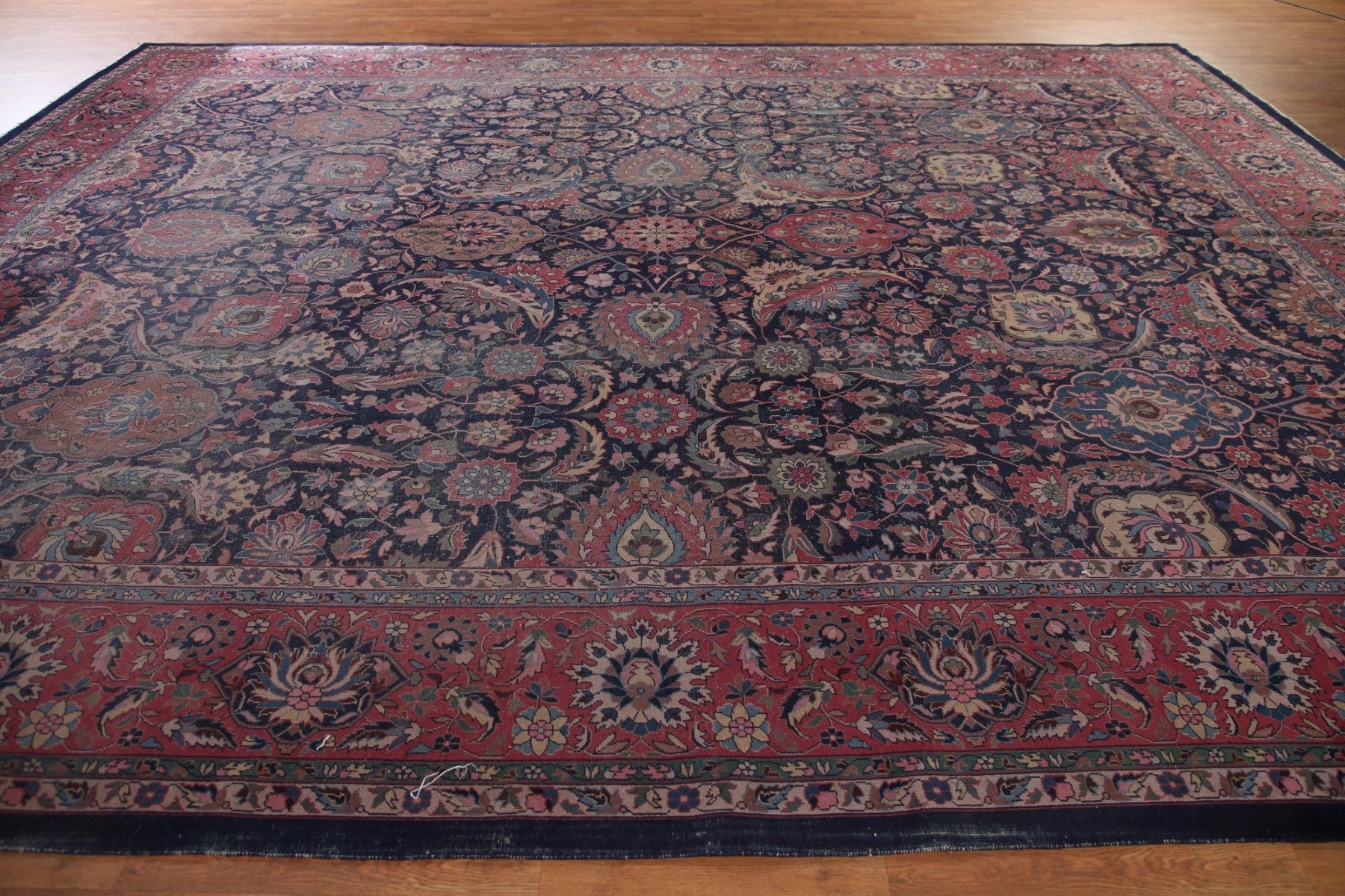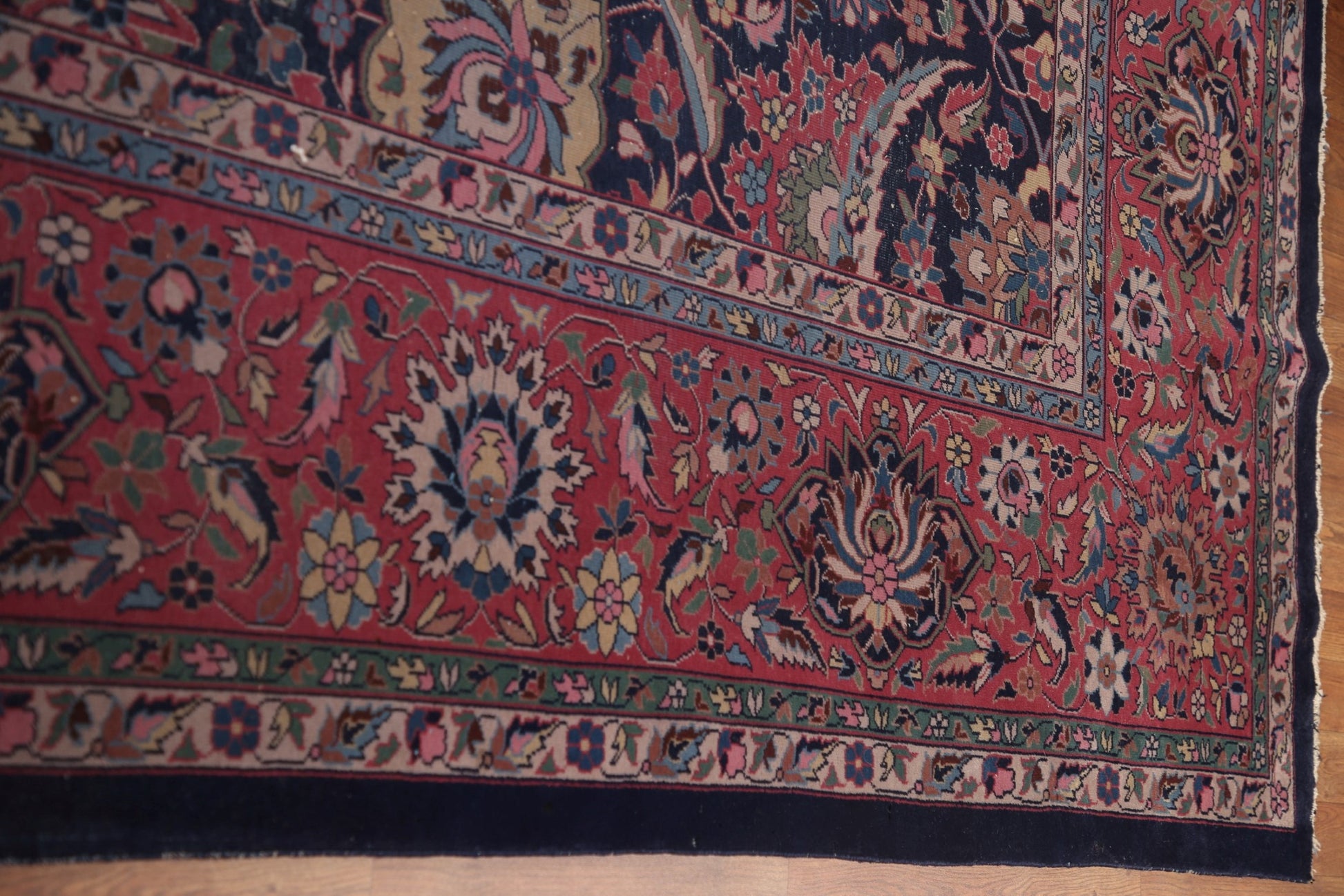 A Beautiful Genuine Persia ( Persia ) Tabriz rug is Hand Knotted by skillful weavers in Persia ( Persia ) with 100% Wool Material. This rug is in Very Good (Evenly Low Pile) condition. dimensions are 14' 10'' X 10' 0'' in foot and 452 X 305 in centimeter. the primary color is Navy Blue & Blues.