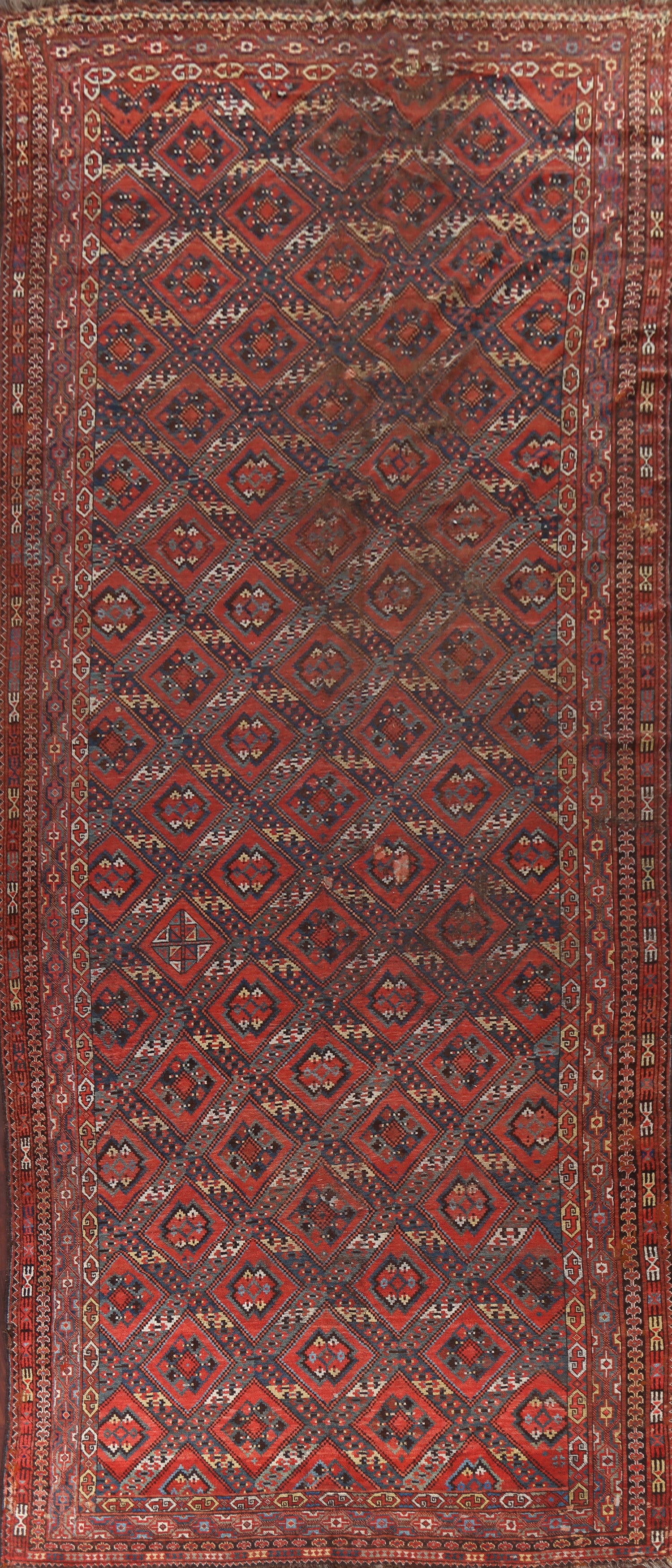 Pre-1900 Antique Vegetable Dye Turkoman Bashir Persian Rug 9x20