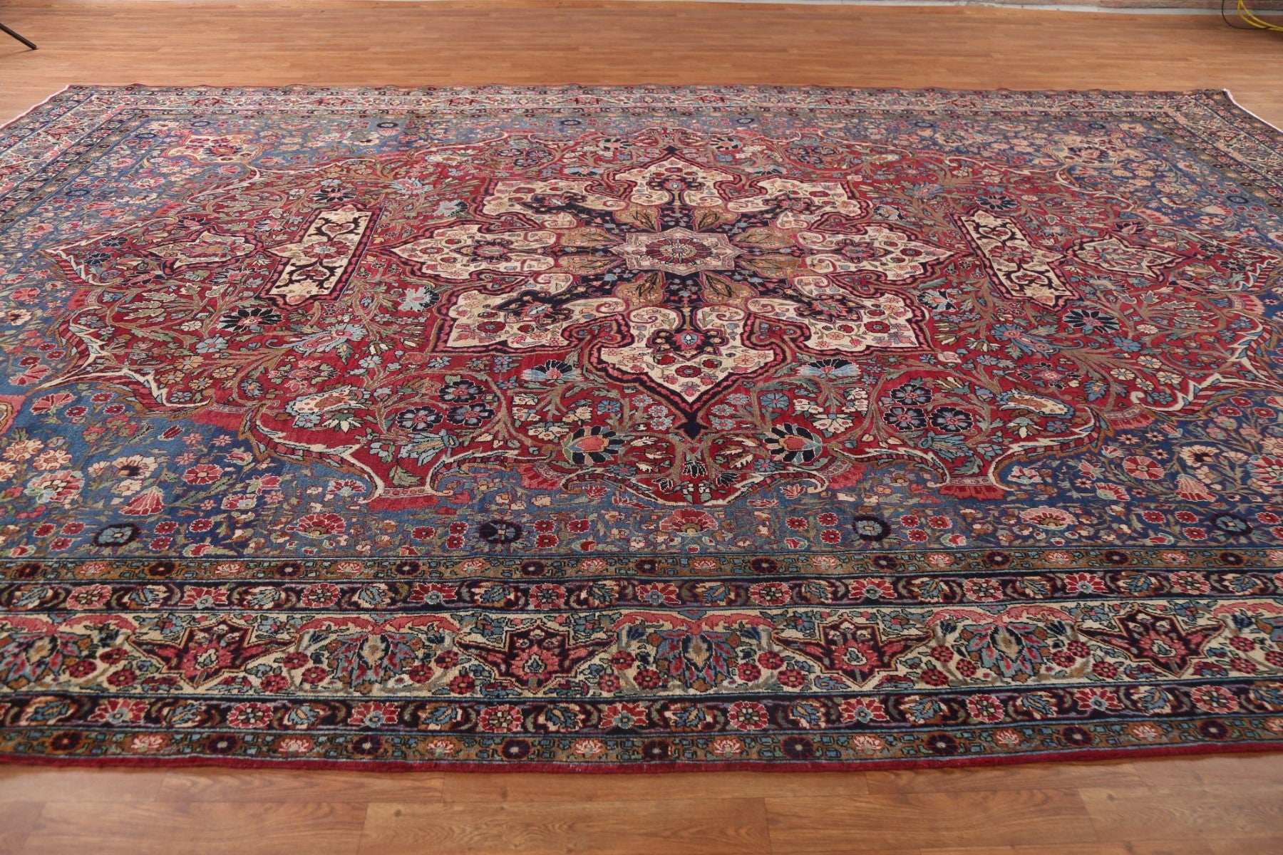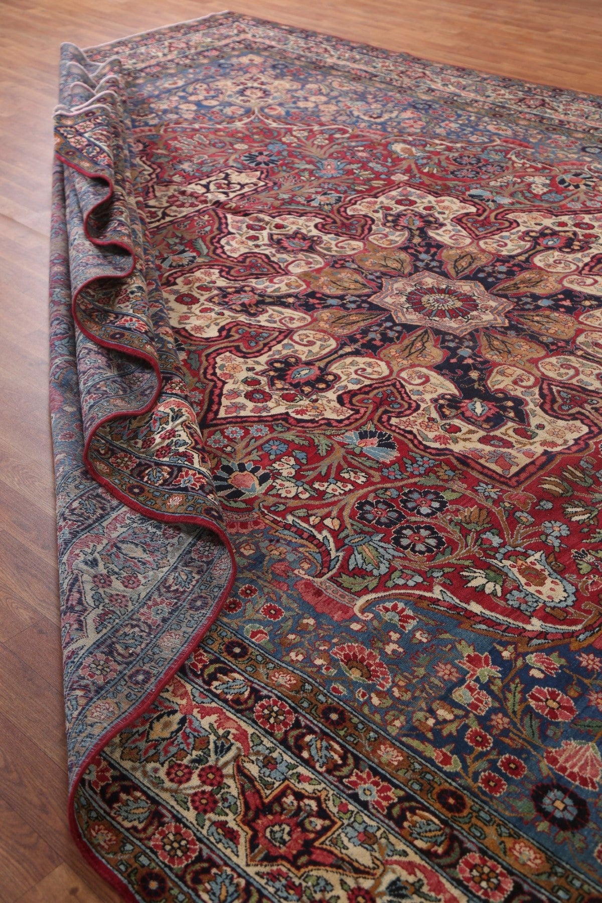 Pre-1900 Antique Vegetable Dye Yazd Large Persian Rug 11x16