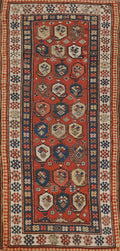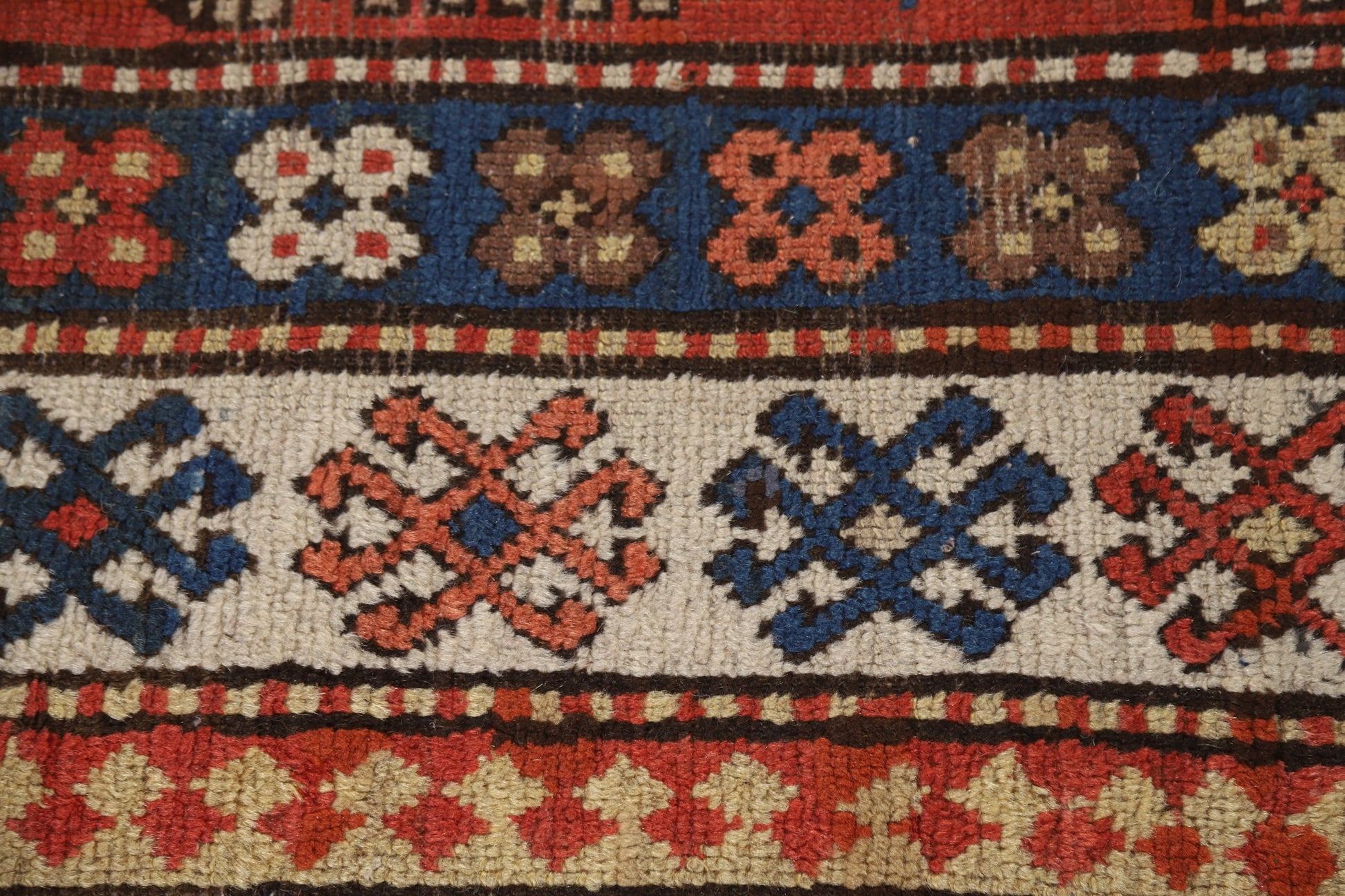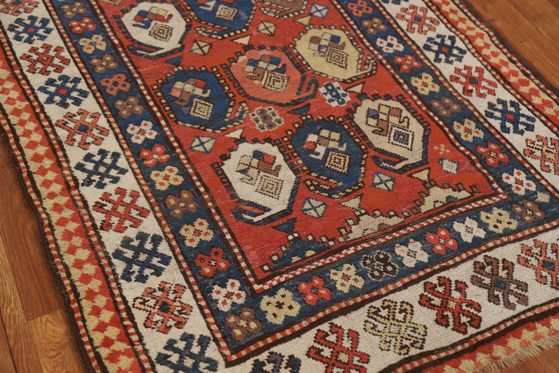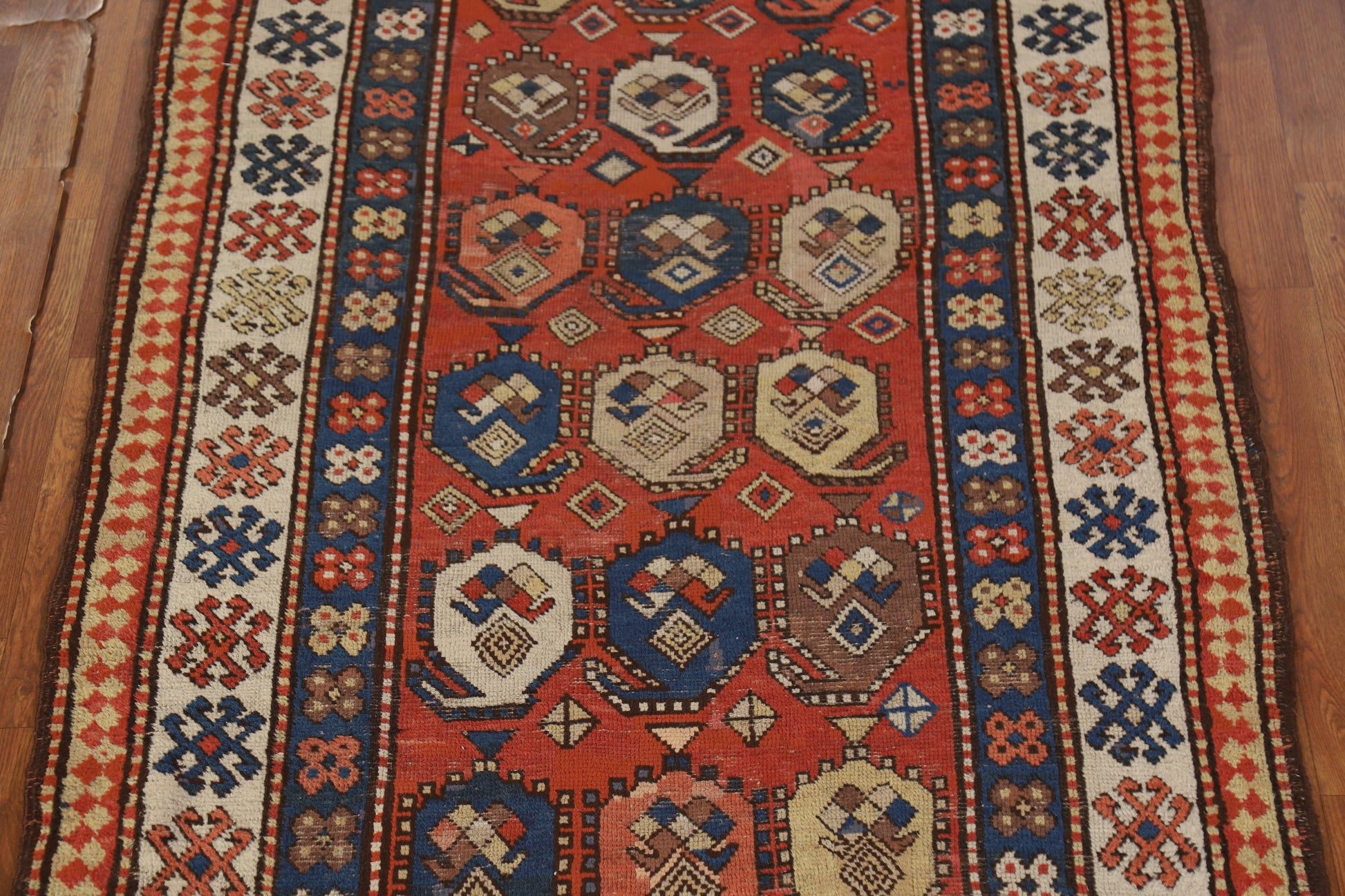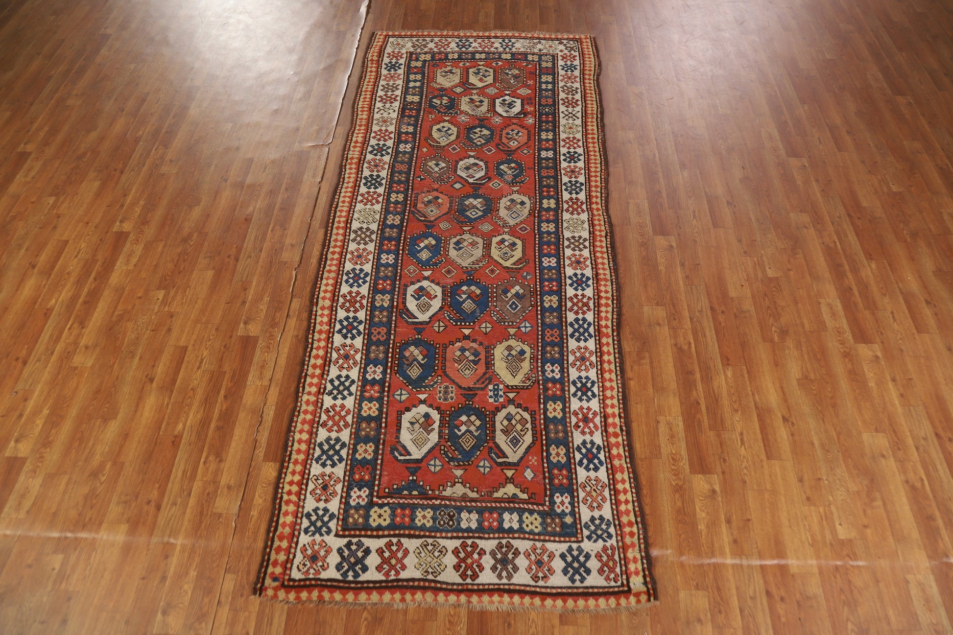 Pre-1900 Antique Wool Kazak Vegetable Dye Runner Rug 4x9