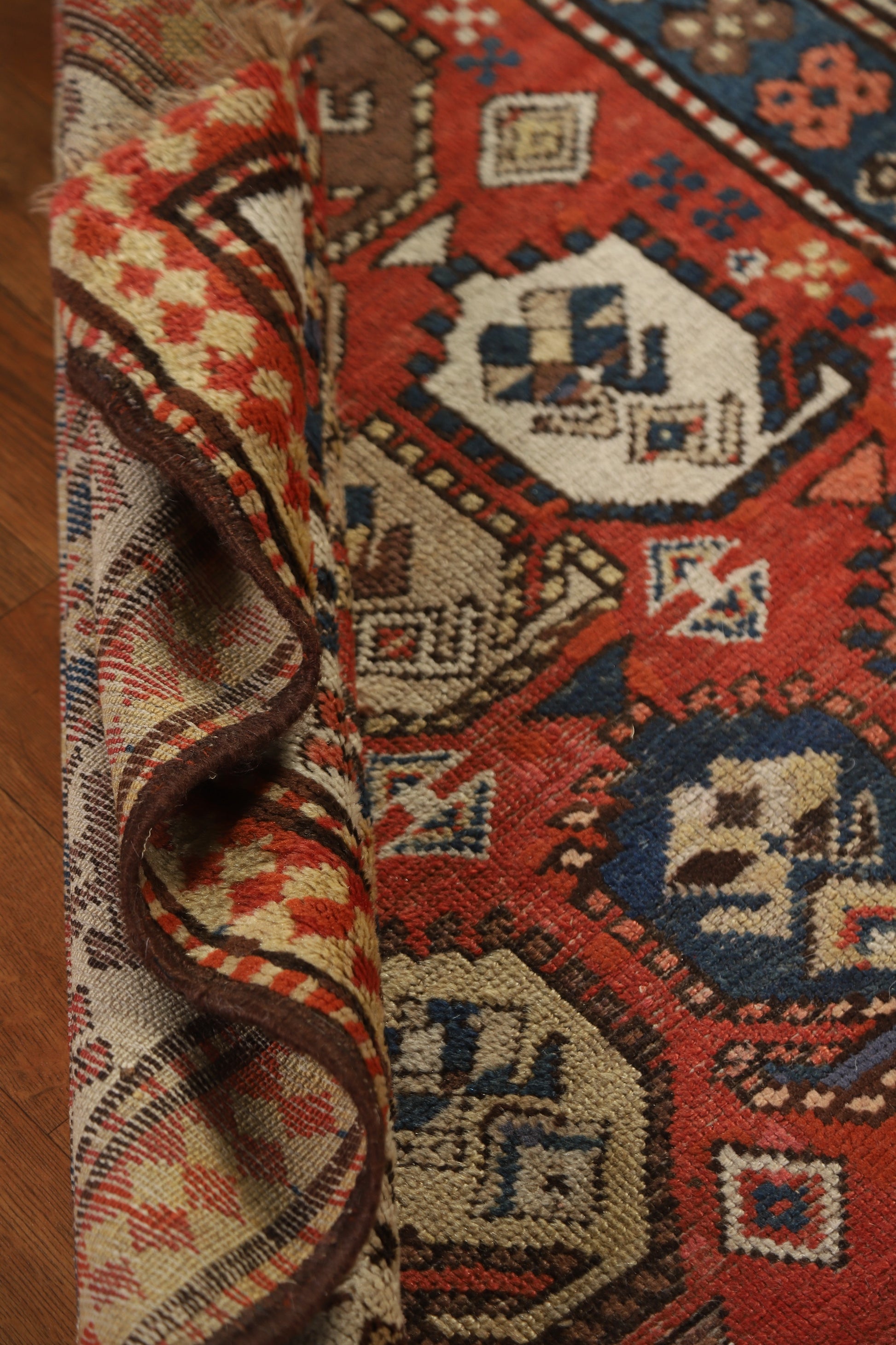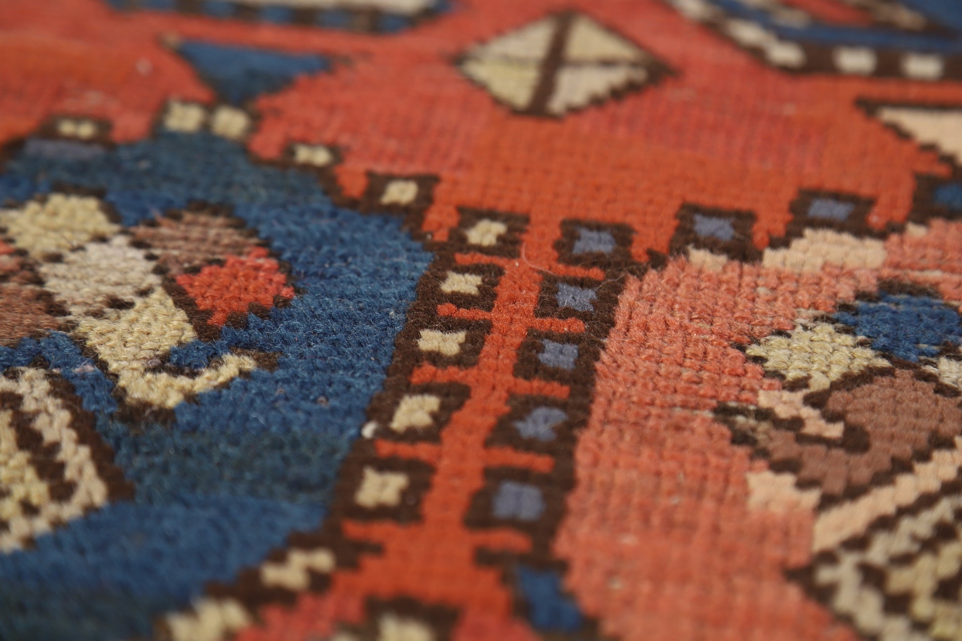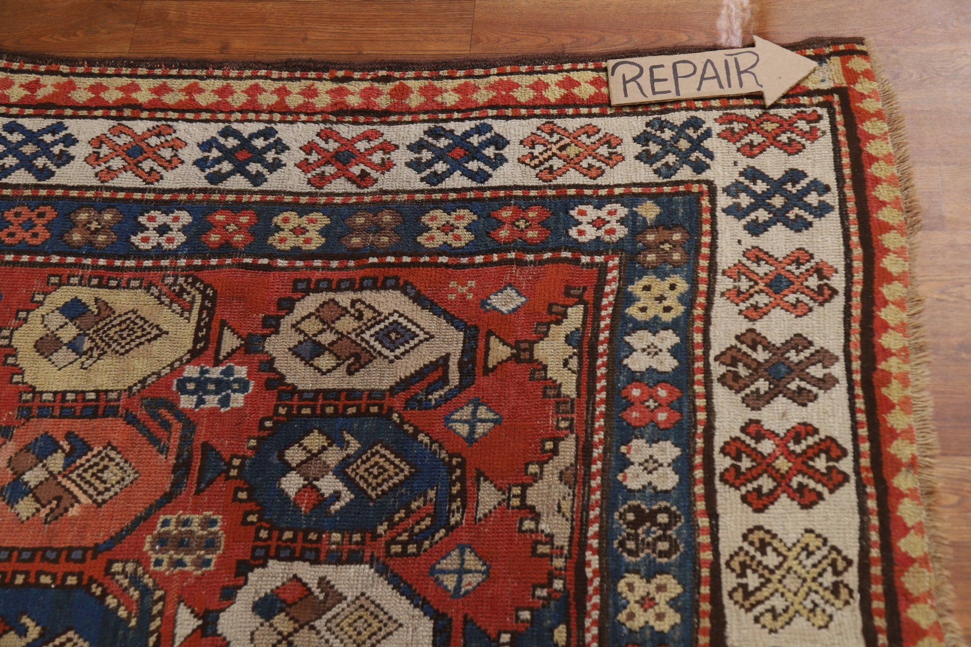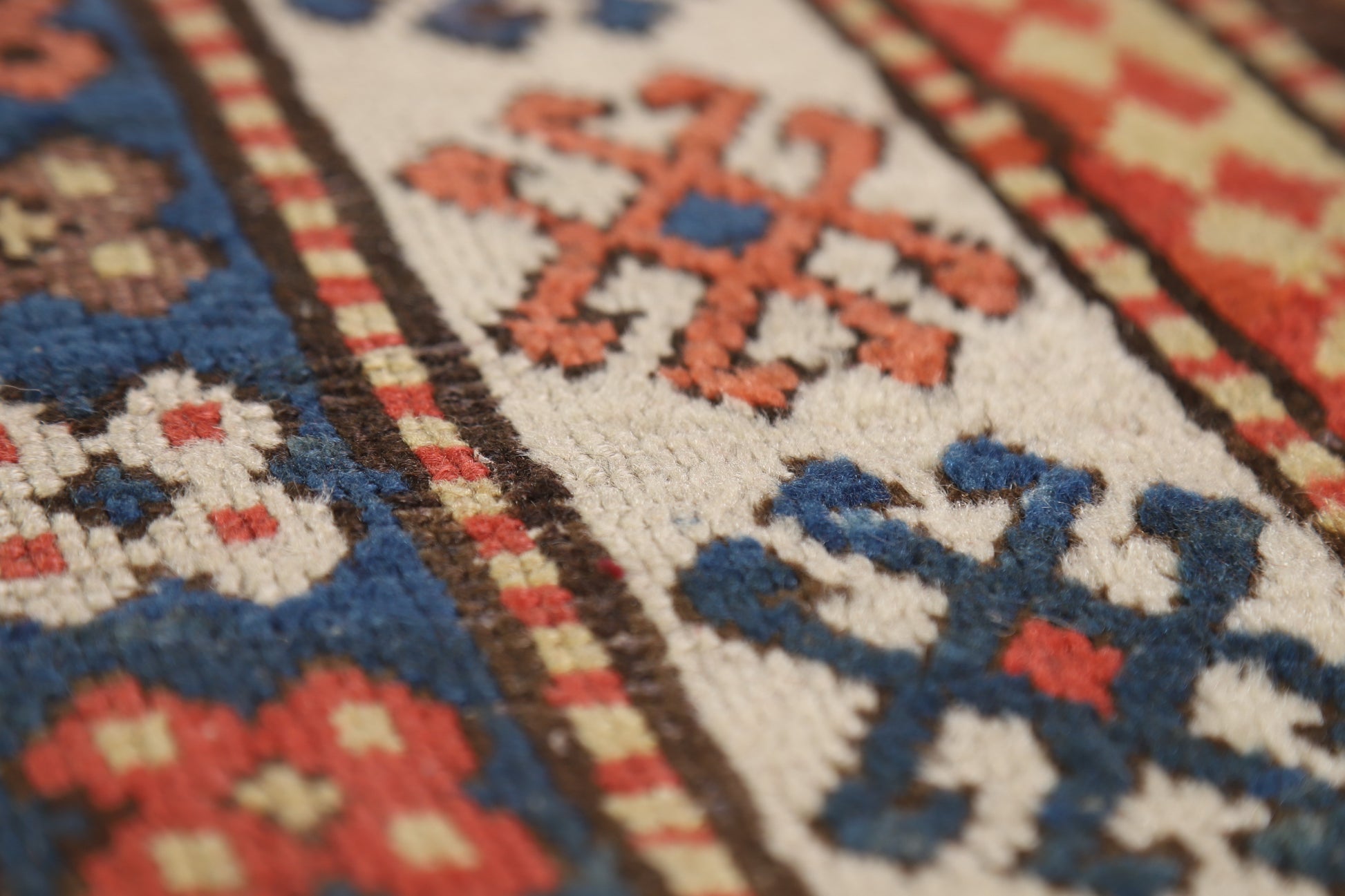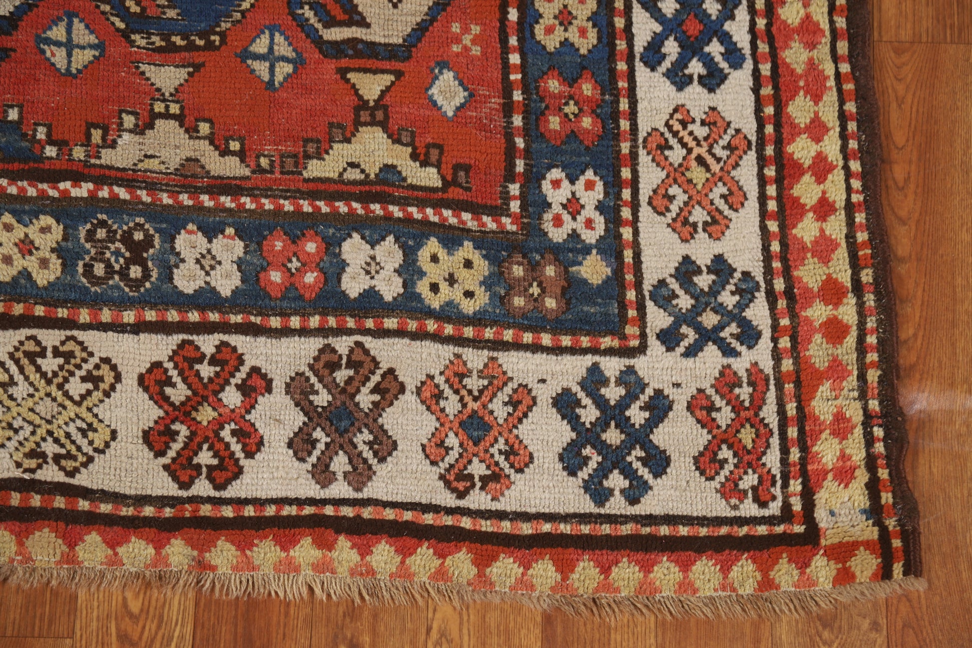 Pre-1900 Antique Wool Kazak Vegetable Dye Runner Rug 4x9
