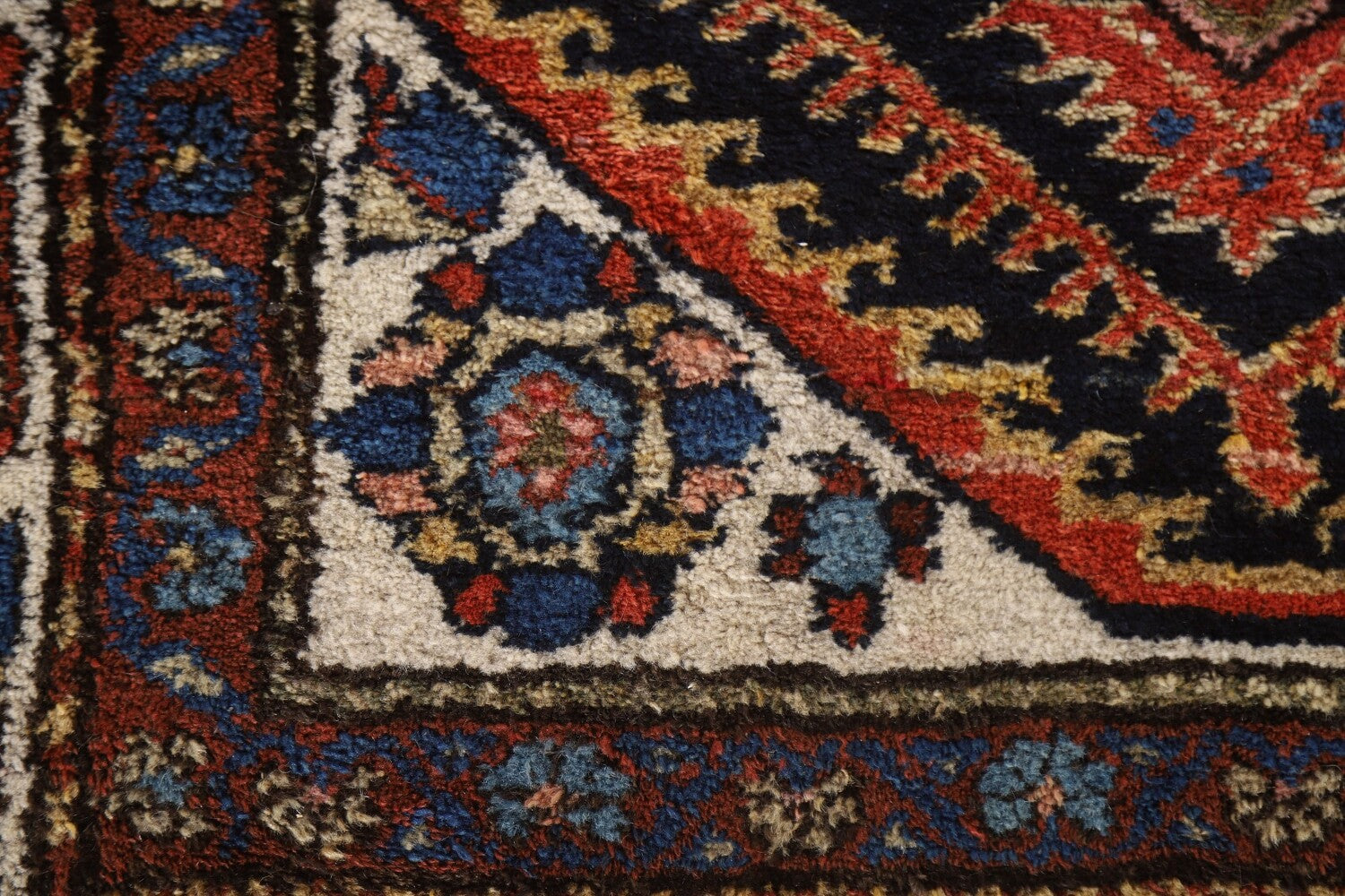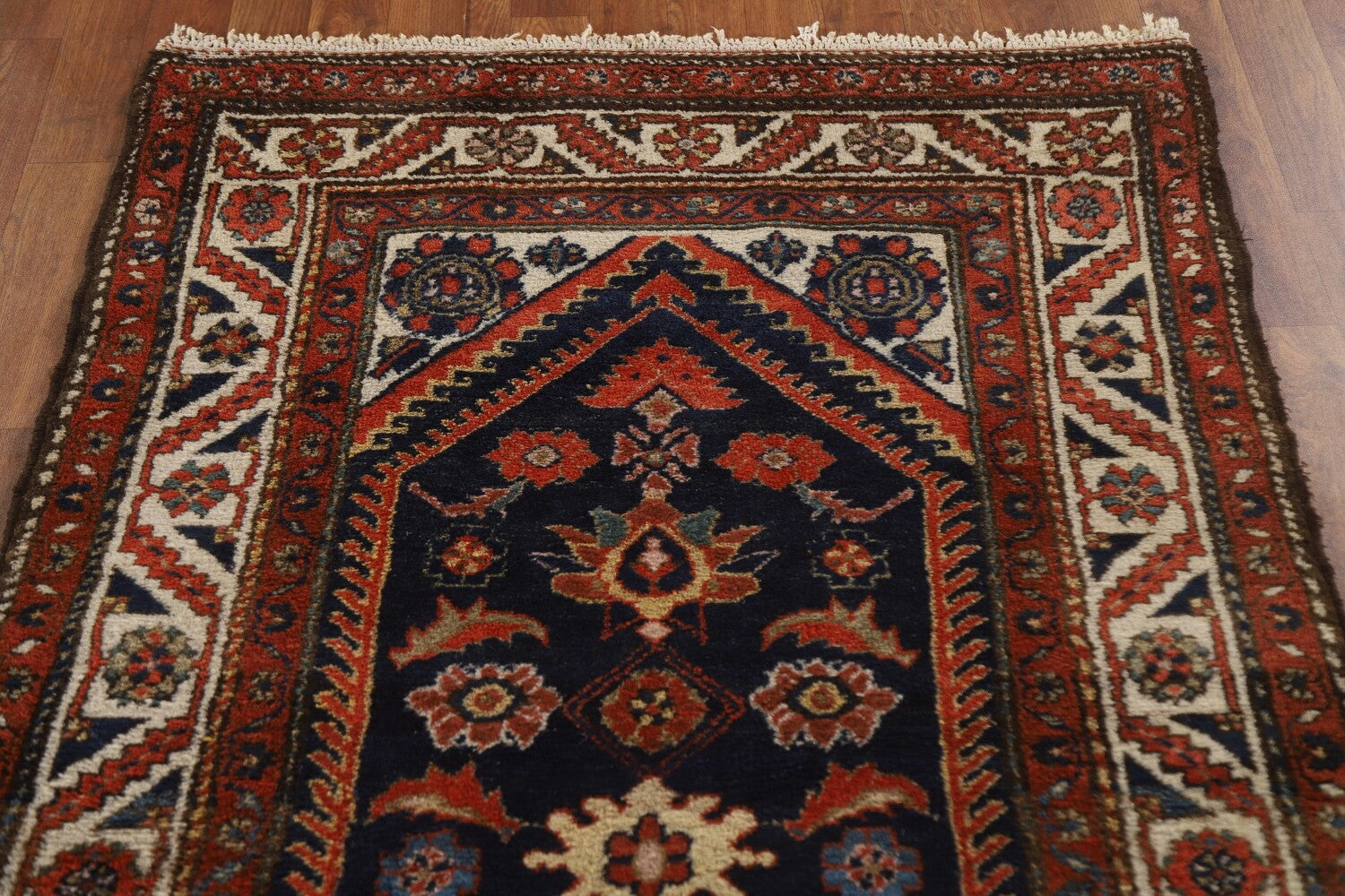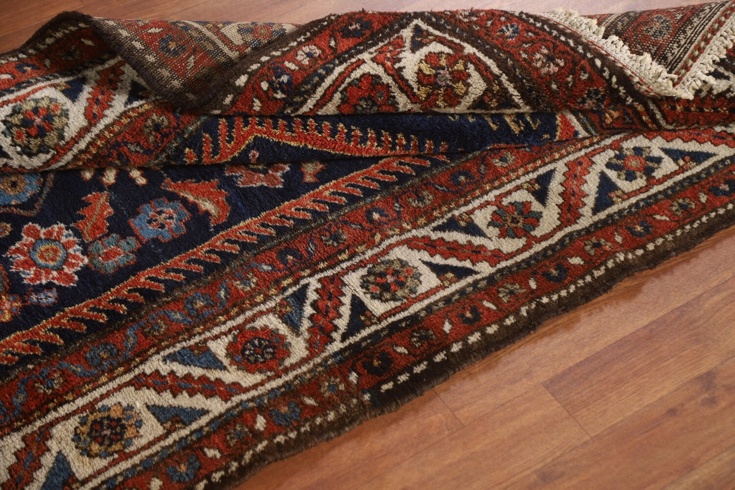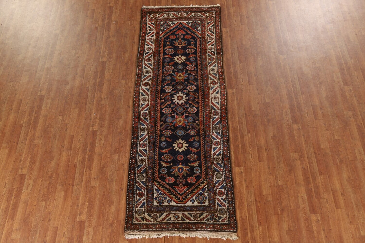 A Beautiful Genuine Persia ( Persia ) Bakhtiari rug is Hand Knotted by skillful weavers in Persia ( Persia ) with 100% Wool Material. This rug is in Very Good condition. dimensions are 10' 3'' X 3' 6'' in foot and 312 X 107 in centimeter. the primary color is Navy Blue & Blues.