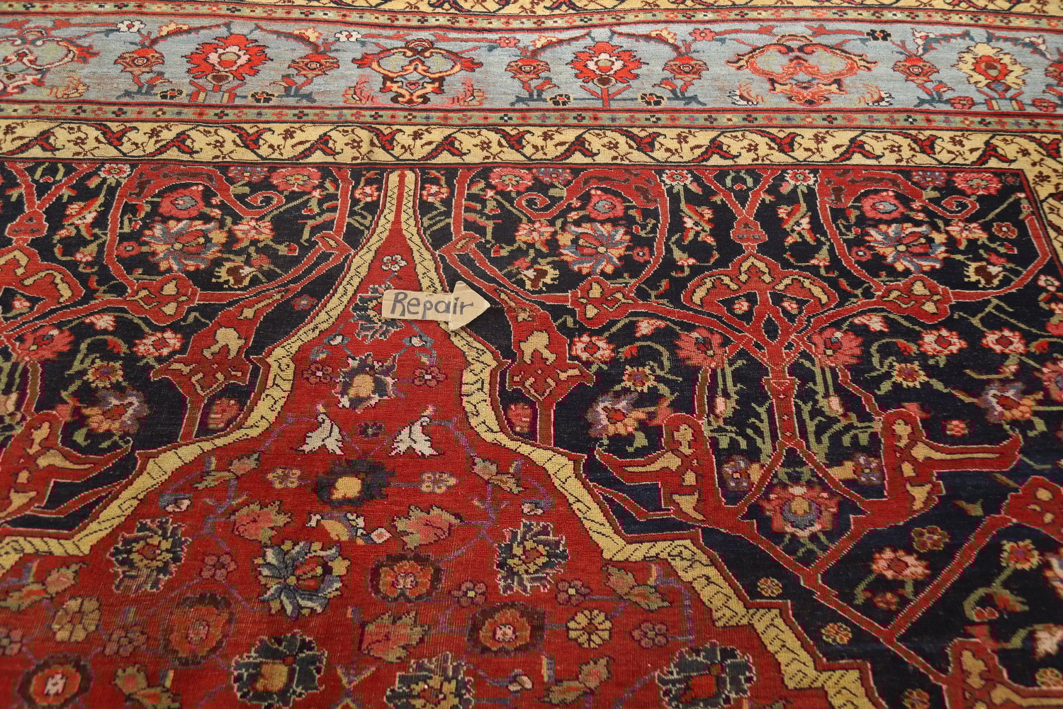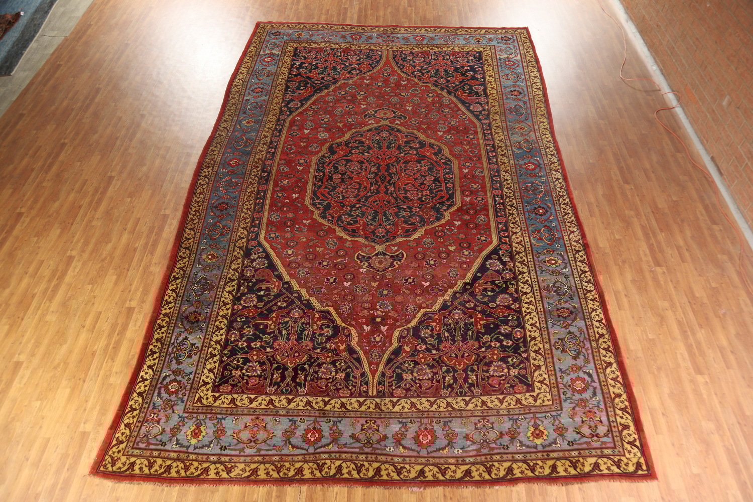 Pre-1900 Vegetable Dye Bidjar Halvaei Persian Large Rug 12x19