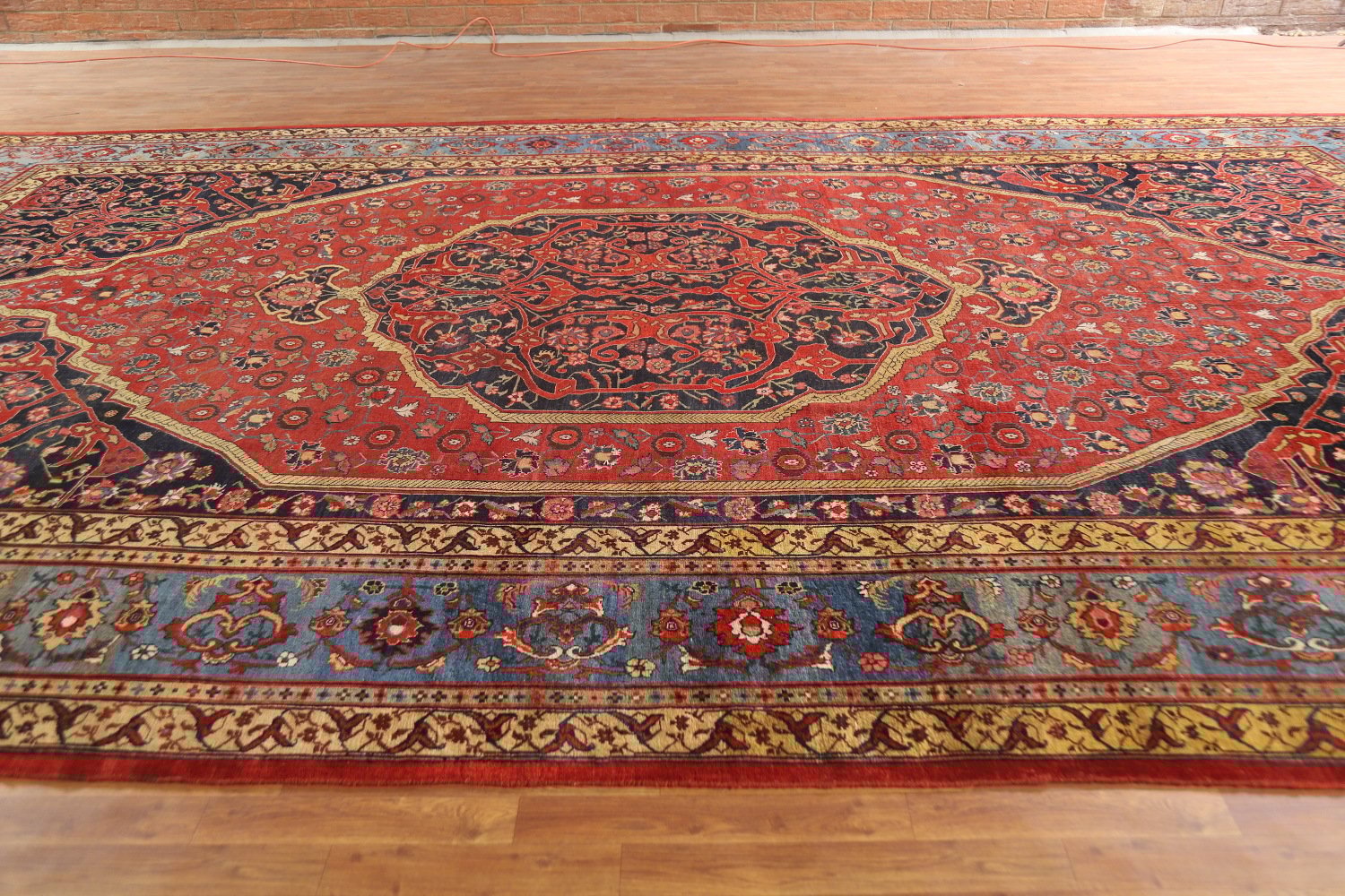A Beautiful Genuine Persia ( Persia ) Bidjar (Halvaei) rug is Hand Knotted by skillful weavers in Persia ( Persia ) with 100% Wool Material. This rug is in Very Good (Abrash-Repair) condition. dimensions are 18' 11'' X 11' 7'' in foot and 577 X 353 in centimeter. the primary color is Red.