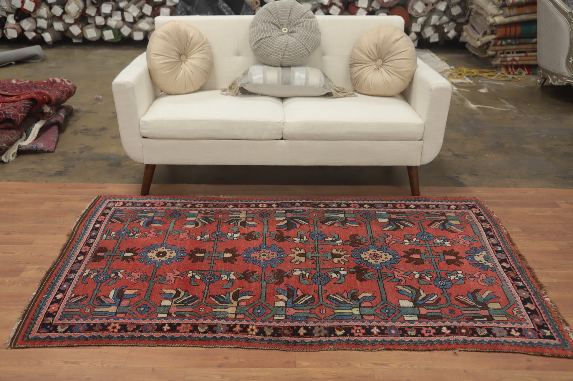 Pre-1900 Vegetable Dye Bidjar Halvaei Persian Rug 4x7