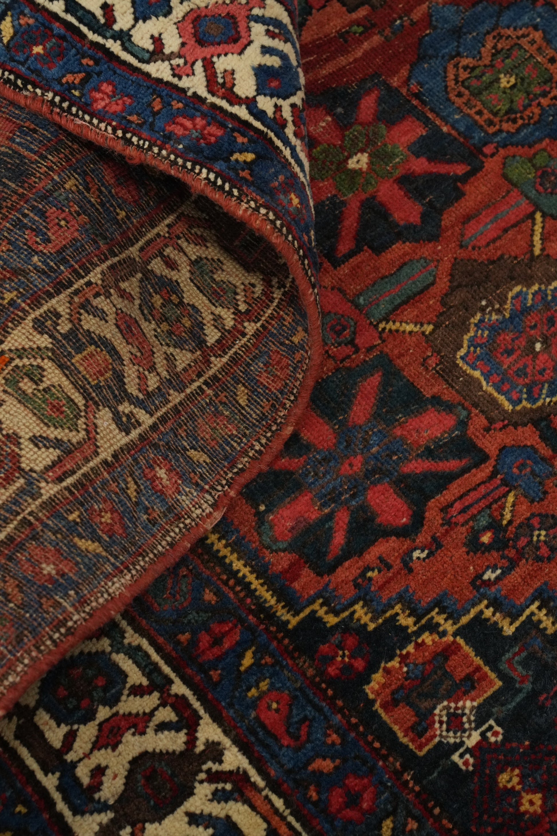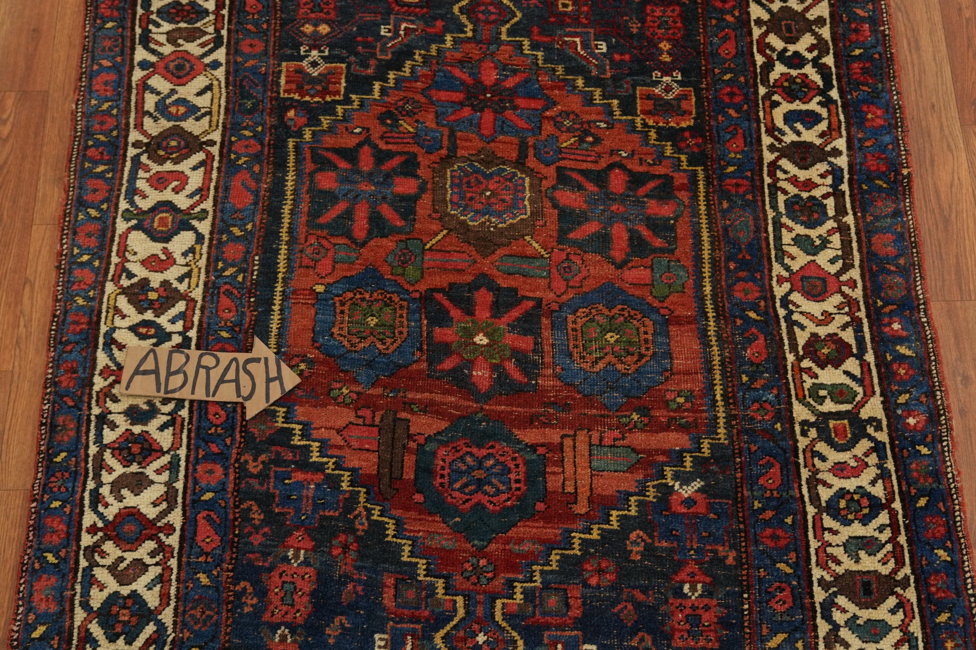 Pre-1900 Vegetable Dye Bidjar Halvaei Persian Runner Rug 4x18