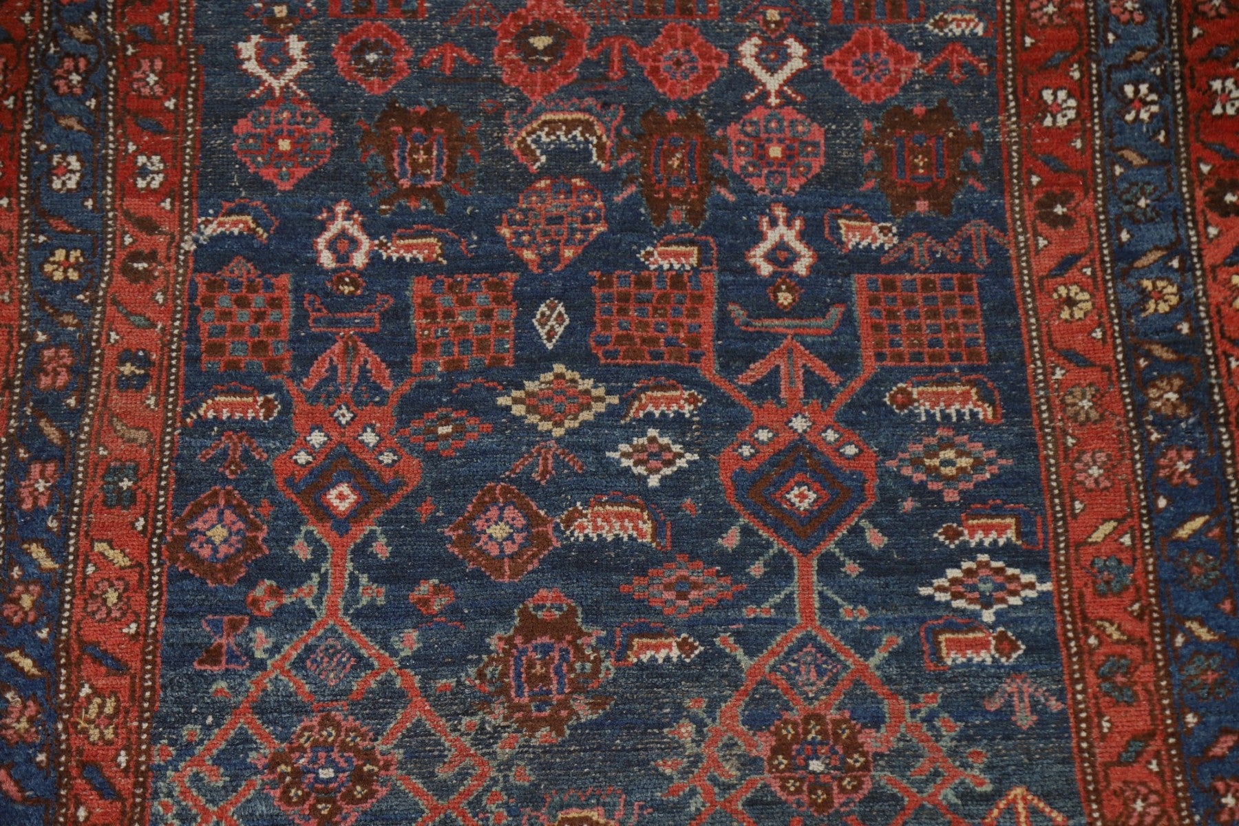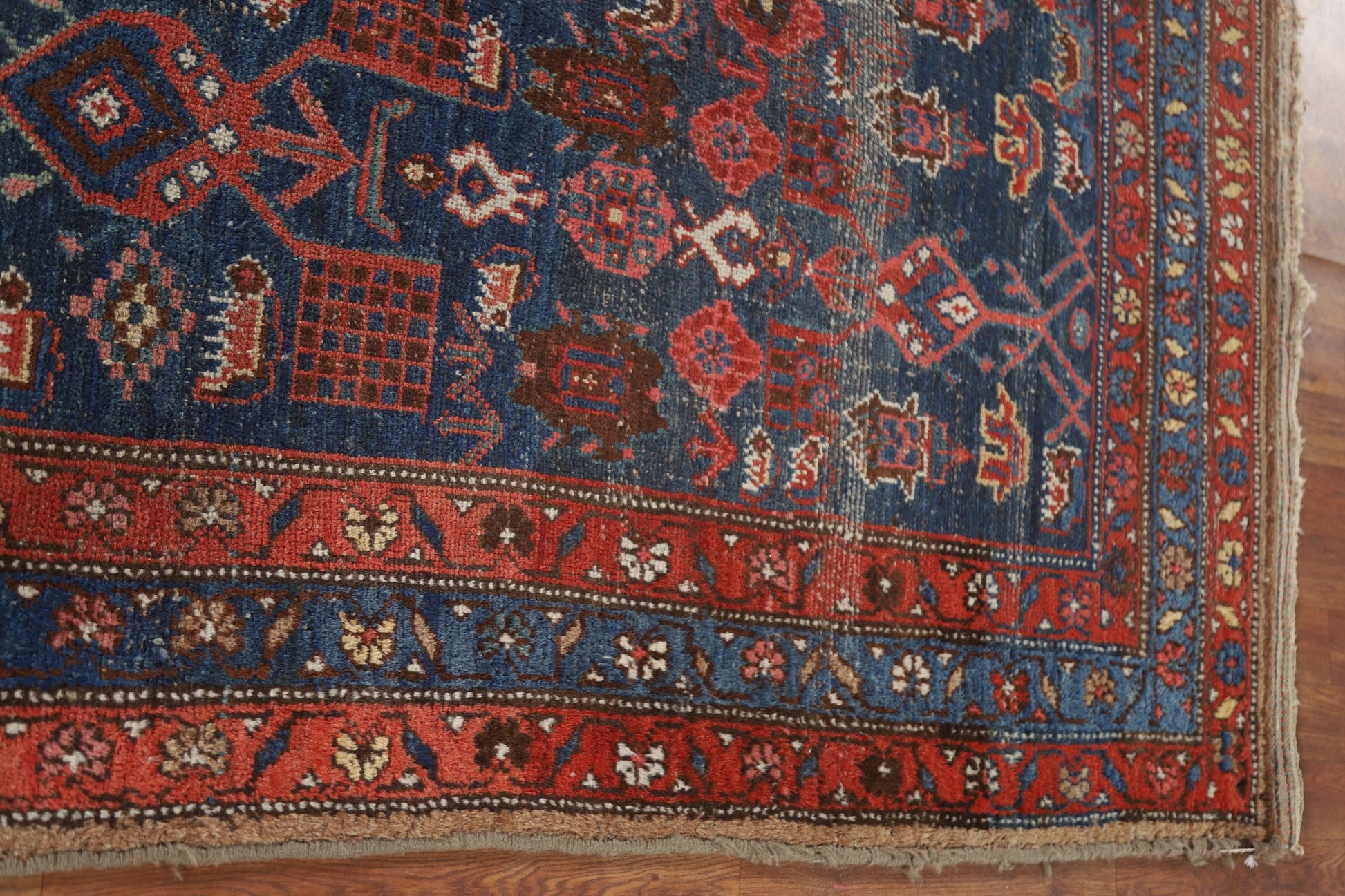 A Beautiful Genuine Persia ( Persia ) Heriz (Bakhshayesh) rug is Hand Knotted by skillful weavers in Persia ( Persia ) with 100% Wool Material. This rug is in Very Good (Evenly Low Pile) condition. dimensions are 7' 9'' X 4' 6'' in foot and 236 X 137 in centimeter. the primary color is Navy Blue & Blues.