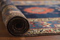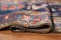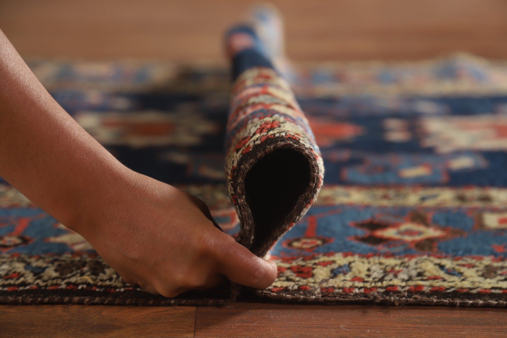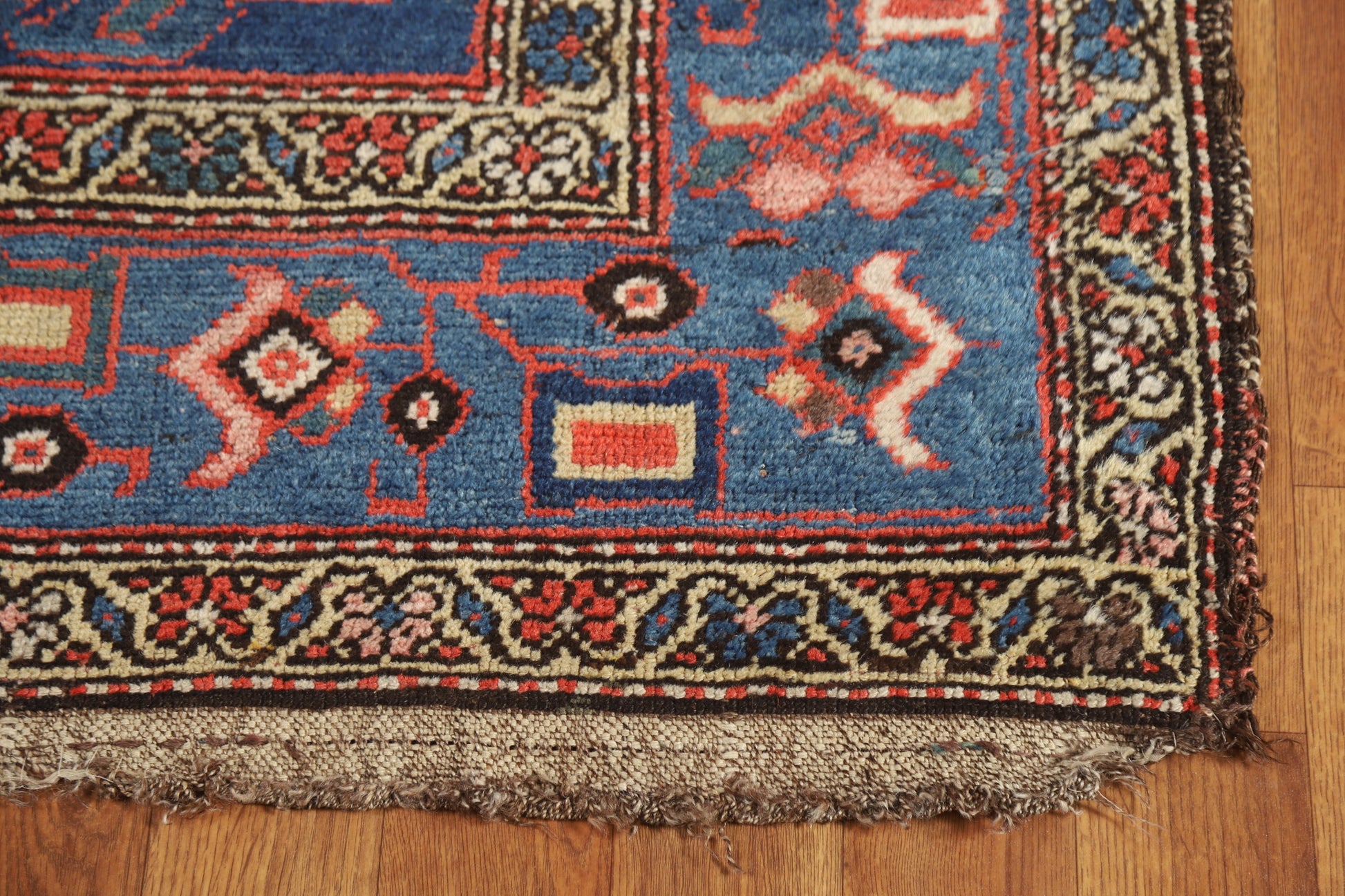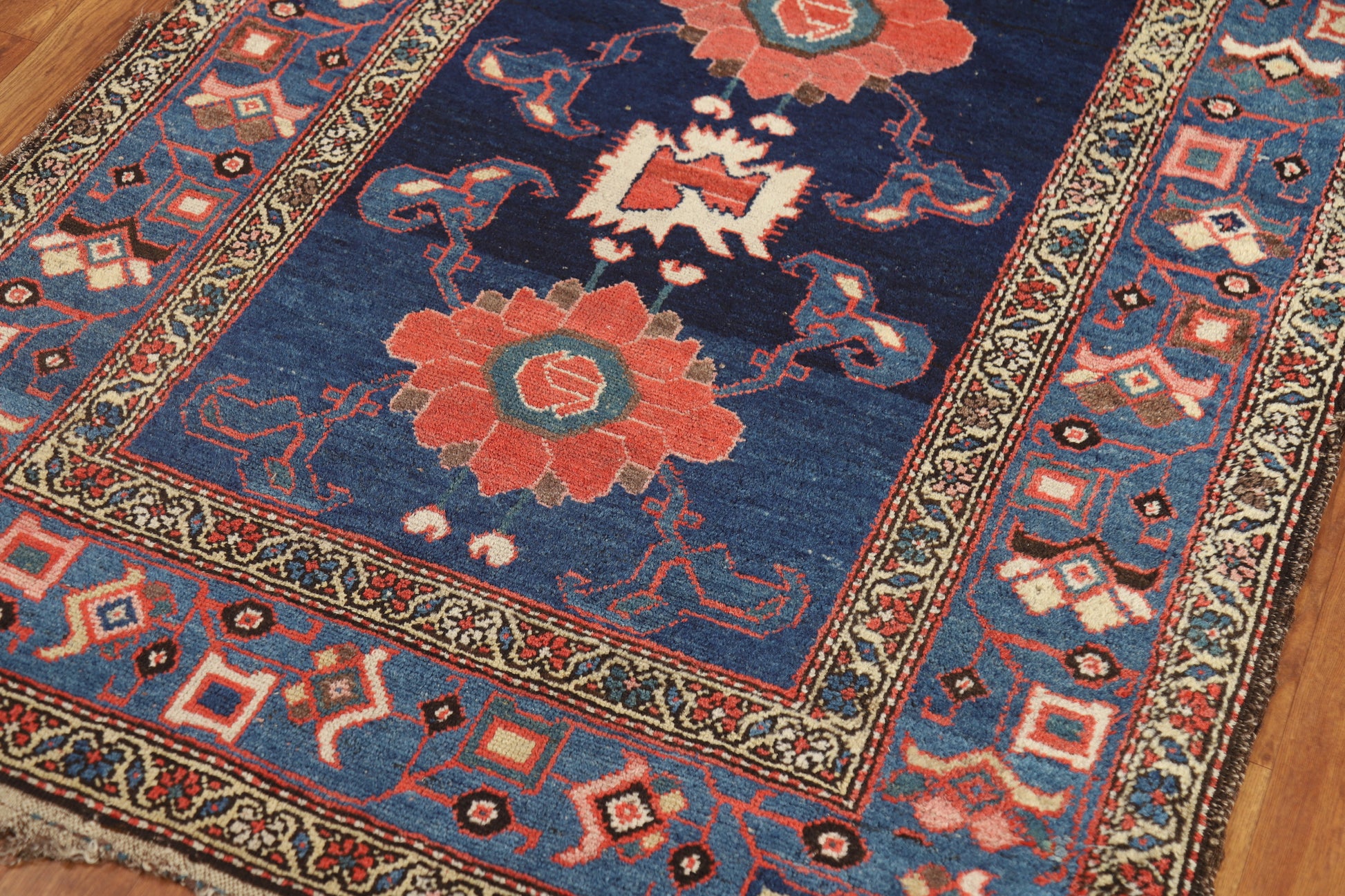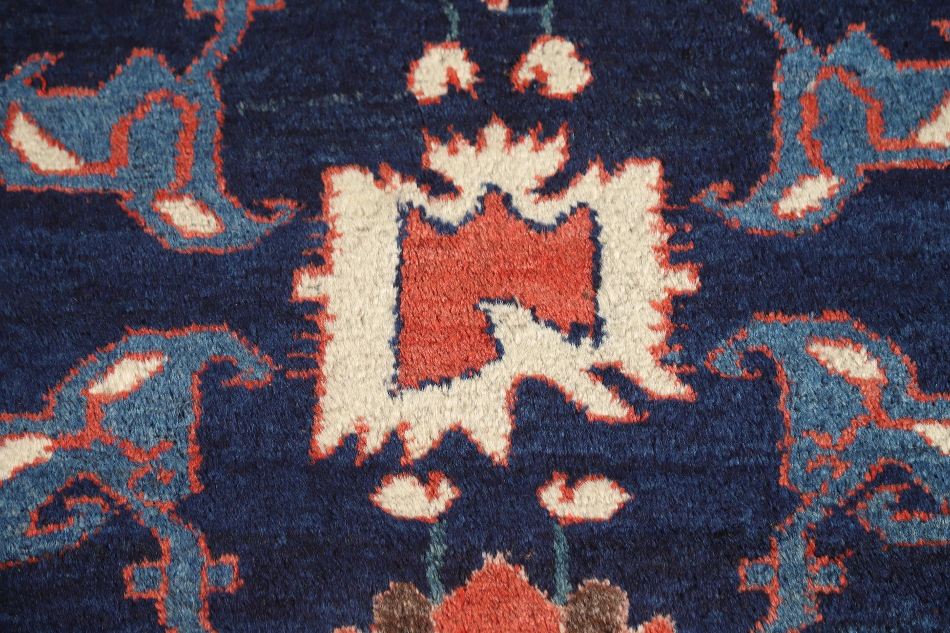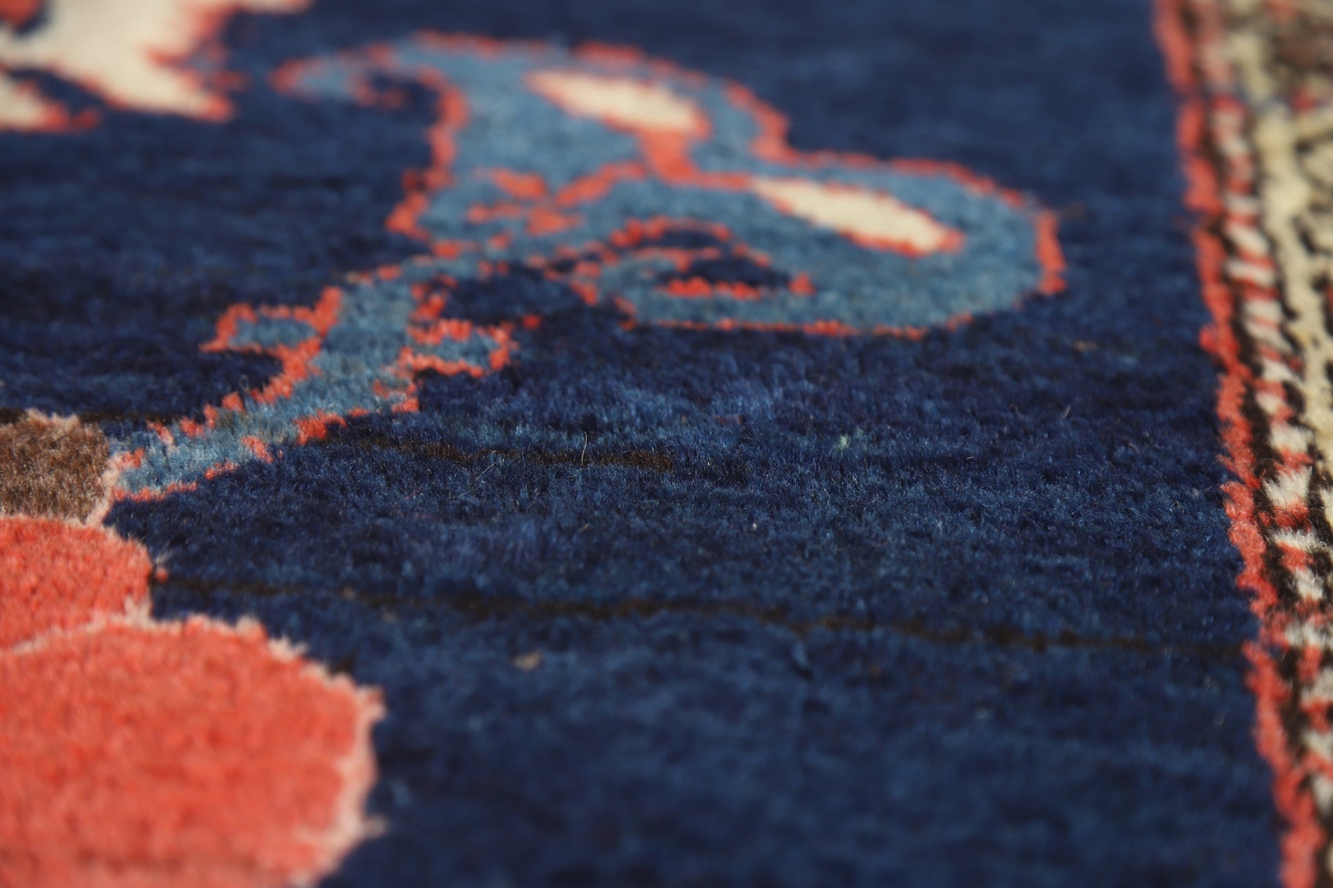 A Beautiful Genuine Persia ( Persia ) Heriz (Bakhshayesh) rug is Hand Knotted by skillful weavers in Persia ( Persia ) with 100% Wool Material. This rug is in Very Good ( Low Pile ) condition. dimensions are 14' 9'' X 3' 9'' in foot and 450 X 114 in centimeter. the primary color is Navy Blue & Blues.