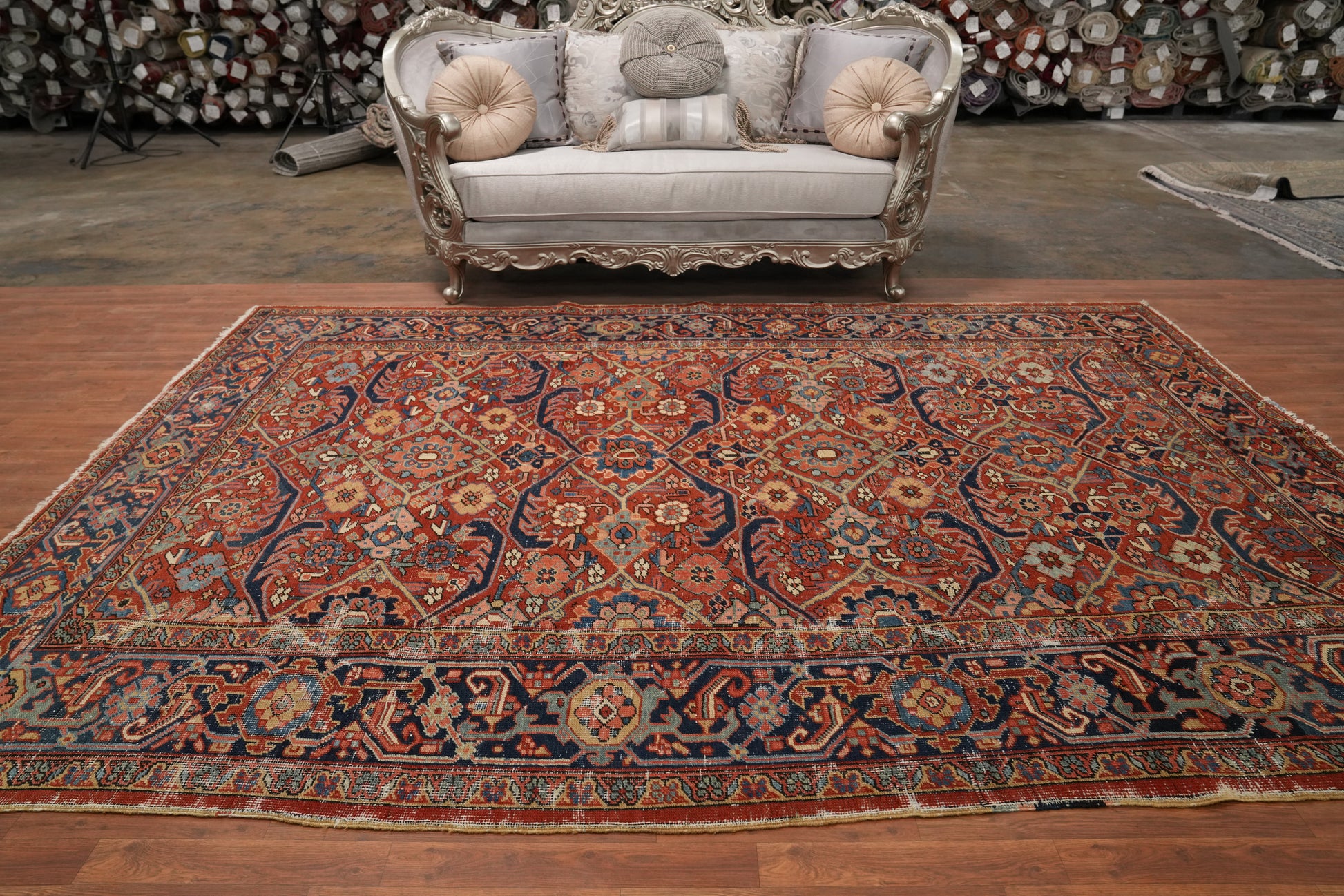 Pre-1900 Vegetable Dye Heriz Serapi Persian Area Rug 8x11