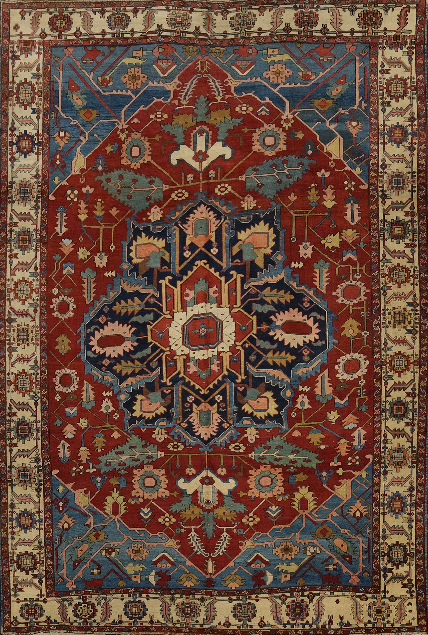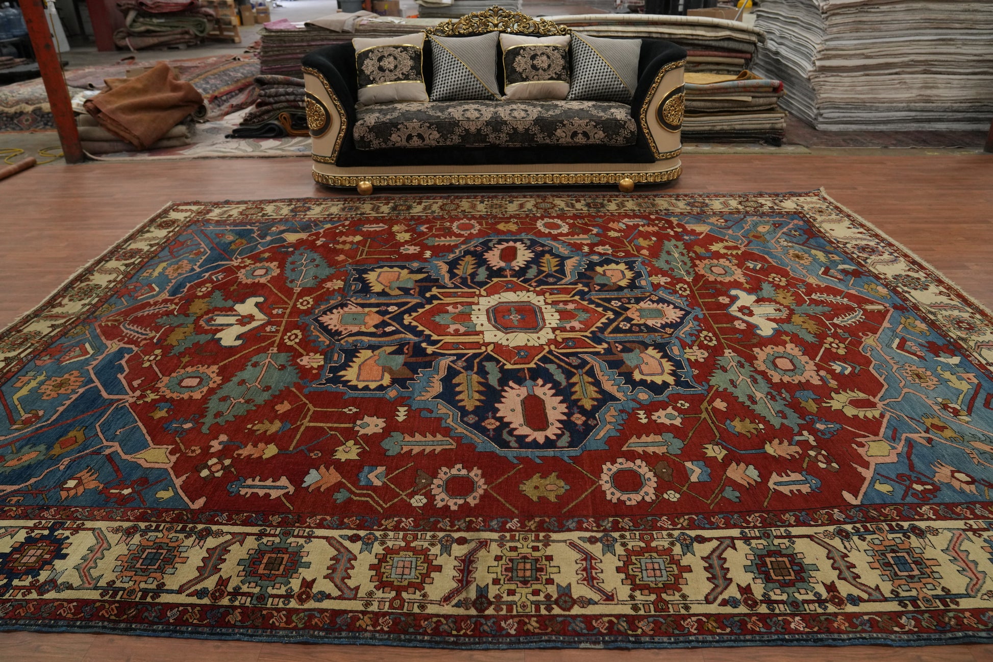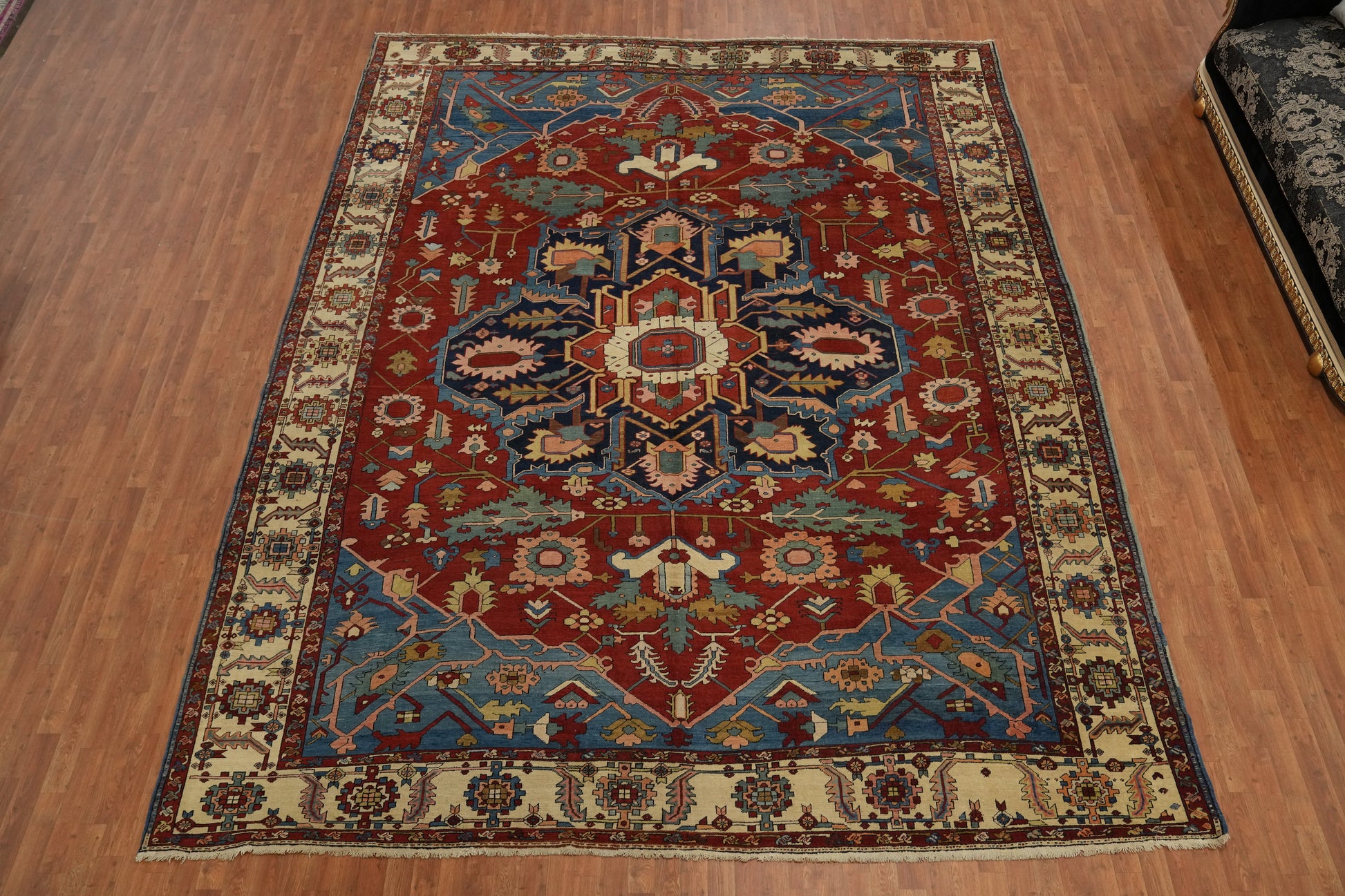 Pre-1900 Vegetable Dye Heriz Serapi Persian Large Rug 11x14