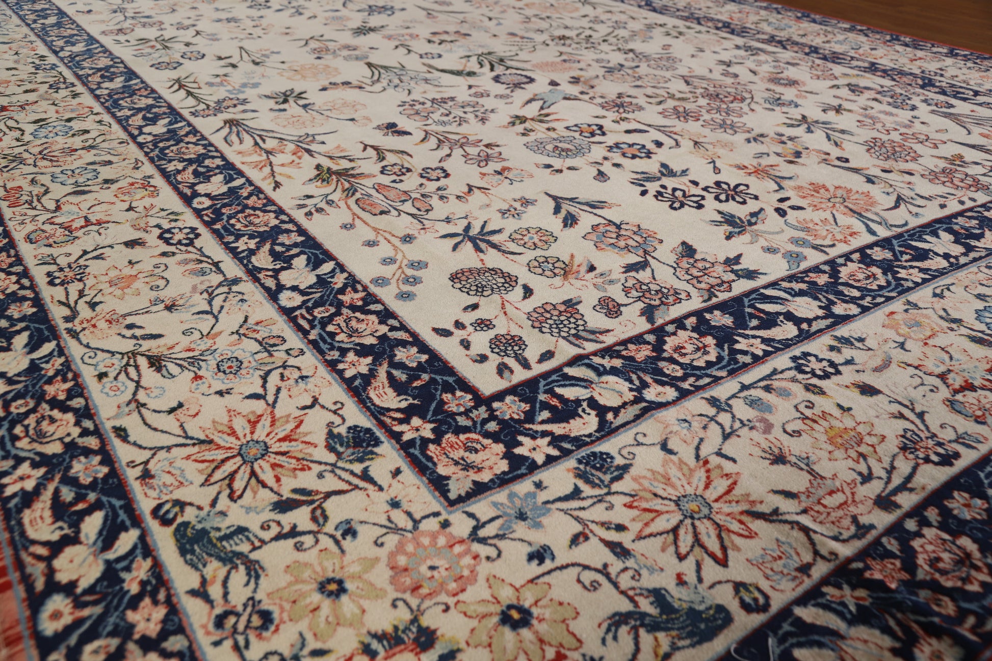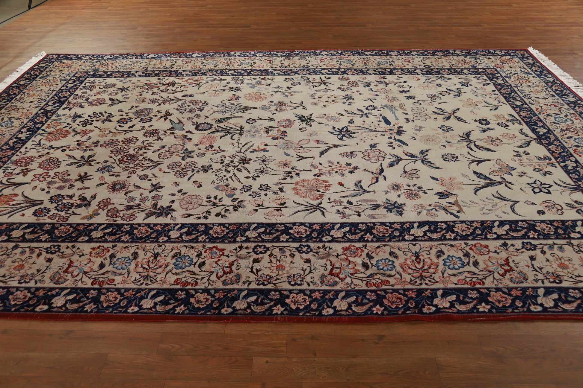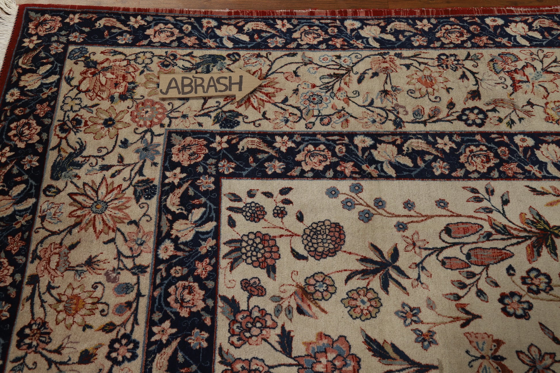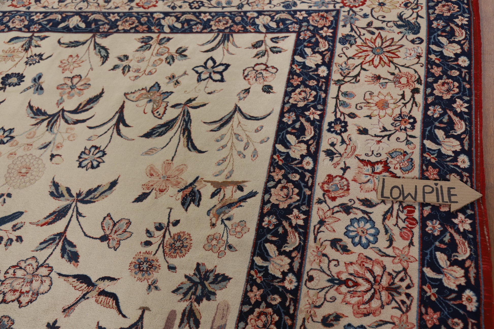 A Beautiful Genuine Persia ( Persia ) Isfahan rug is Hand Knotted by skillful weavers in Persia ( Persia ) with 100% Wool Material. This rug is in Very Good (Low Pile-Abrash) condition. dimensions are 12' 0'' X 8' 3'' in foot and 366 X 251 in centimeter. the primary color is Beige & Ivories.
