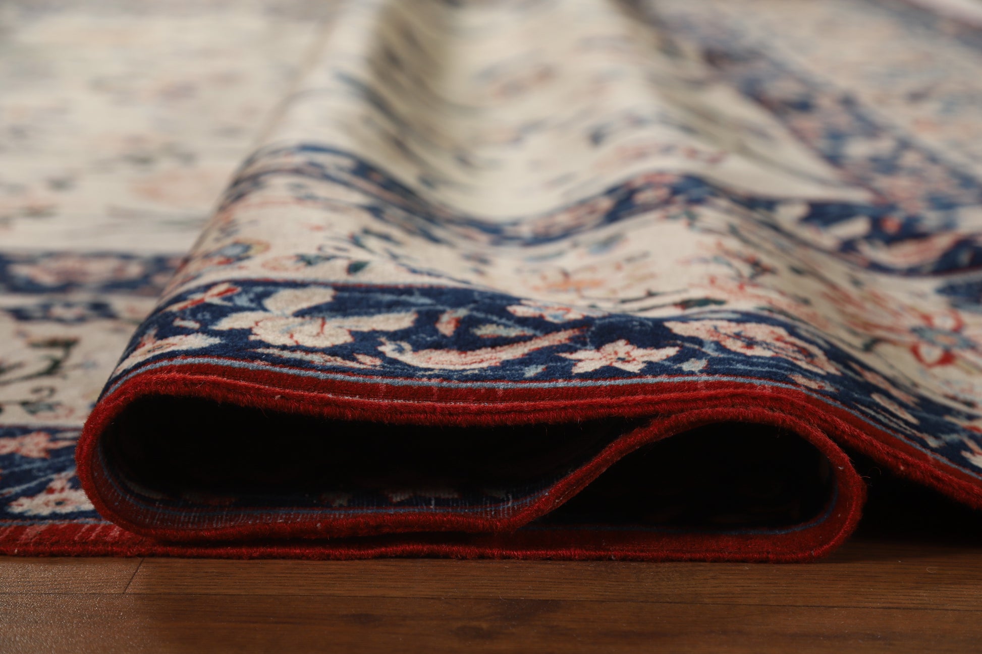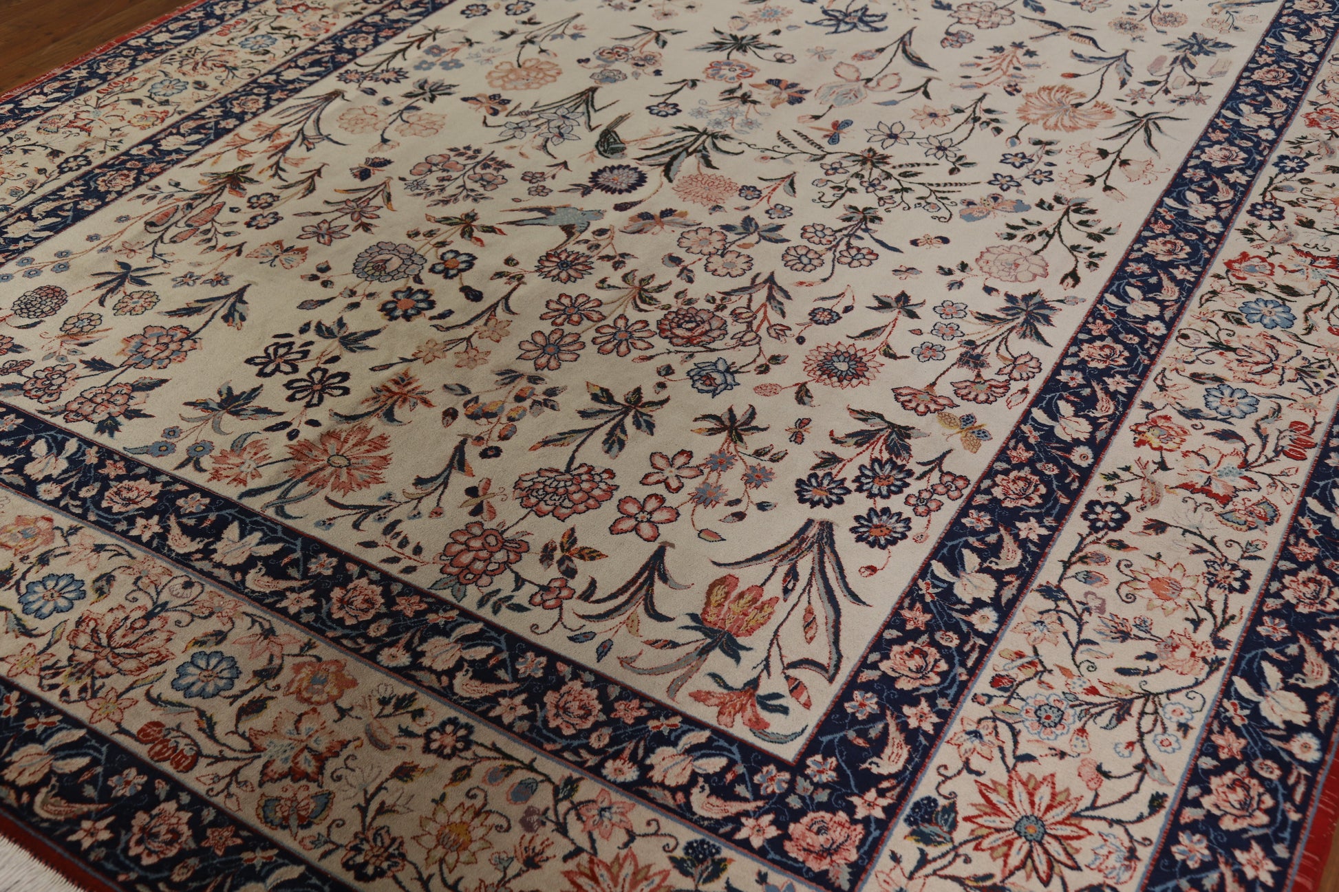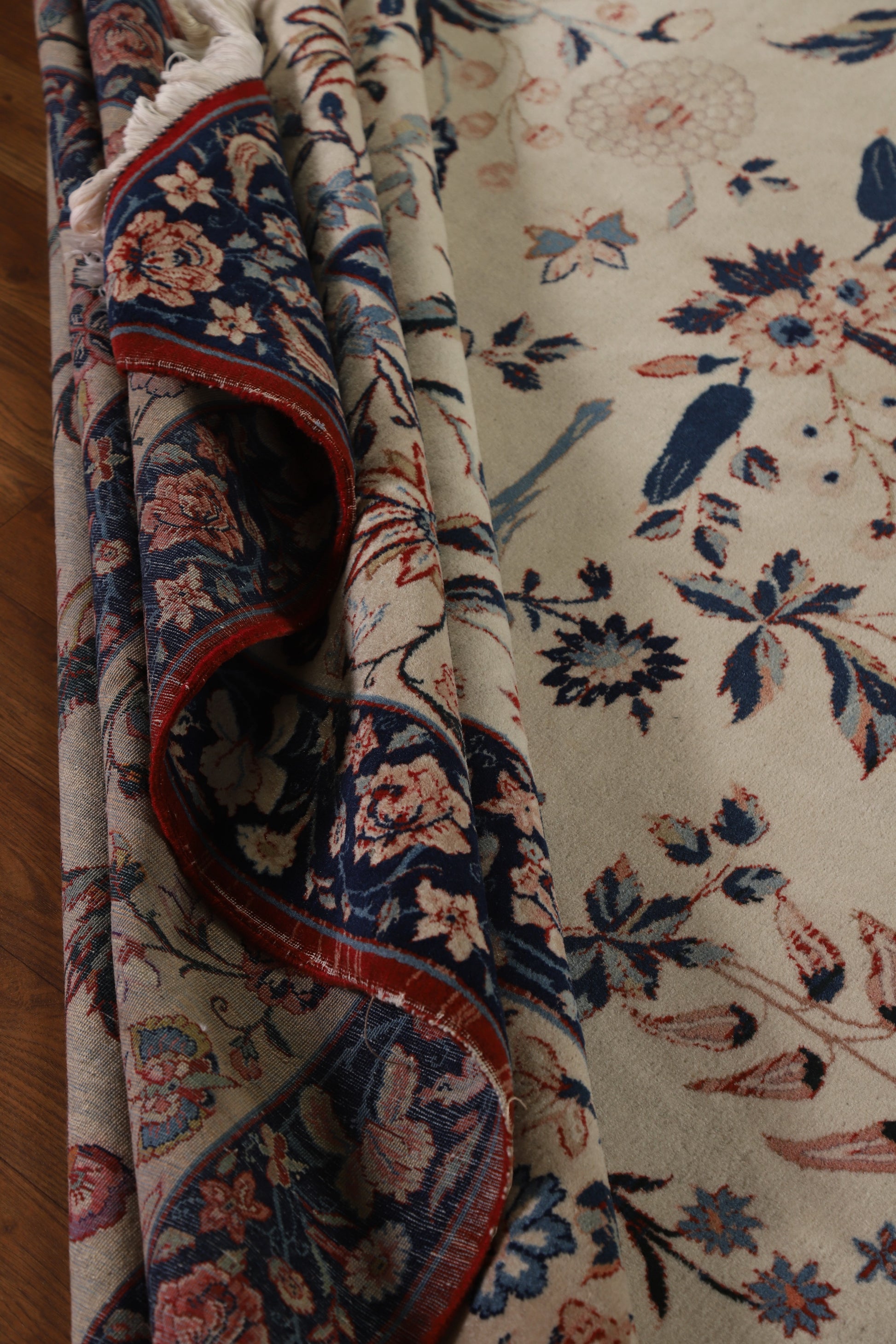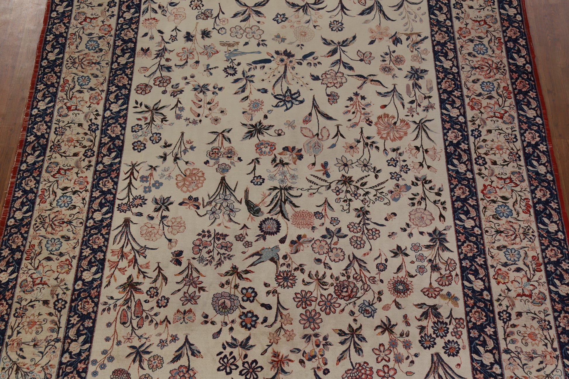 A Beautiful Genuine Persia ( Persia ) Isfahan rug is Hand Knotted by skillful weavers in Persia ( Persia ) with 100% Wool Material. This rug is in Very Good (Low Pile-Abrash) condition. dimensions are 12' 0'' X 8' 3'' in foot and 366 X 251 in centimeter. the primary color is Beige & Ivories.