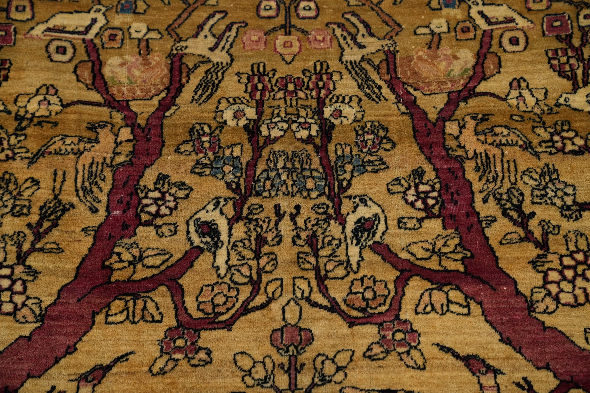 A Beautiful Genuine Persia ( Persia ) Kerman (Ravar) rug is Hand Knotted by skillful weavers in Persia ( Persia ) with 100% Wool Material. This rug is in Very Good (Stains) condition. dimensions are 6' 6'' X 4' 4'' in foot and 198 X 132 in centimeter. the primary color is Yellow & Gold.