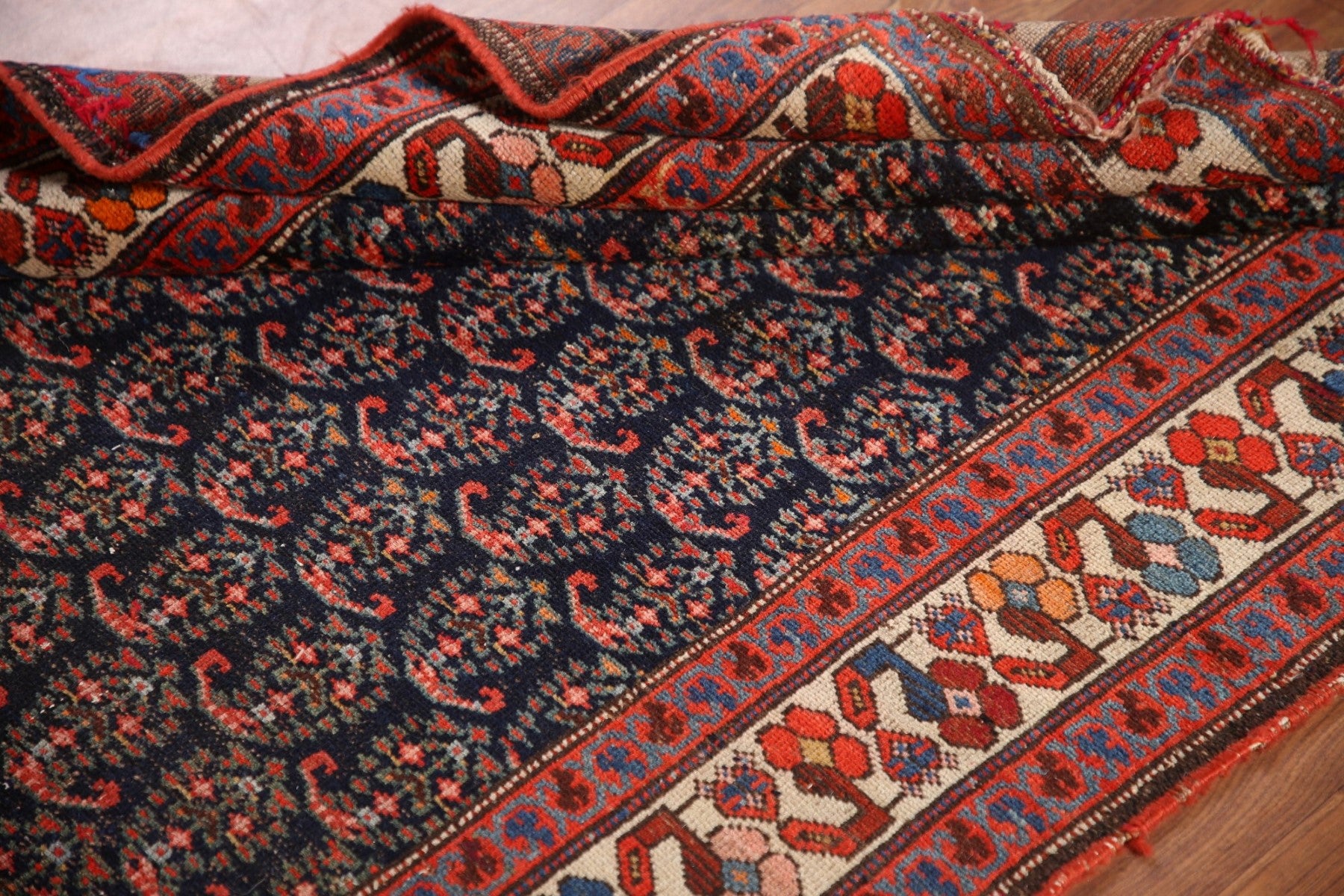 A Beautiful Genuine Persia ( Persia ) Malayer (100% Vegetable Dye) rug is Hand Knotted by skillful weavers in Persia ( Persia ) with 100% Wool Material. This rug is in Very Good (Evenly Low Pile) condition. dimensions are 16' 1'' X 3' 6'' in foot and 490 X 107 in centimeter. the primary color is Navy Blue & Blues.
