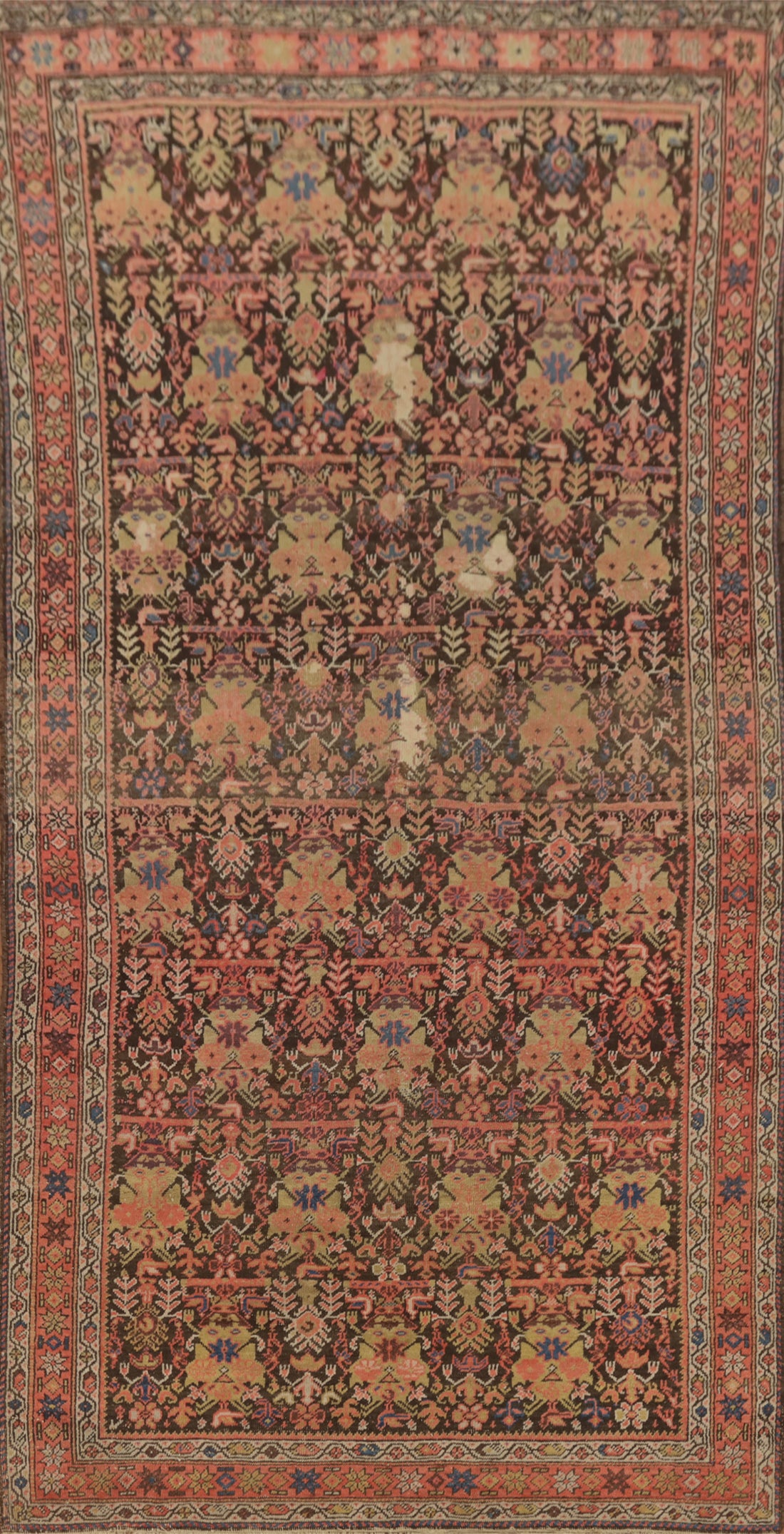 Pre-1900 Vegetable Dye Malayer Persian Runner Rug 4x9