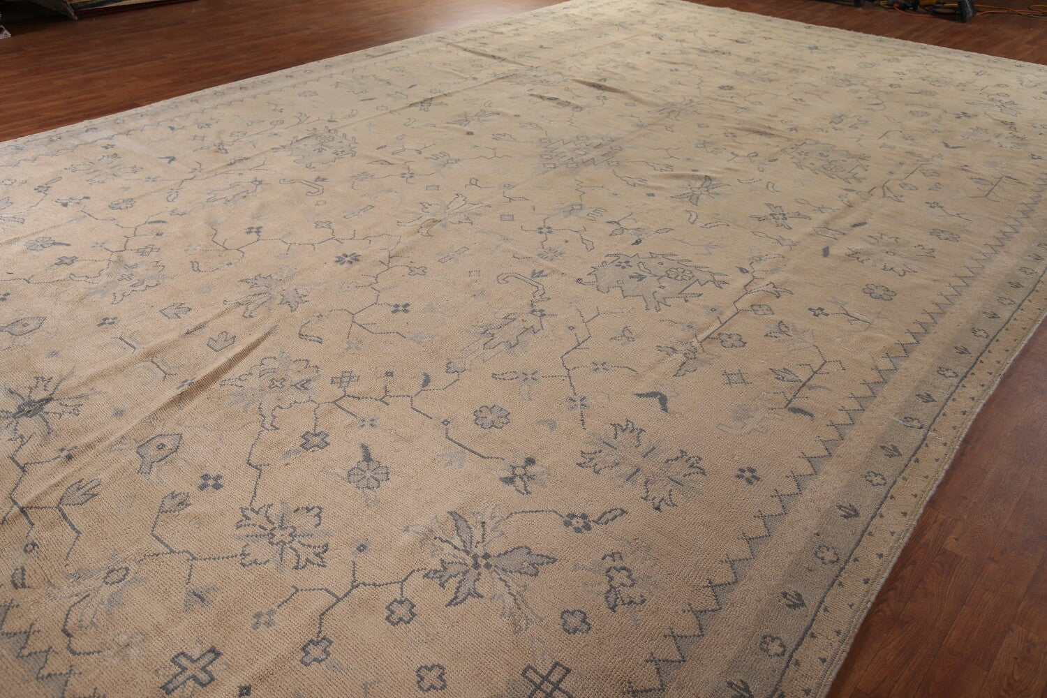 Pre-1900 Vegetable Dye Oushak Turkish Large Rug 12x19