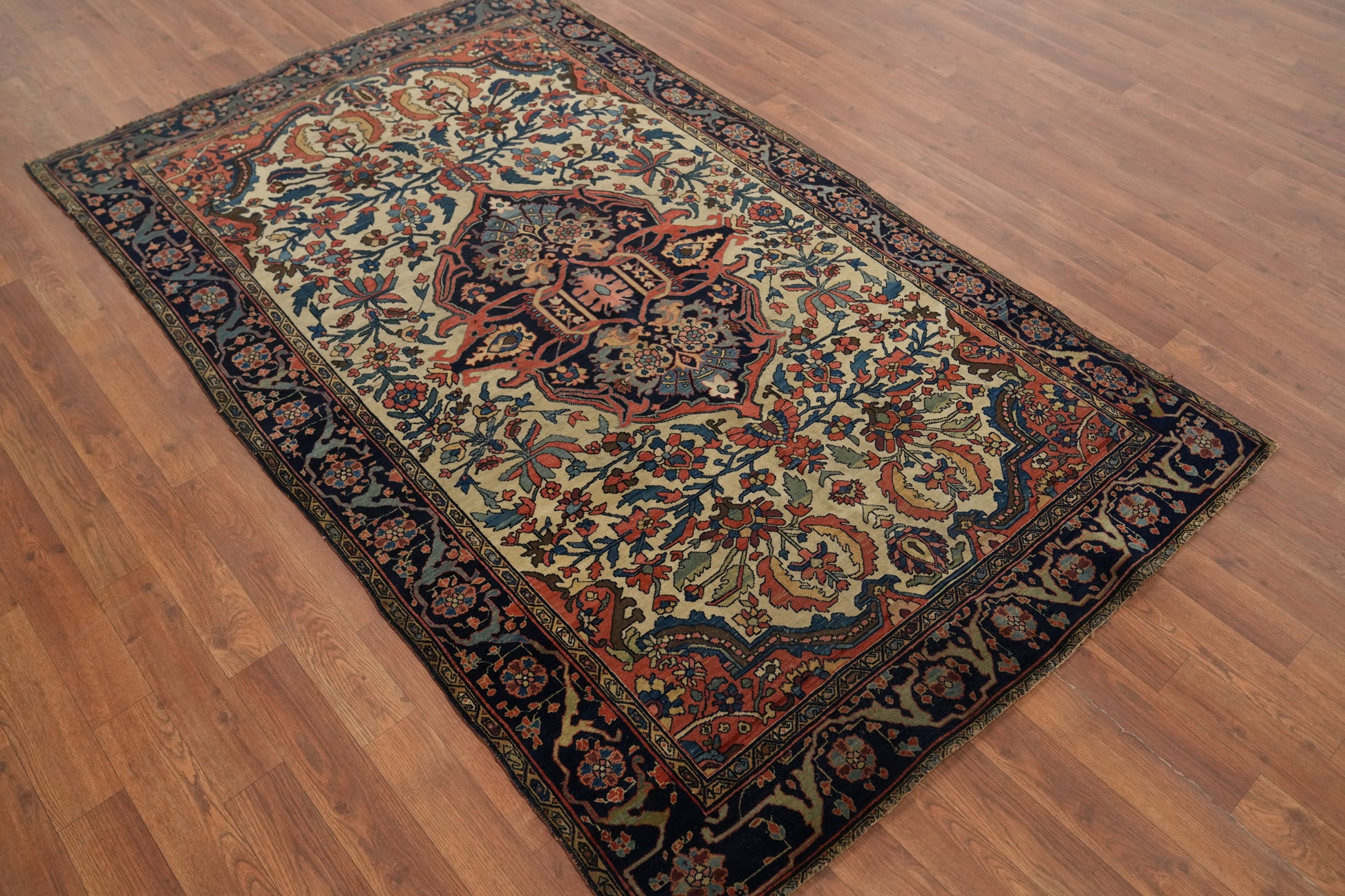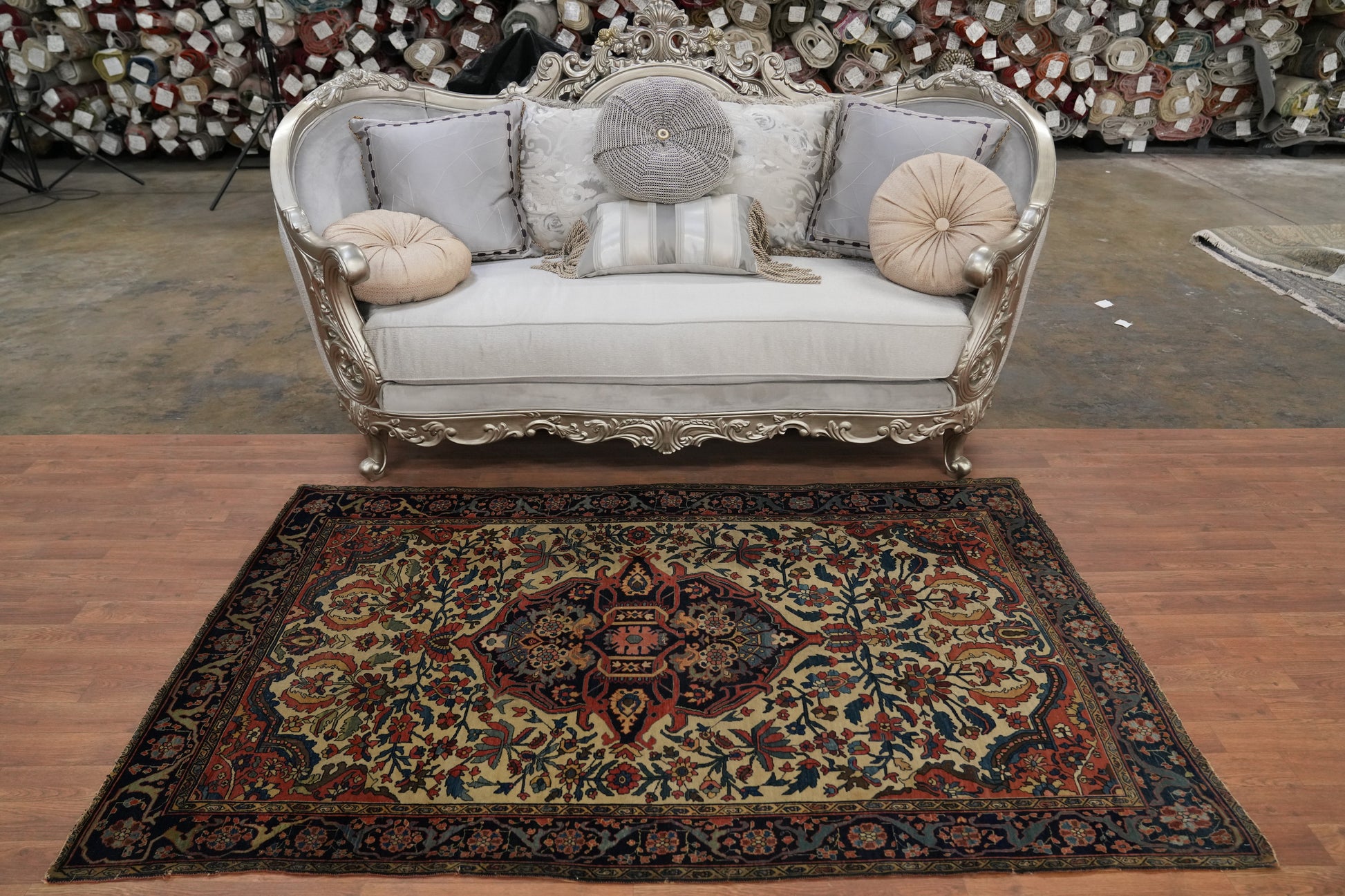 Pre-1900 Vegetable Dye Sarouk Farahan Persian Rug 4x7