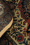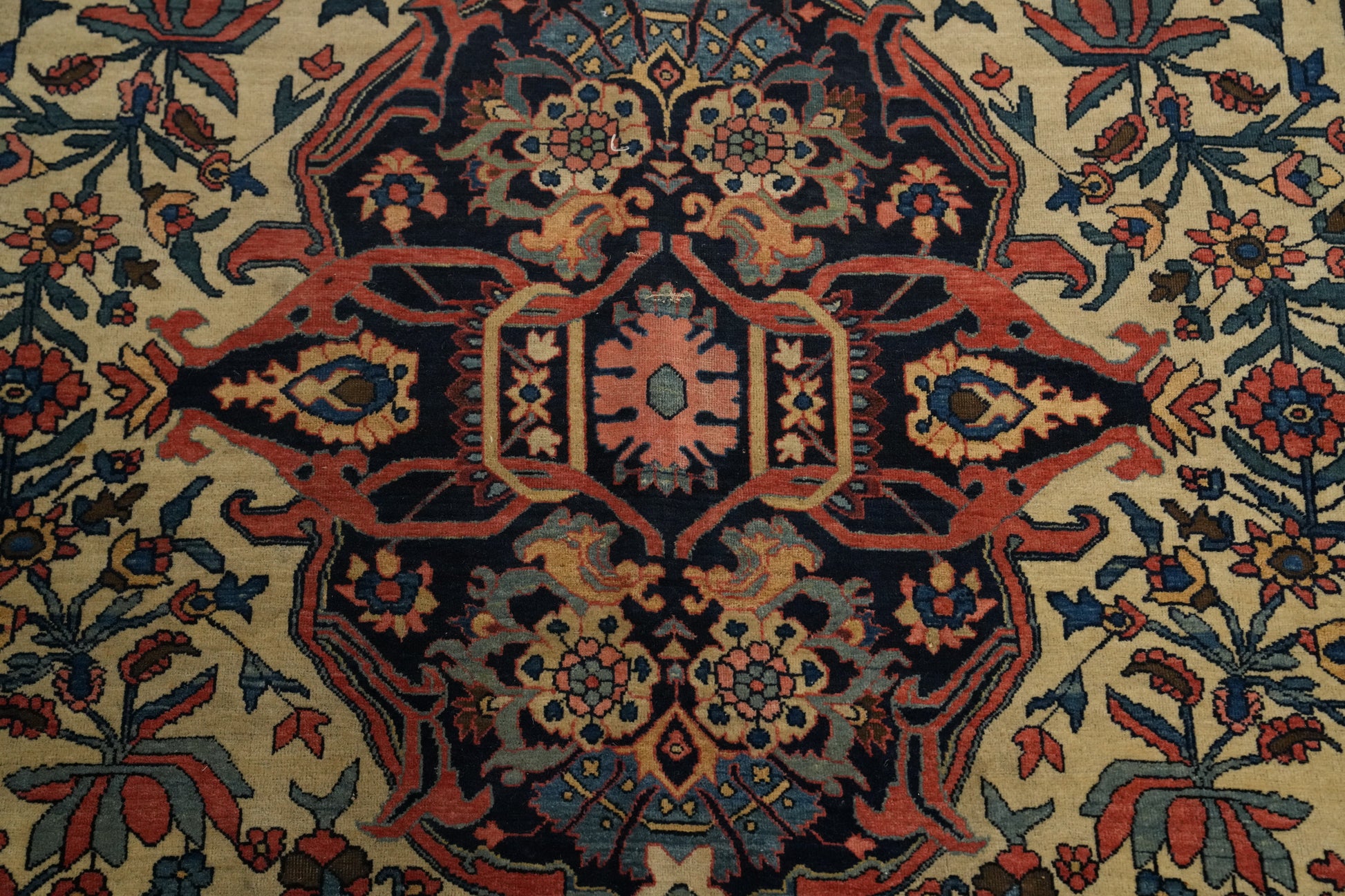 A Beautiful Genuine Persia ( Persia ) Sarouk (Farahan) rug is Hand Knotted by skillful weavers in Persia ( Persia ) with 100% Wool Material. This rug is in Very Good ( Low Pile ) condition. dimensions are 6' 9'' X 4' 1'' in foot and 206 X 124 in centimeter. the primary color is Beige & Ivories.